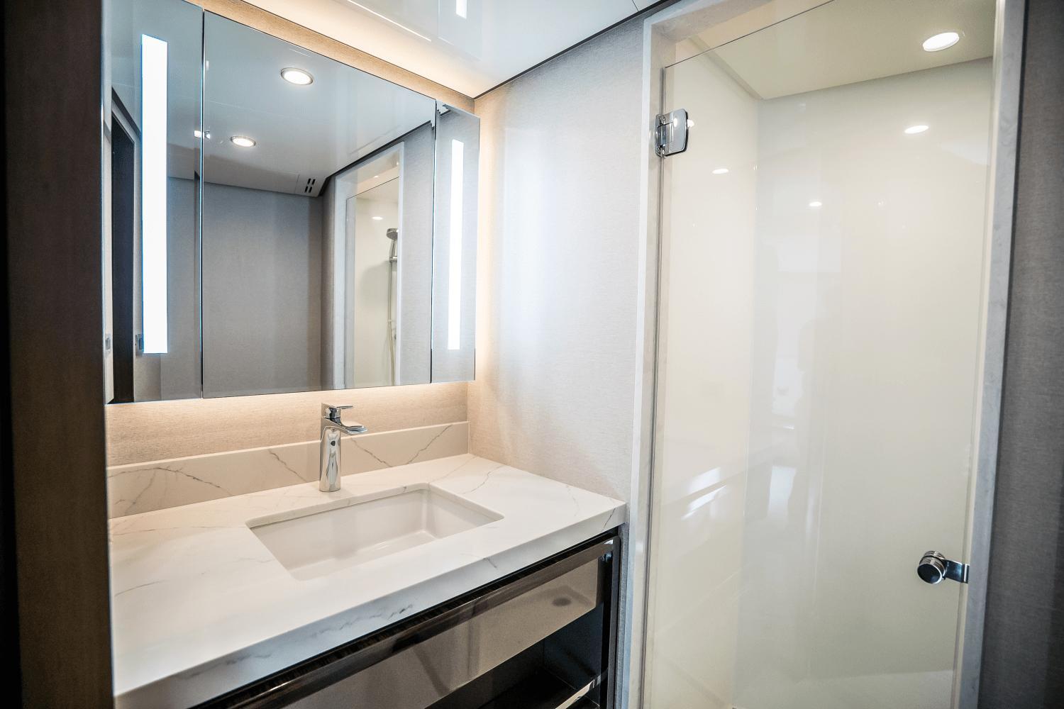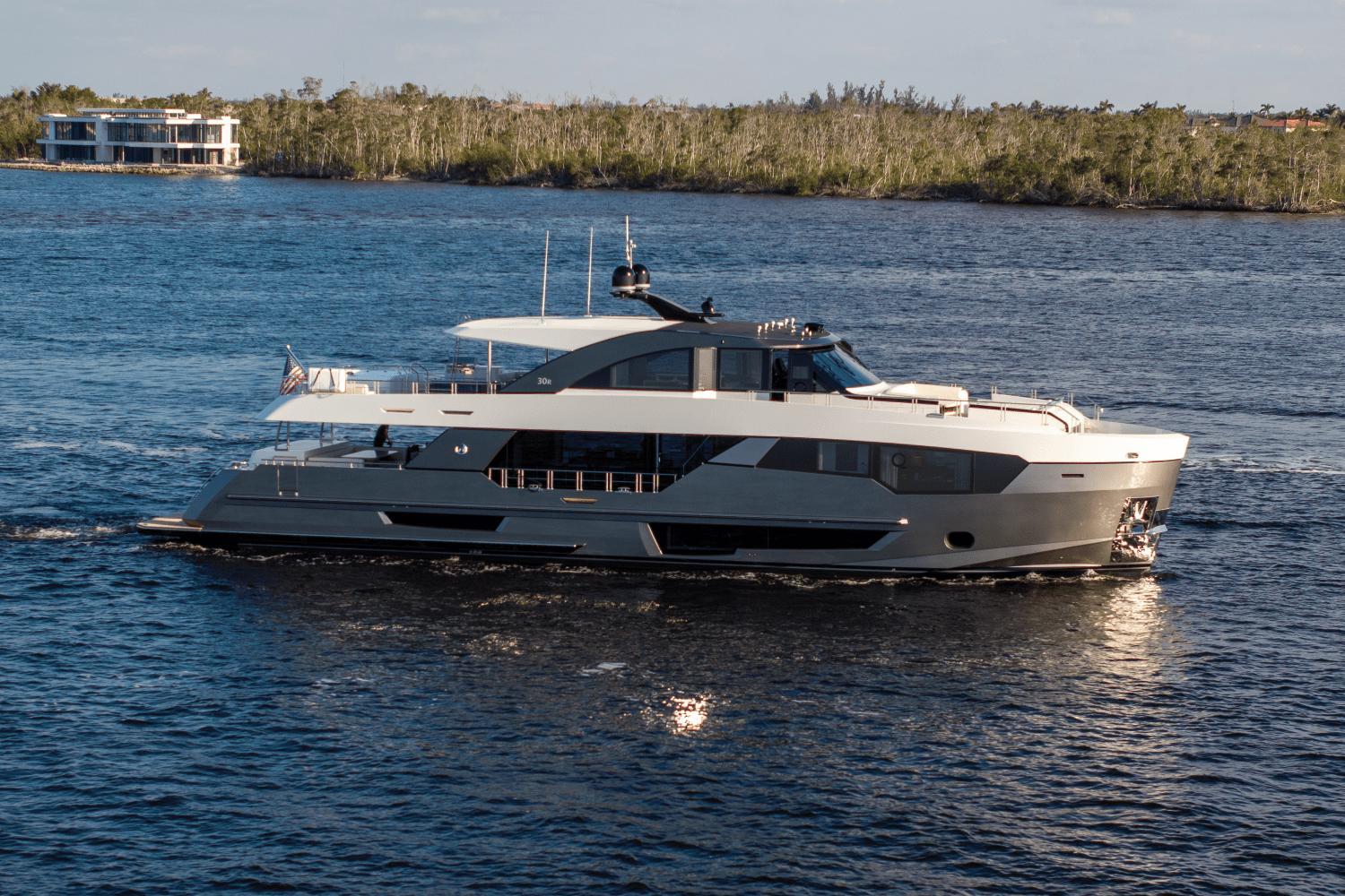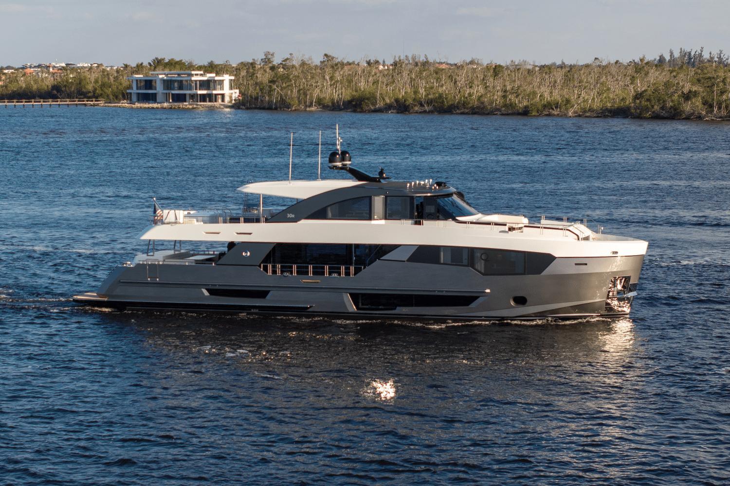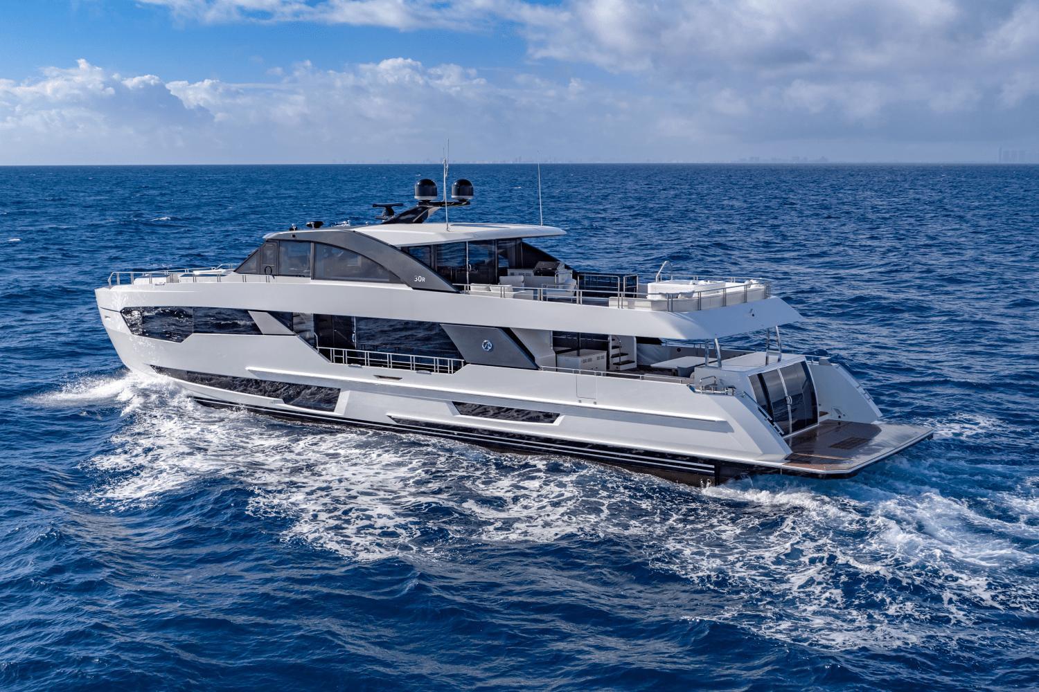 Act fast on this limited-time offer! Seize this exclusive opportunity! Unveil a new era of yachting with the 2025 Ocean Alexander 30R—a luxury yacht that defies convention and exceeds every expectation. This model is one of Ocean Alexander’s groundbreaking Revolution Series, the 30R fuses bold, modern aesthetics with unmatched livability, long-range cruising capabilities, and cutting-edge technology. This yacht was built for those who refuse to compromise on space, style, or performance.Designed in collaboration with Evan K. Marshall, one of the most respected names in yacht design, and engineered by Arrabito Naval Architects, the 30R delivers a seamless blend of artistic vision and technical mastery. Every inch of the vessel has been conceived with a focus on maximizing natural light, volume, and versatility—resulting in a luxury experience that feels more like a high-end floating residence than a traditional yacht.Luxury Accommodations for 10 GuestsThe full-beam owner’s suite is located forward on the main deck, a sanctuary that rivals the best luxury hotels. It features panoramic windows, a king-size bed, generous walk-in wardrobe, lounge seating, and a spa-style en-suite with dual vanities, rainfall shower, and marble accents.Below deck, four additional guest staterooms—including three VIPs and one twin cabin—are all en-suite and exquisitely appointed. Every cabin is designed with privacy, space, and elegance in mind, ensuring guests experience the same level of comfort as the owners. Separate crew quarters with private access provide accommodations for up to 4 crew, promoting discreet and professional service at all times.Expansive Outdoor SpacesThe Ocean Alexander 30R excels in outdoor living and entertainment, offering a wide variety of spaces for relaxing, socializing, or enjoying the sea:The flybridge is an entertainer’s dream, with a large dining area, sun loungers, a wet bar, BBQ grill, and optional Jacuzzi hot tub.The aft deck features a covered lounge and dining space, with direct access to the salon through glass sliding doors.A spectacular beach club awaits at the water’s edge, featuring a wet bar, built-in seating, and a hydraulic swim platform ideal for launching tenders or enjoying water sports.The foredeck lounge offers a private escape with plush seating and sunpads—perfect for sunbathing or cocktails at sunset.