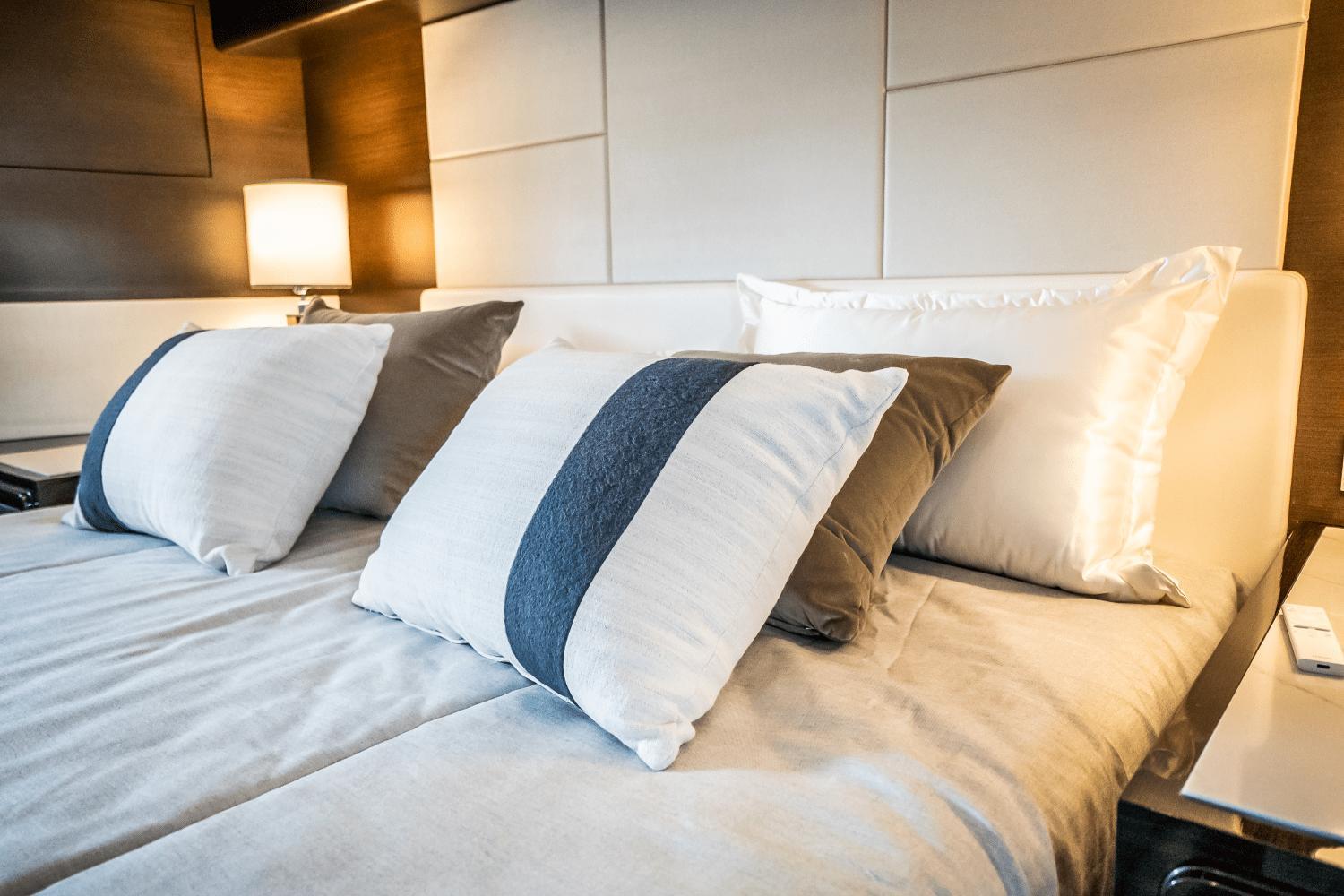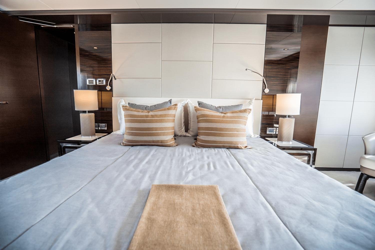 Port stateroom's side-by-side berths can slide together and