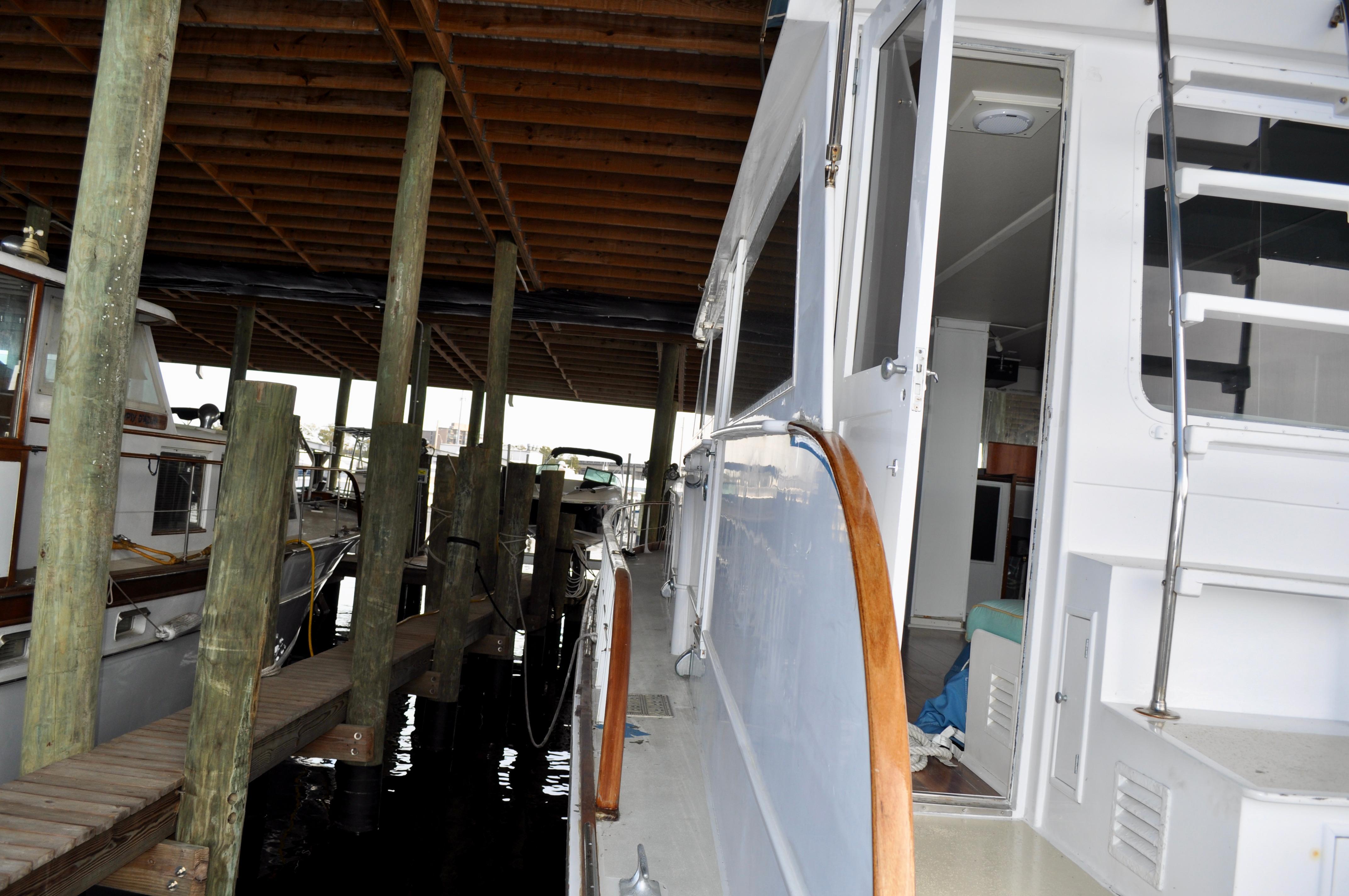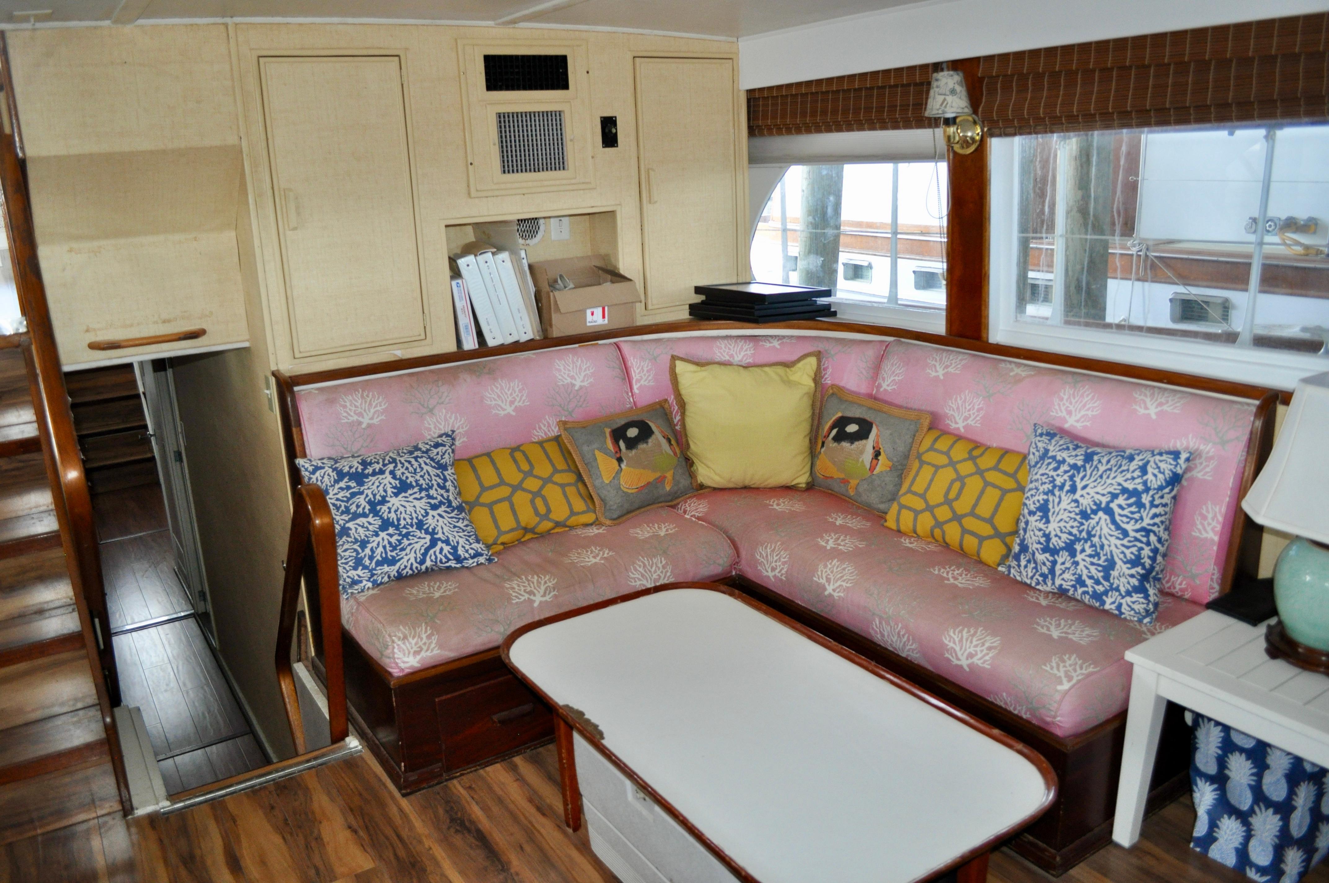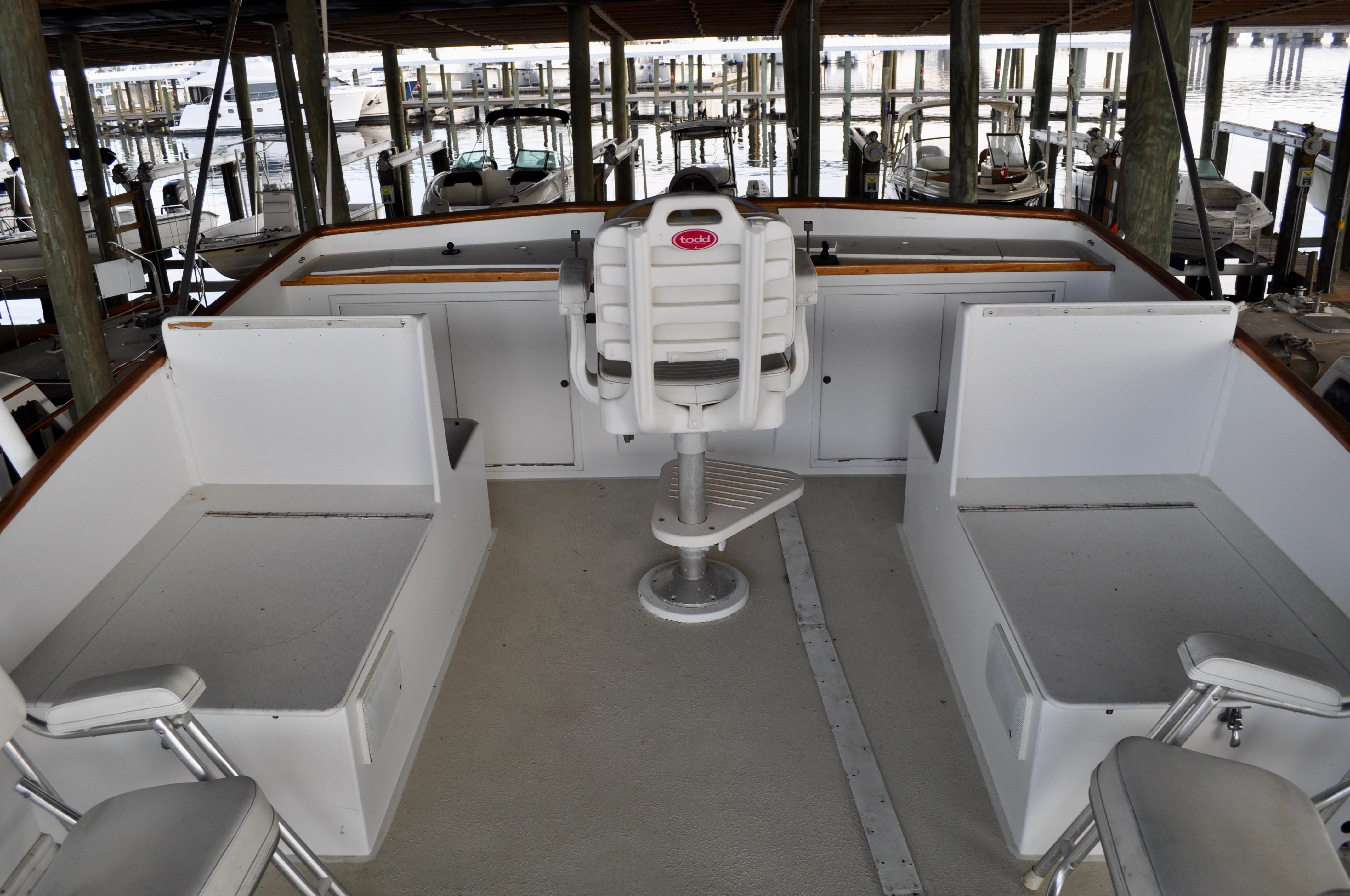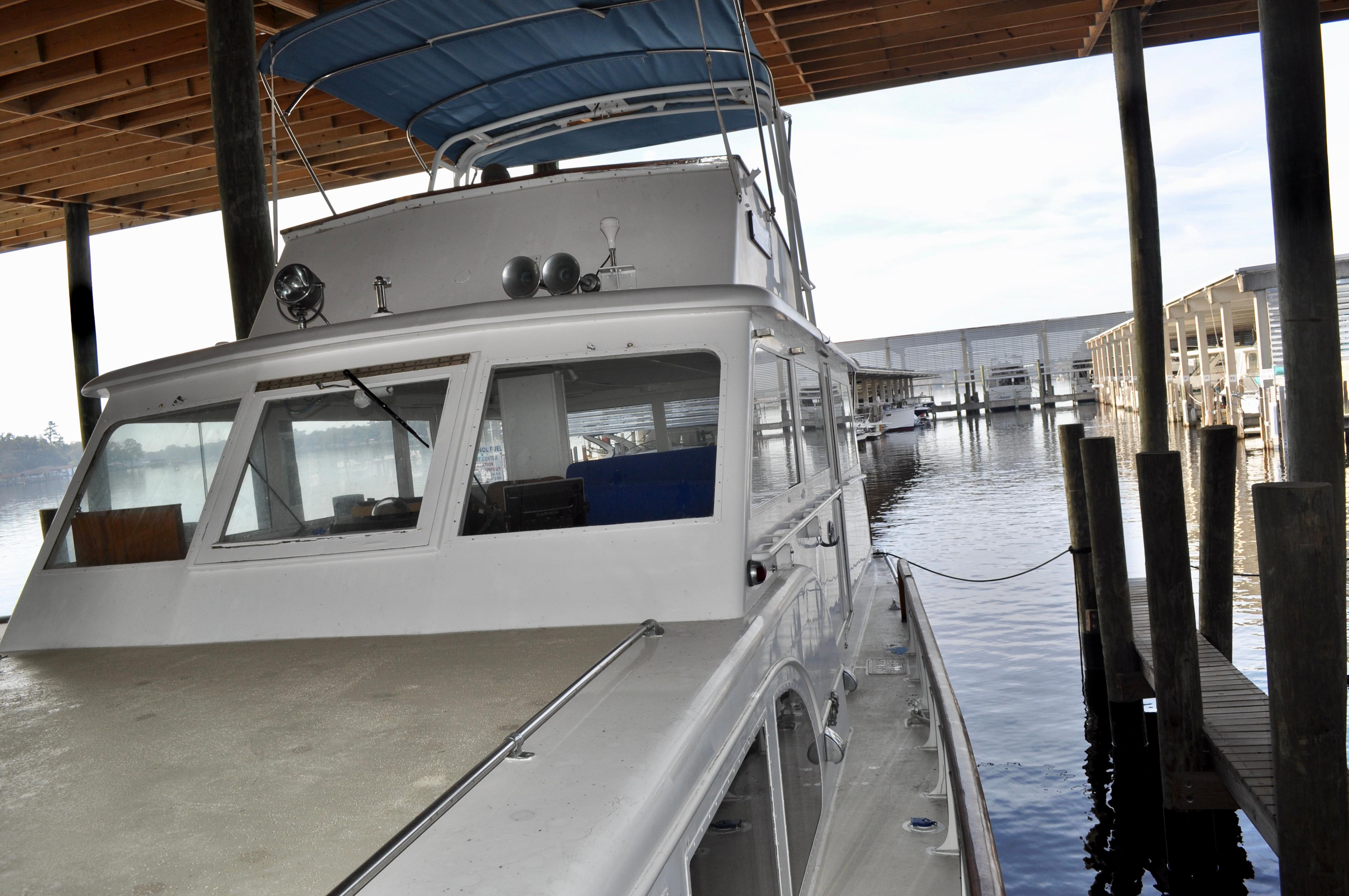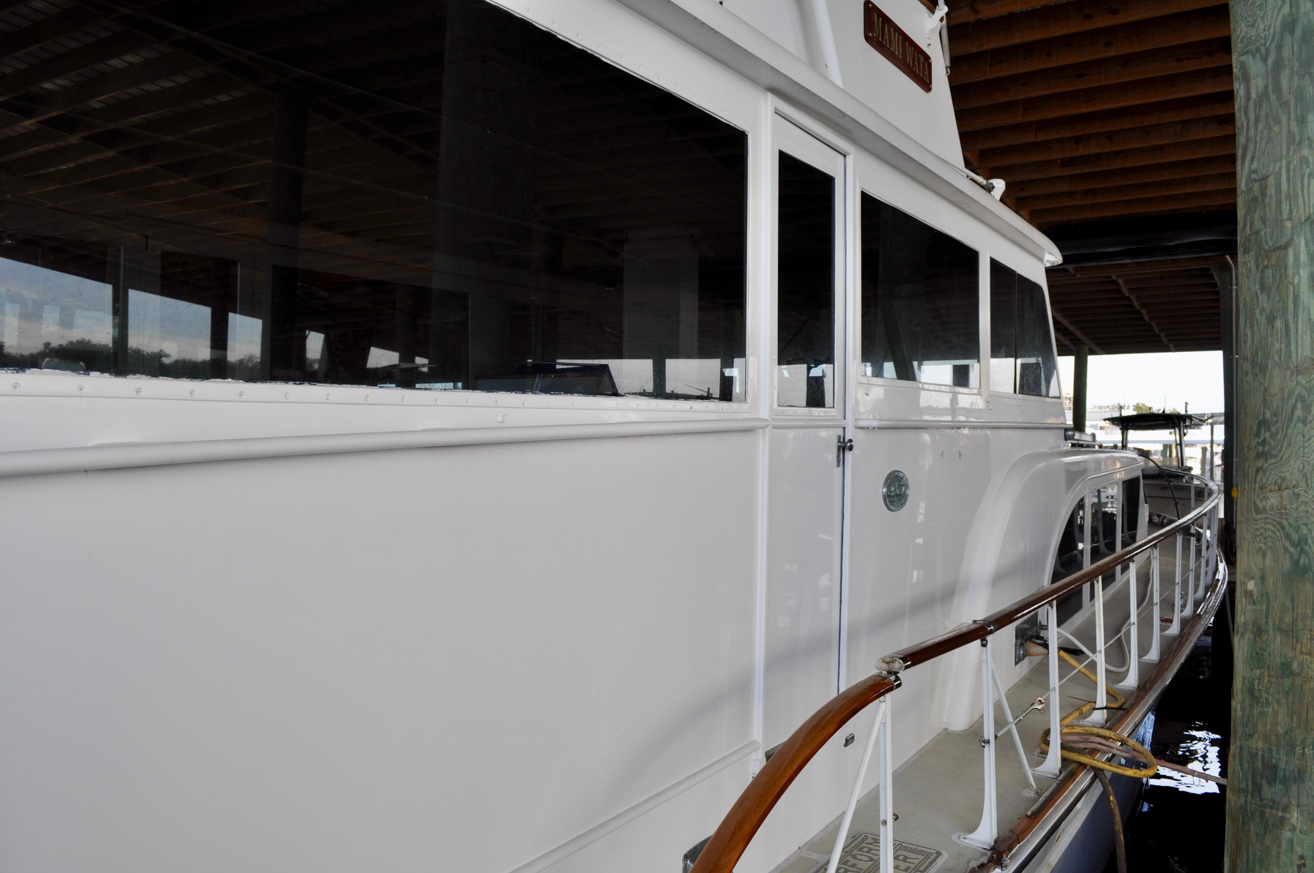 Mami Wata -1973 Huckins Offshore 58. Late model in the Huckins series of cold modeled vessels with epoxy coated bilges.Stepping aboard you will be invited into the large upper salon open to the enclosed lower helm. Stepping down into the lower salon, looking aft, you will find the master and guest staterooms, each accompanied with a private head and stall showers. Going back towards the bow and down the stairs you will entire the fully equipped galley to the port, and dinette to your starboard. Towards the bow you will find the 3rd stateroom and 3rd head with stall shower. Stepping out and down into the cockpit from the upper salon, you will have ample amount of space to fish and entertain as you please. The cockpit floors provide large access hatches to your twin Caterpillar diesels, and brand new Kohler generator, making maintenance a breeze. Climbing up the stairs into the flybridge, you have plenty of space for your friends, family, and crew. Recent Upgrades:New 16.5 Kohler gen setNew custom V-drivesBoth helms rewiredOwners state room converted to queen berthNew cooktopNew Isotherm marine fridgeCarpet removed, replaced with water-proof wood flooringDoor from owner’s state room restored to originalDoor between salon and bridge restored to originalNew Breville ovenNew electronics throughoutWindshield wipers converted to electricNew bottom paintAll top-side mahogany refinishedVarious gauges replaced as neededNew porthole screens throughoutNew cushions on the bow.AC units recently servicedPrevious names, Toolebox, & Kokomo.