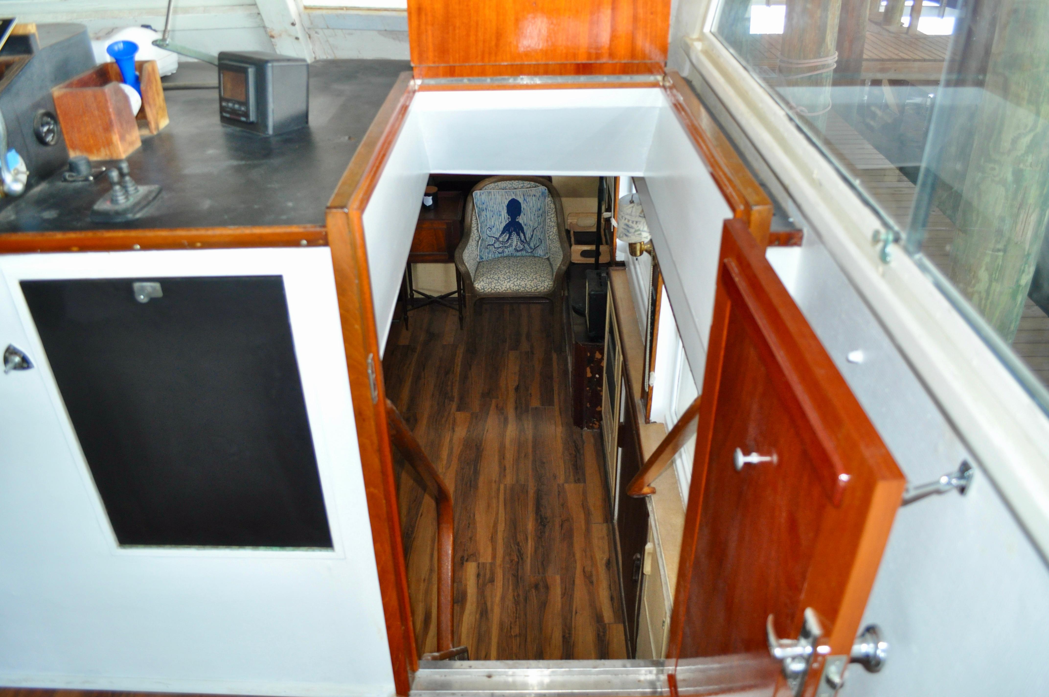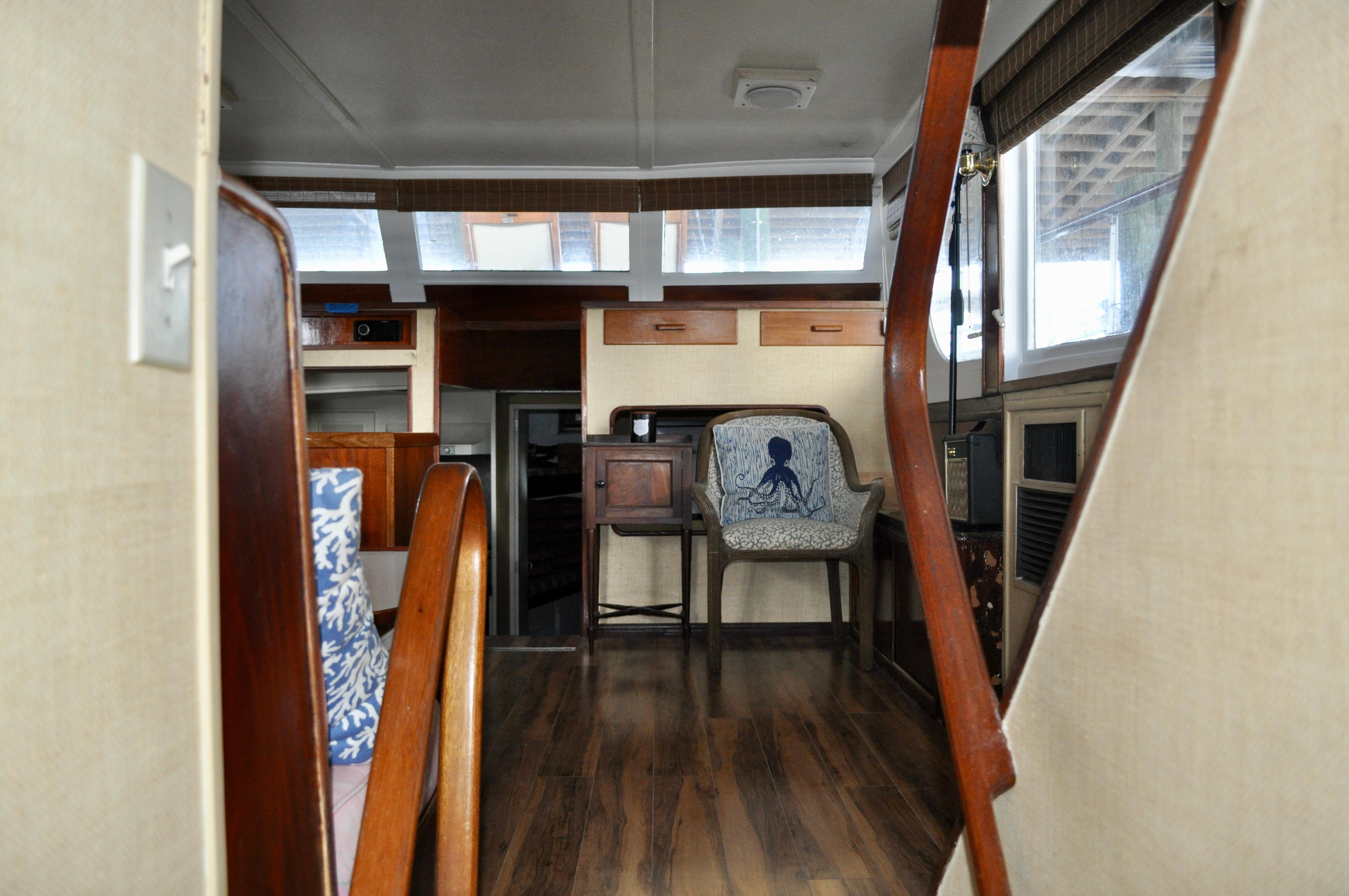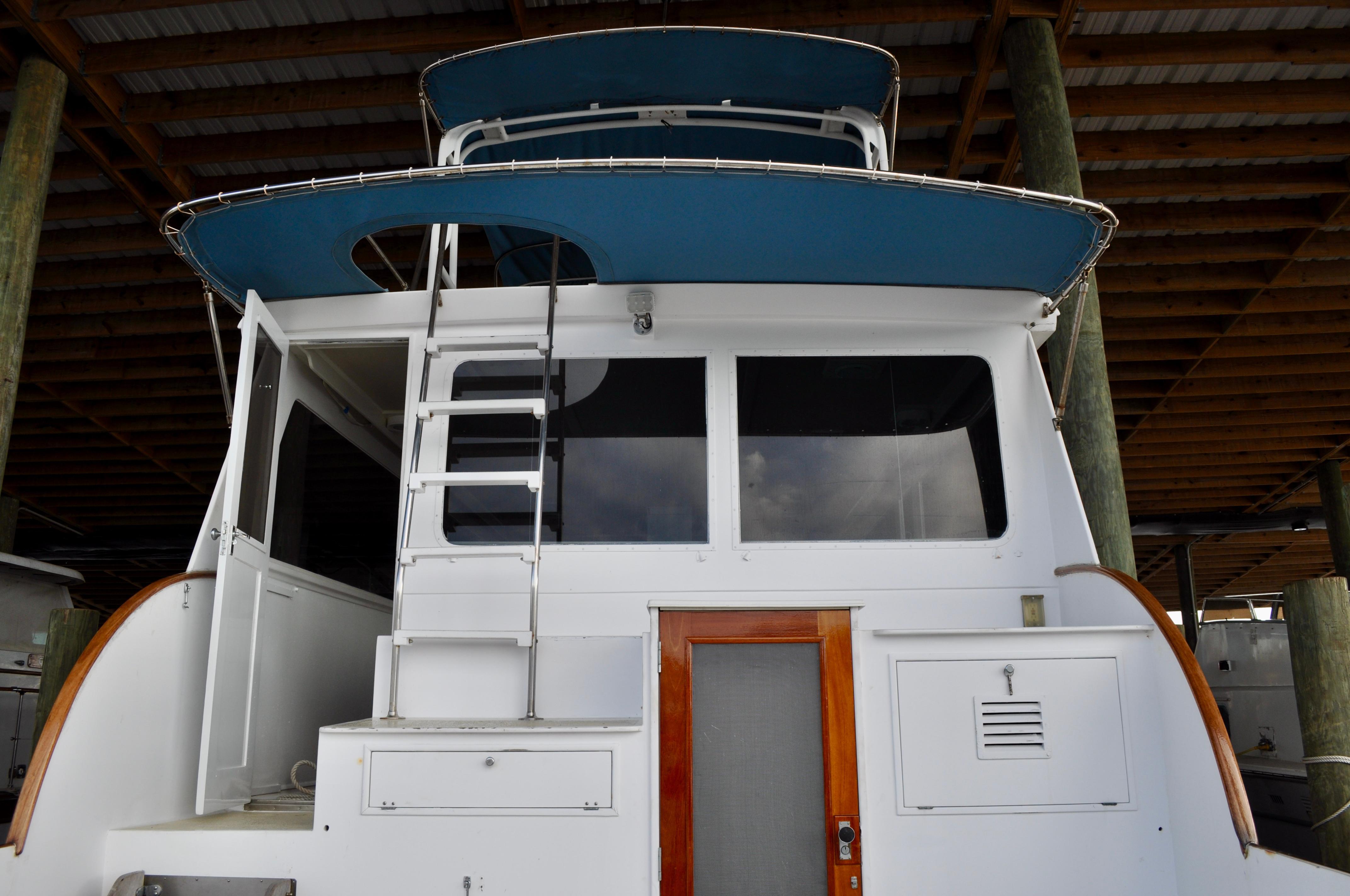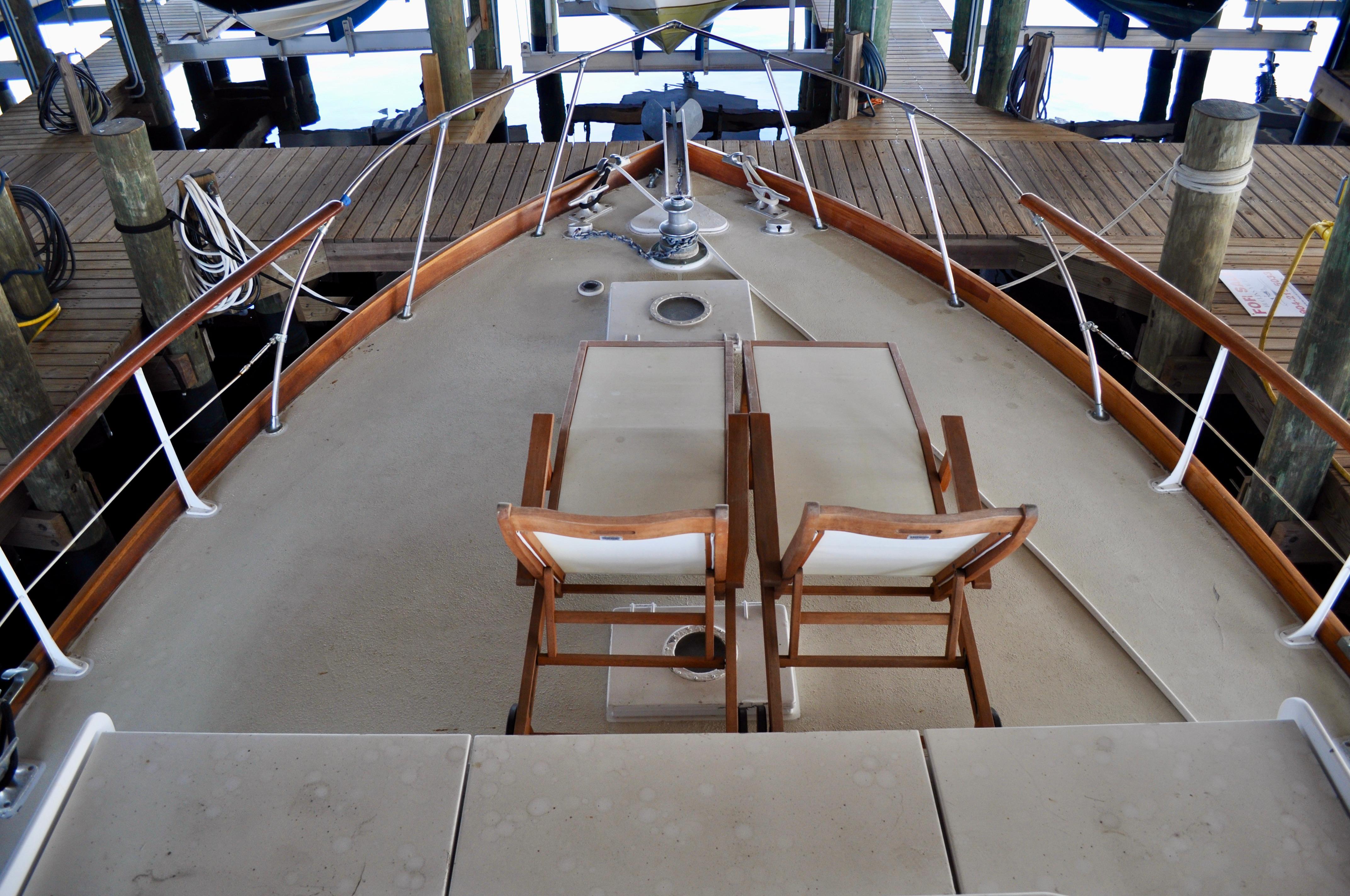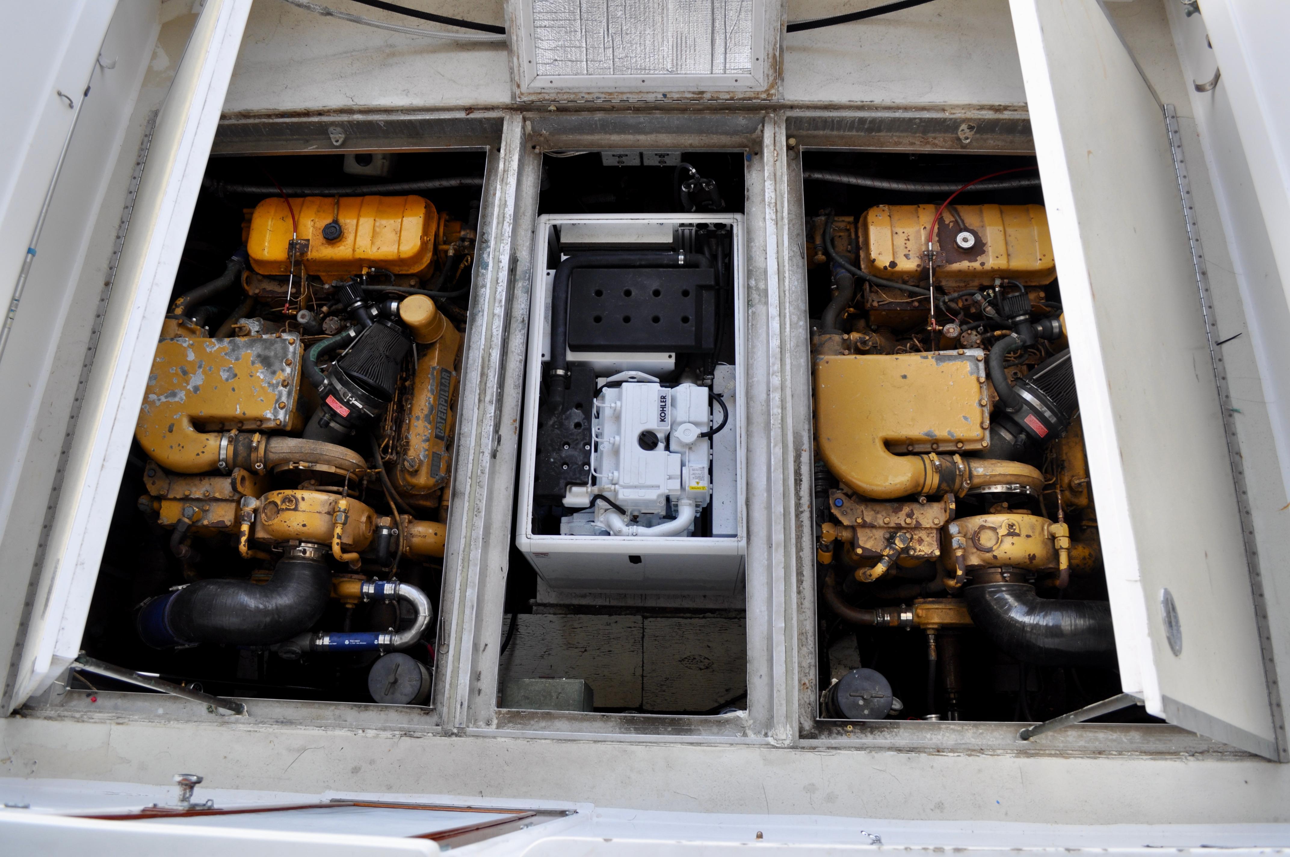 Mami Wata -1973 Huckins Offshore 58. Late model in the Huckins series of cold modeled vessels with epoxy coated bilges.Stepping aboard you will be invited into the large upper salon open to the enclosed lower helm. Stepping down into the lower salon, looking aft, you will find the master and guest staterooms, each accompanied with a private head and stall showers. Going back towards the bow and down the stairs you will entire the fully equipped galley to the port, and dinette to your starboard. Towards the bow you will find the 3rd stateroom and 3rd head with stall shower. Stepping out and down into the cockpit from the upper salon, you will have ample amount of space to fish and entertain as you please. The cockpit floors provide large access hatches to your twin Caterpillar diesels, and brand new Kohler generator, making maintenance a breeze. Climbing up the stairs into the flybridge, you have plenty of space for your friends, family, and crew. Recent Upgrades:New 16.5 Kohler gen setNew custom V-drivesBoth helms rewiredOwners state room converted to queen berthNew cooktopNew Isotherm marine fridgeCarpet removed, replaced with water-proof wood flooringDoor from owner’s state room restored to originalDoor between salon and bridge restored to originalNew Breville ovenNew electronics throughoutWindshield wipers converted to electricNew bottom paintAll top-side mahogany refinishedVarious gauges replaced as neededNew porthole screens throughoutNew cushions on the bow.AC units recently servicedPrevious names, Toolebox, & Kokomo.