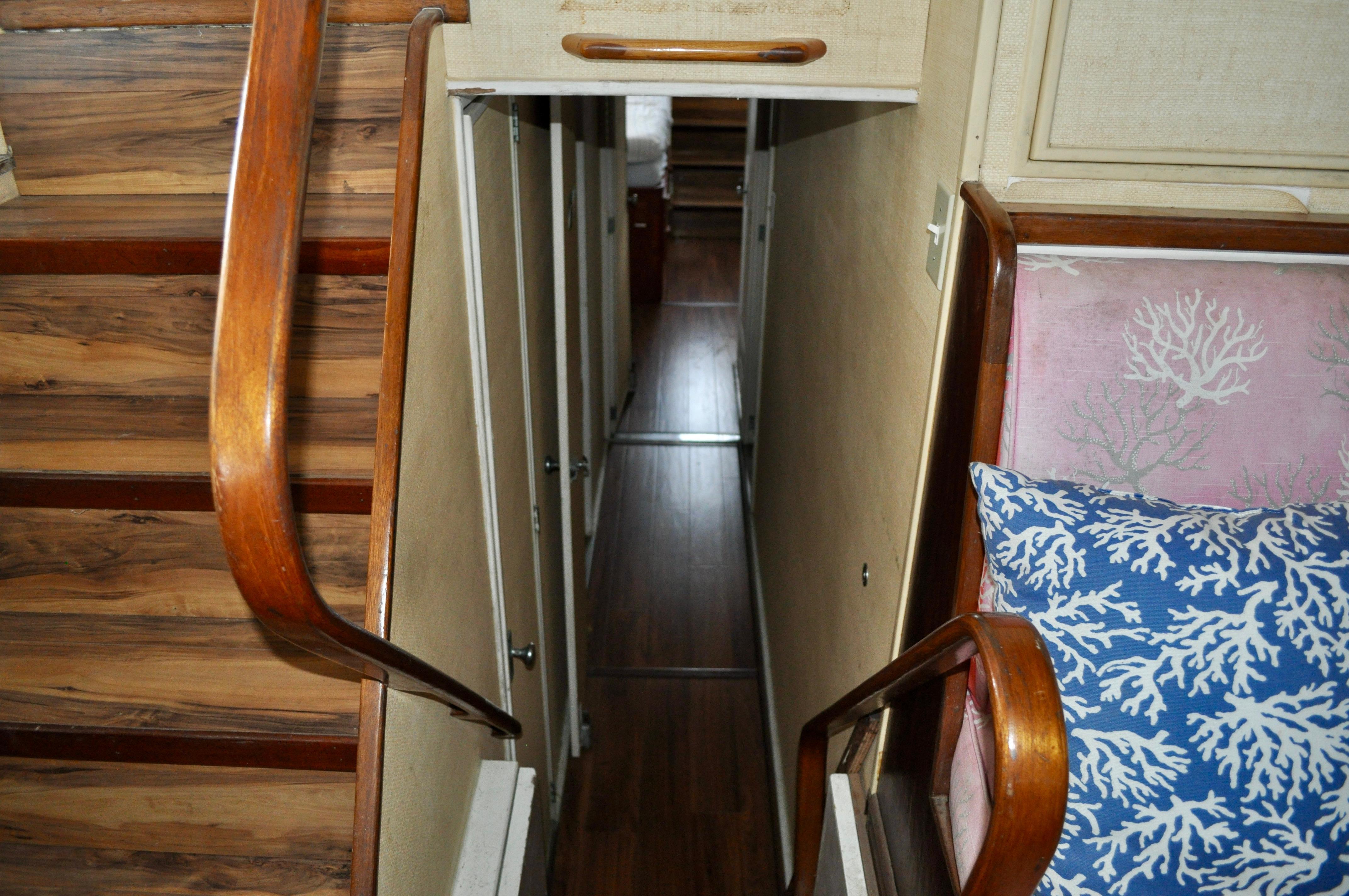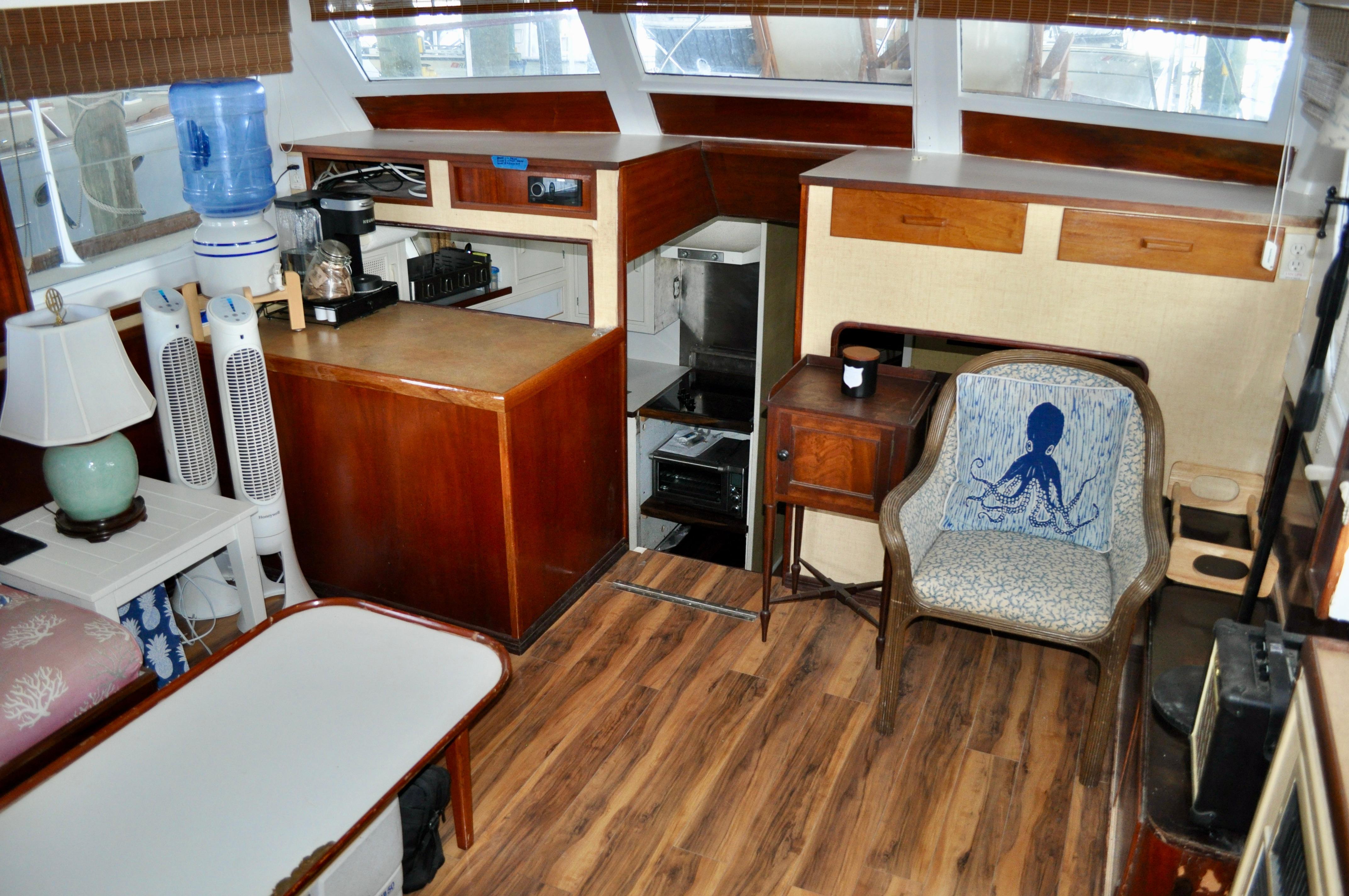 Three staterooms, each complete with heads, and stall showers. Salon has an L-shaped settee that can convert into a berth for additional sleeping arrangements.