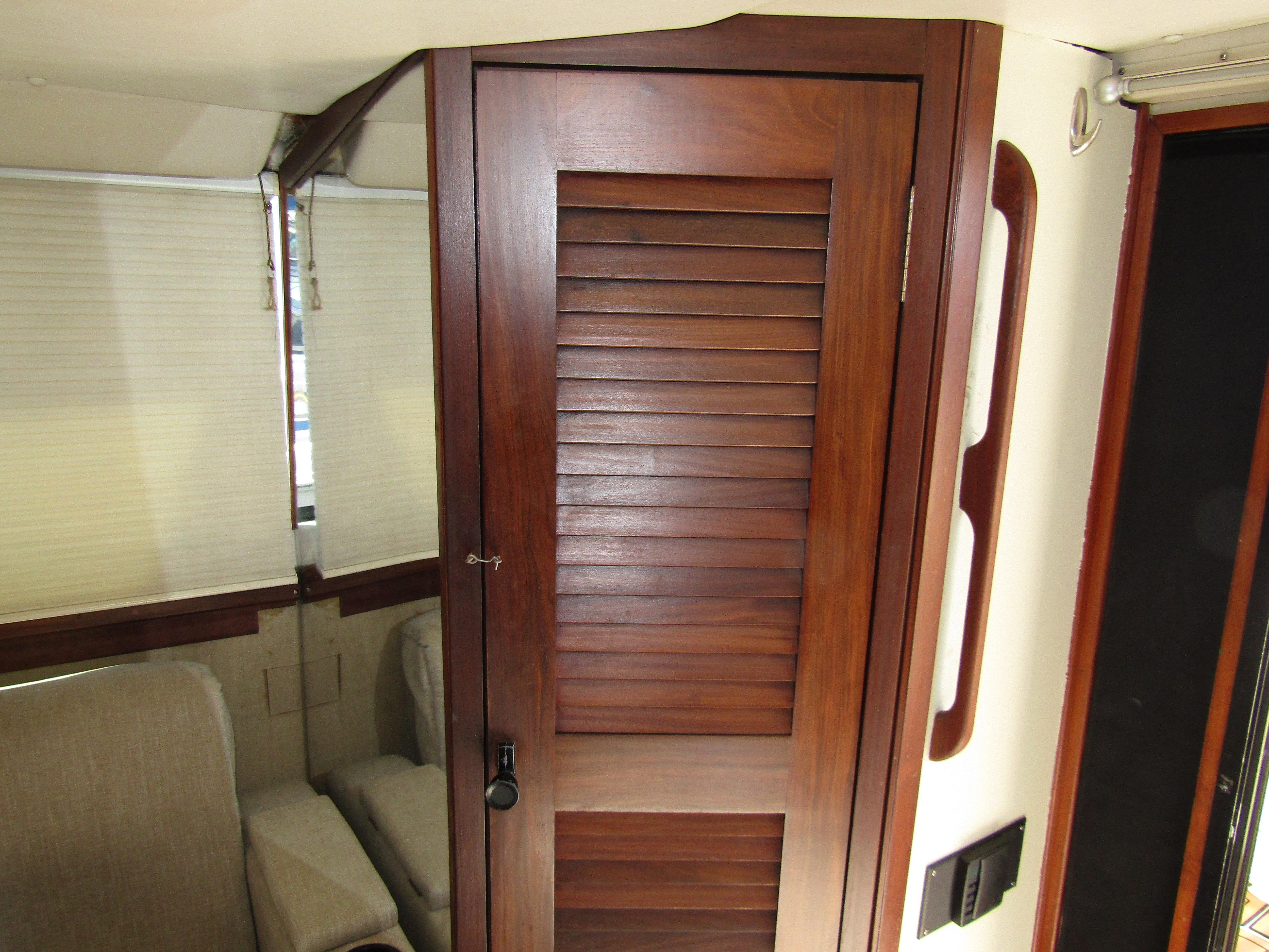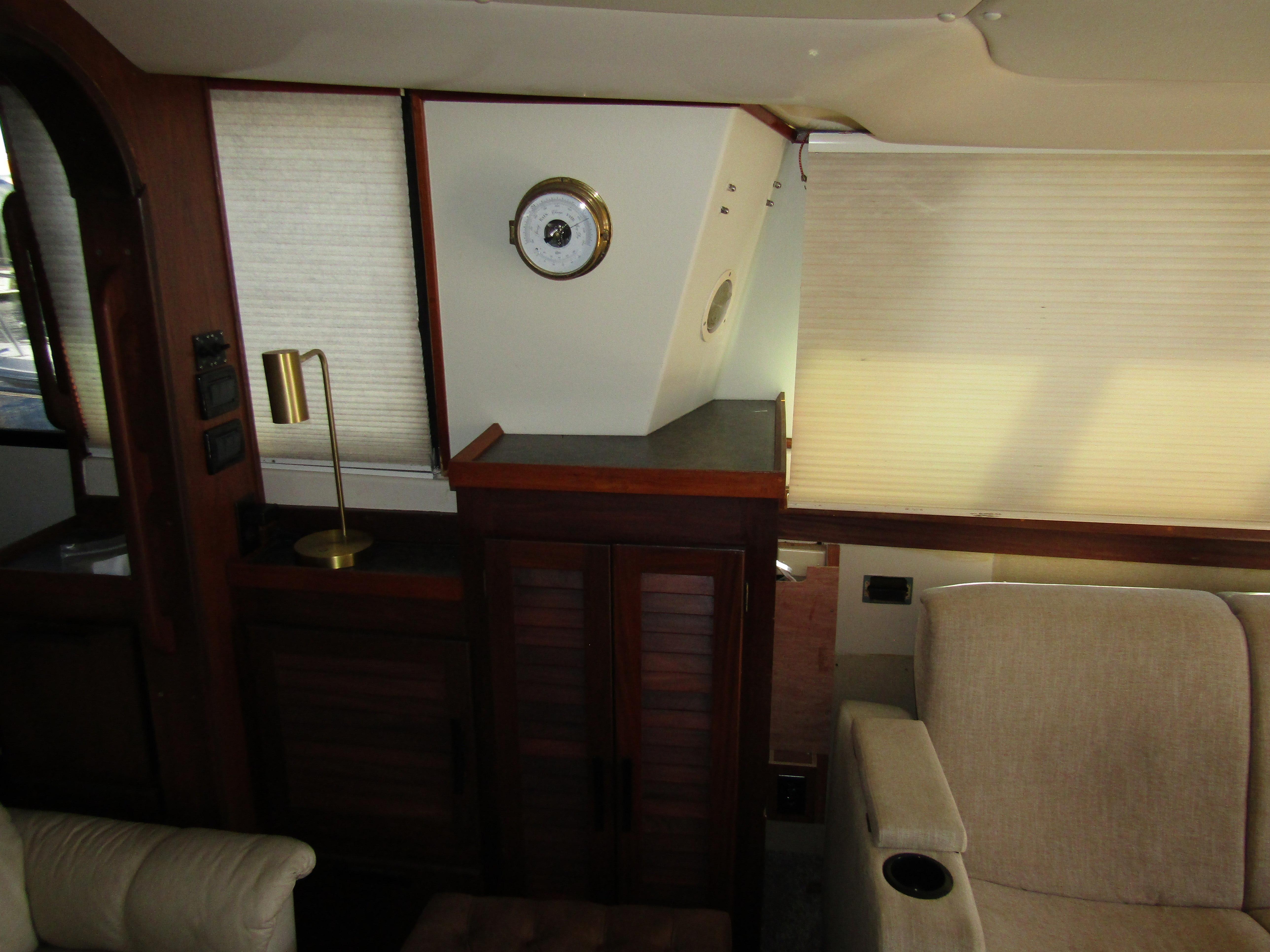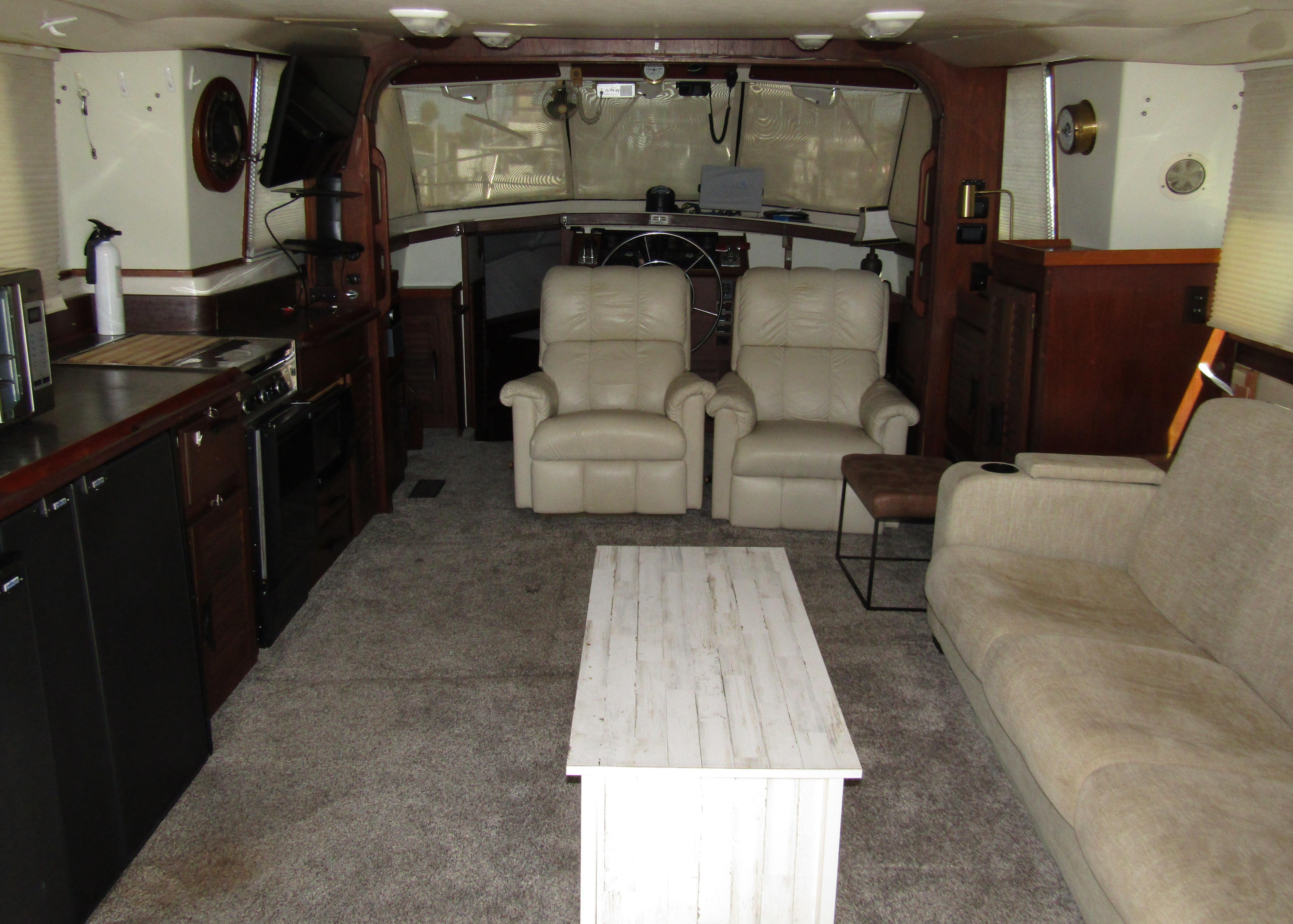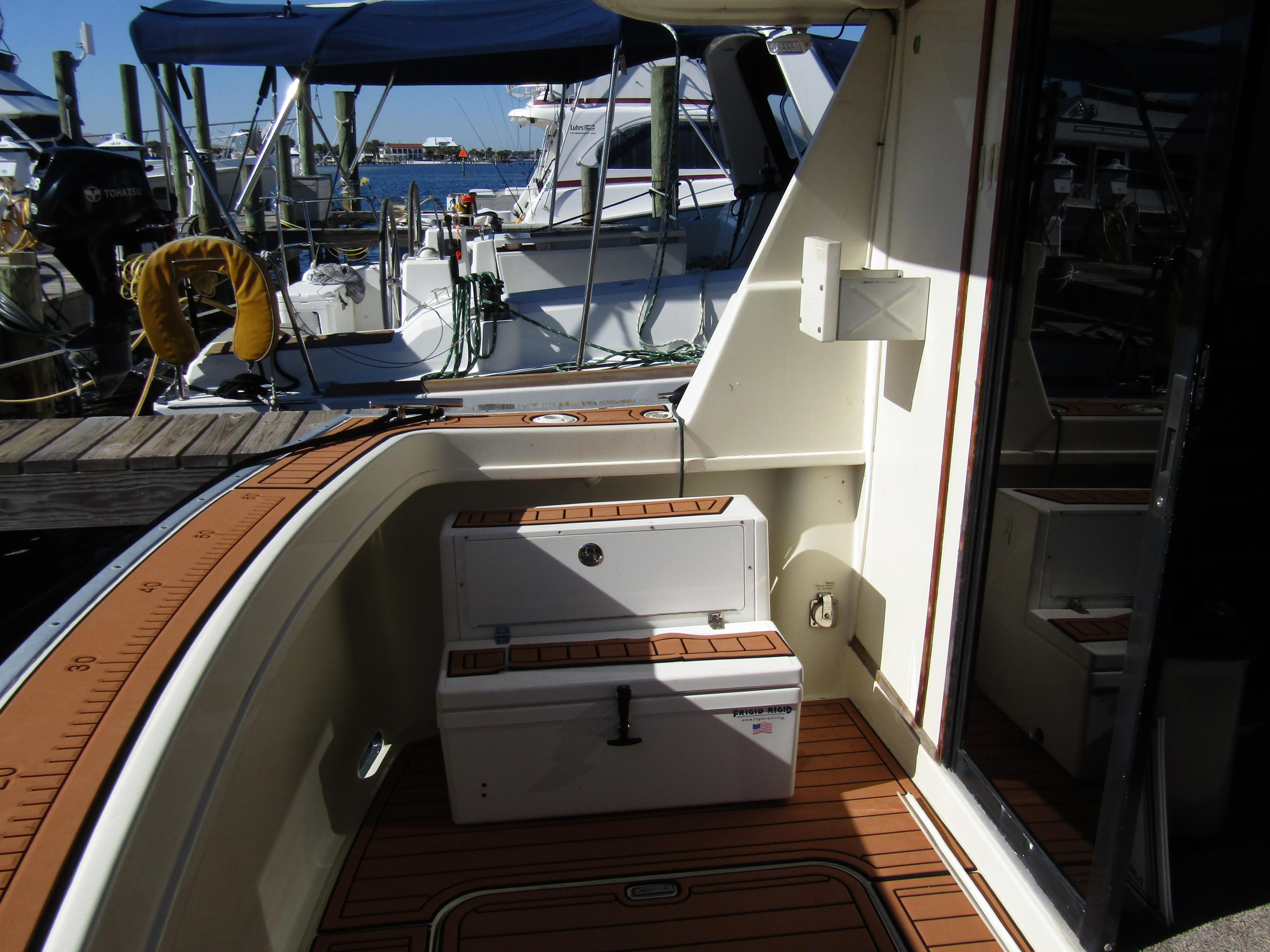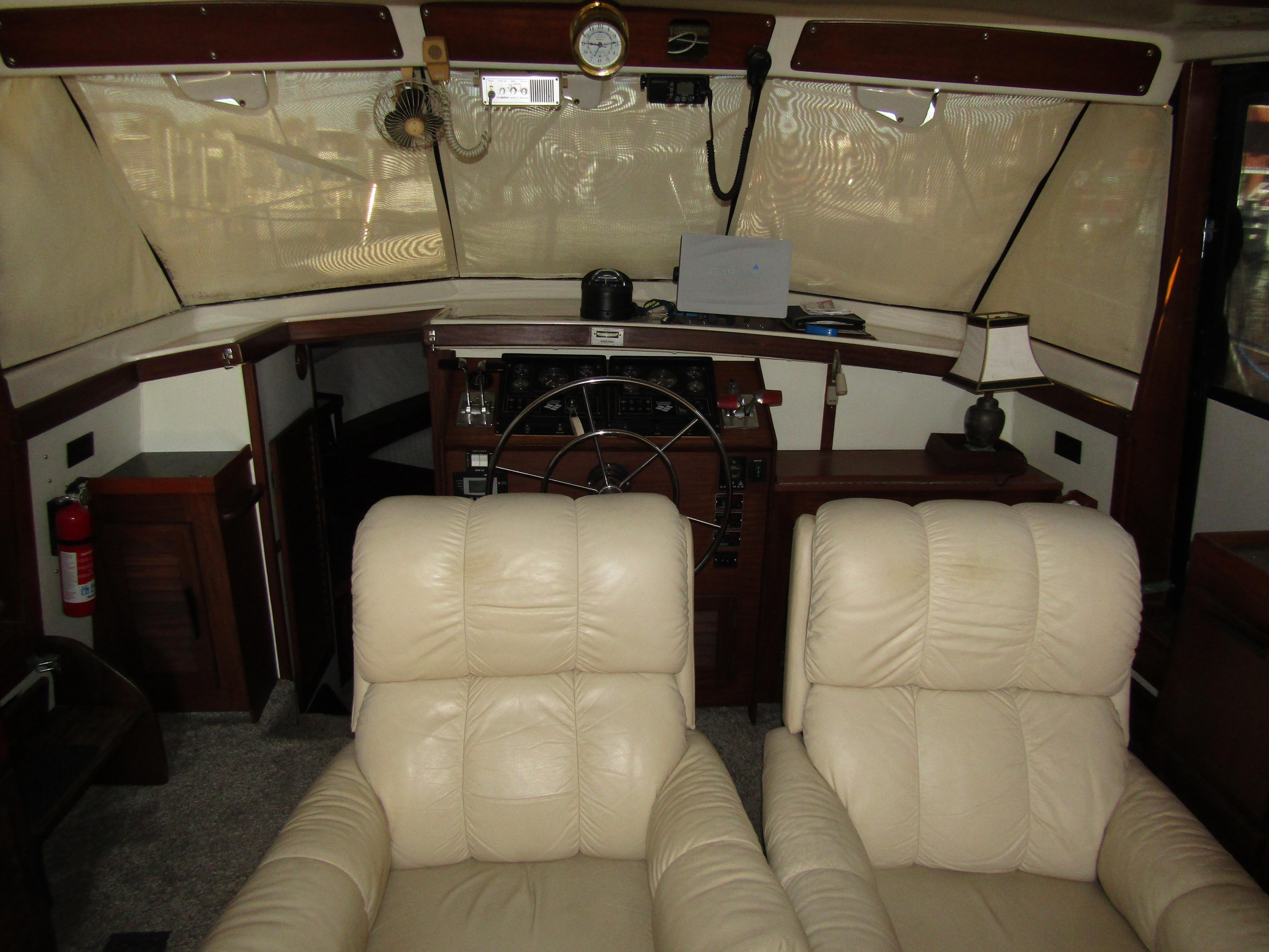 40 lb. Boss anchor with 300’ 8 plait line and 40’ chain. 40 Lb. Danforth with 250’ twist line and 10’ chain. Lewmar windlass with remote.Aqua Tech decking on cockpit deck and gunnels, side deck walkways, bow walkaround and flybridge deck.Cockpit has new lighting and ocean LED multicolored underwater lights Stern cockpit has a icebox/fishing tackle box with Aqua Tech boarding steps.Flybridge has a custom 7 Ft. storage box with rod holders topped with a waterproof cushion.Stidd captain chair, mate's seat and cushioned bench seating in front of helm.Large ice chest, propane grill, over head rod holdersVarious sizes and types of fenders, lines and emergency equipment all included.