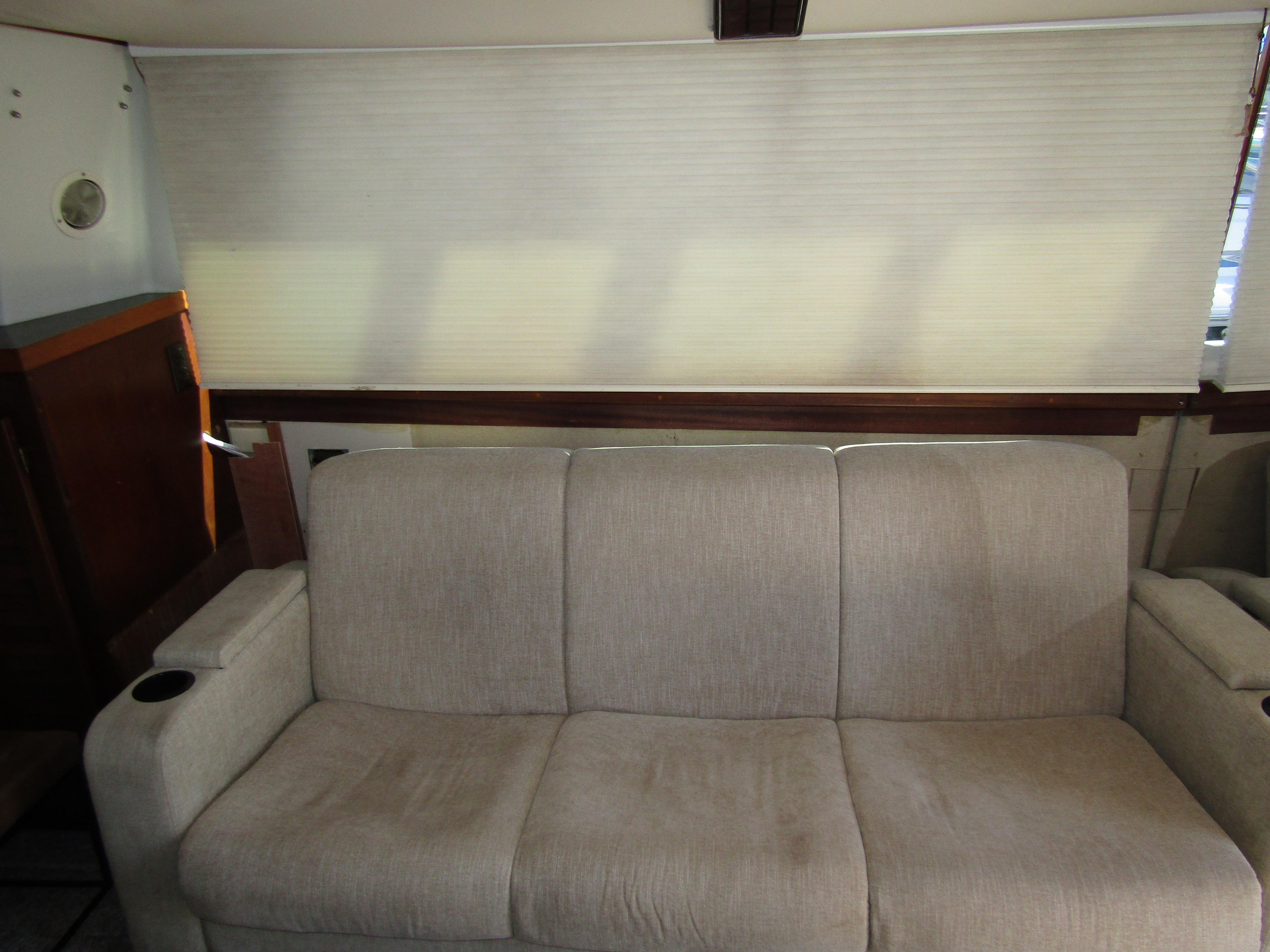 A unique feature of this Mainship 40 is the tremendous amount of space found throughout the main salon. Mainship achieved this by eliminating the side decks and creating a full-beam cabin. The beam is 14 feet and you feel like you are on a much larger vessel. The open floor plan of this main salon can easily be reconfigured to your needs.
