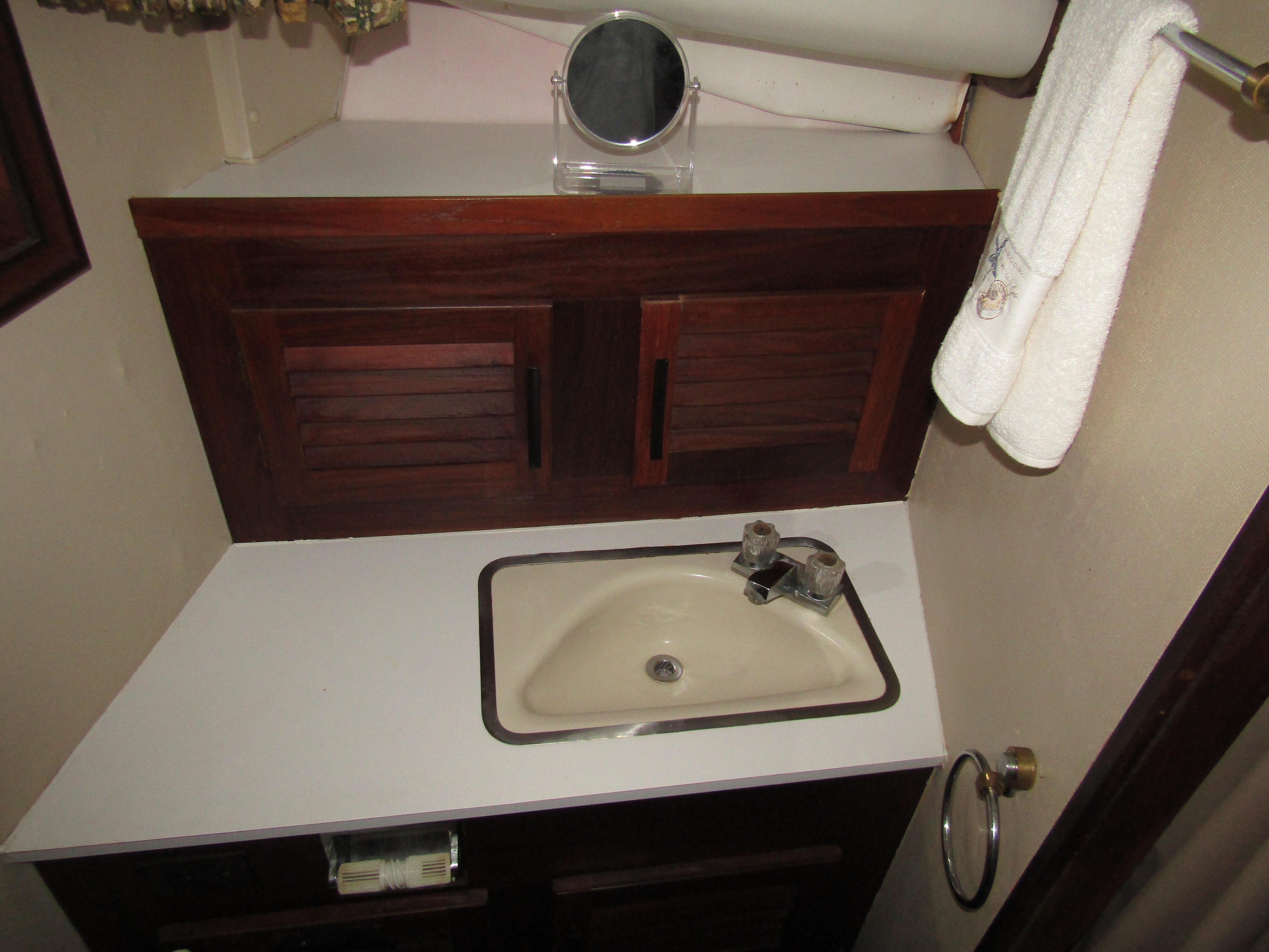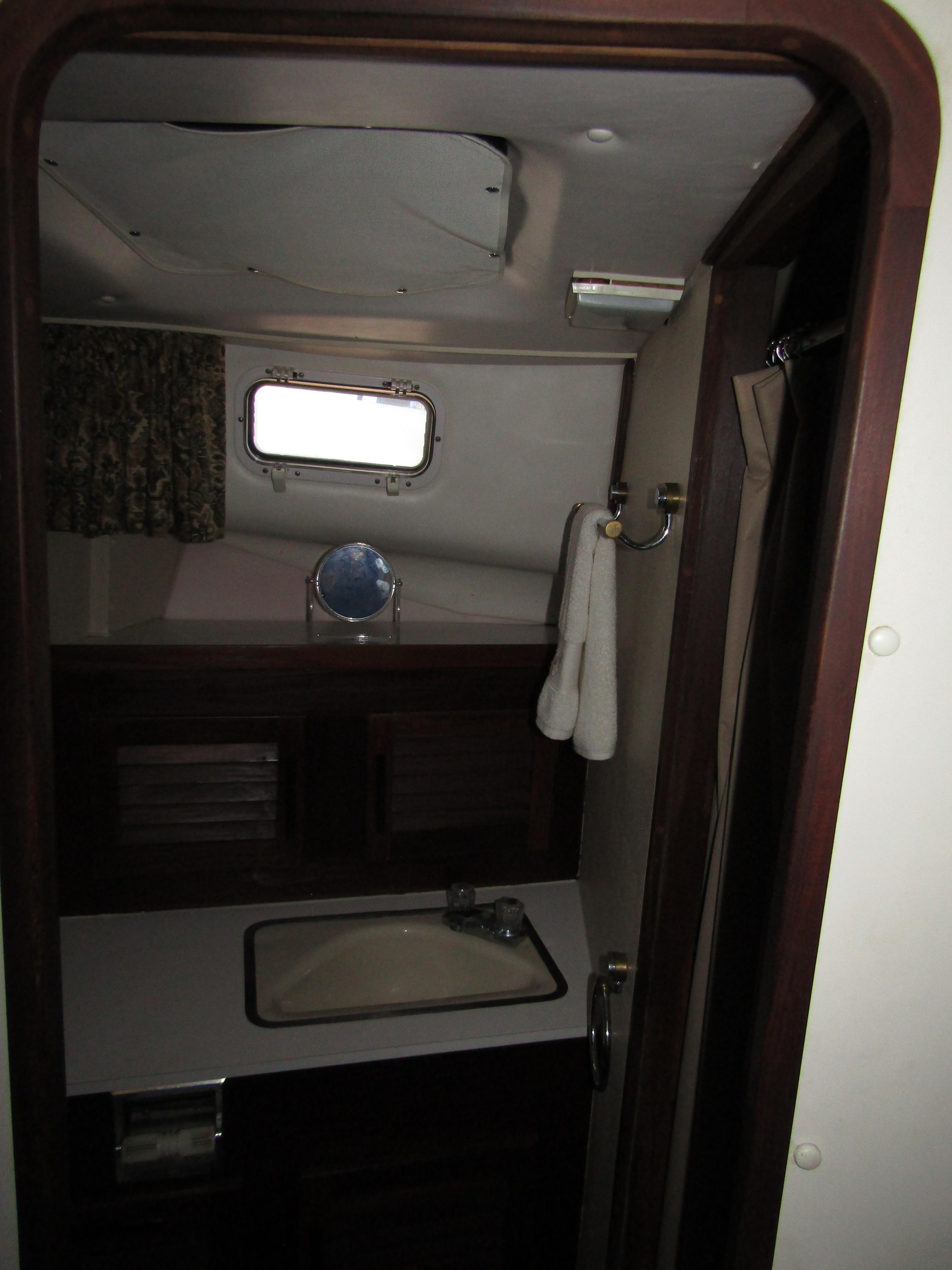 Irish Goodbye's V-berth has been modified by previous owner to a twin berth to accommodate a disabled user. It has been estimated at $400-500 to retrofit the berth back to a queen berth.