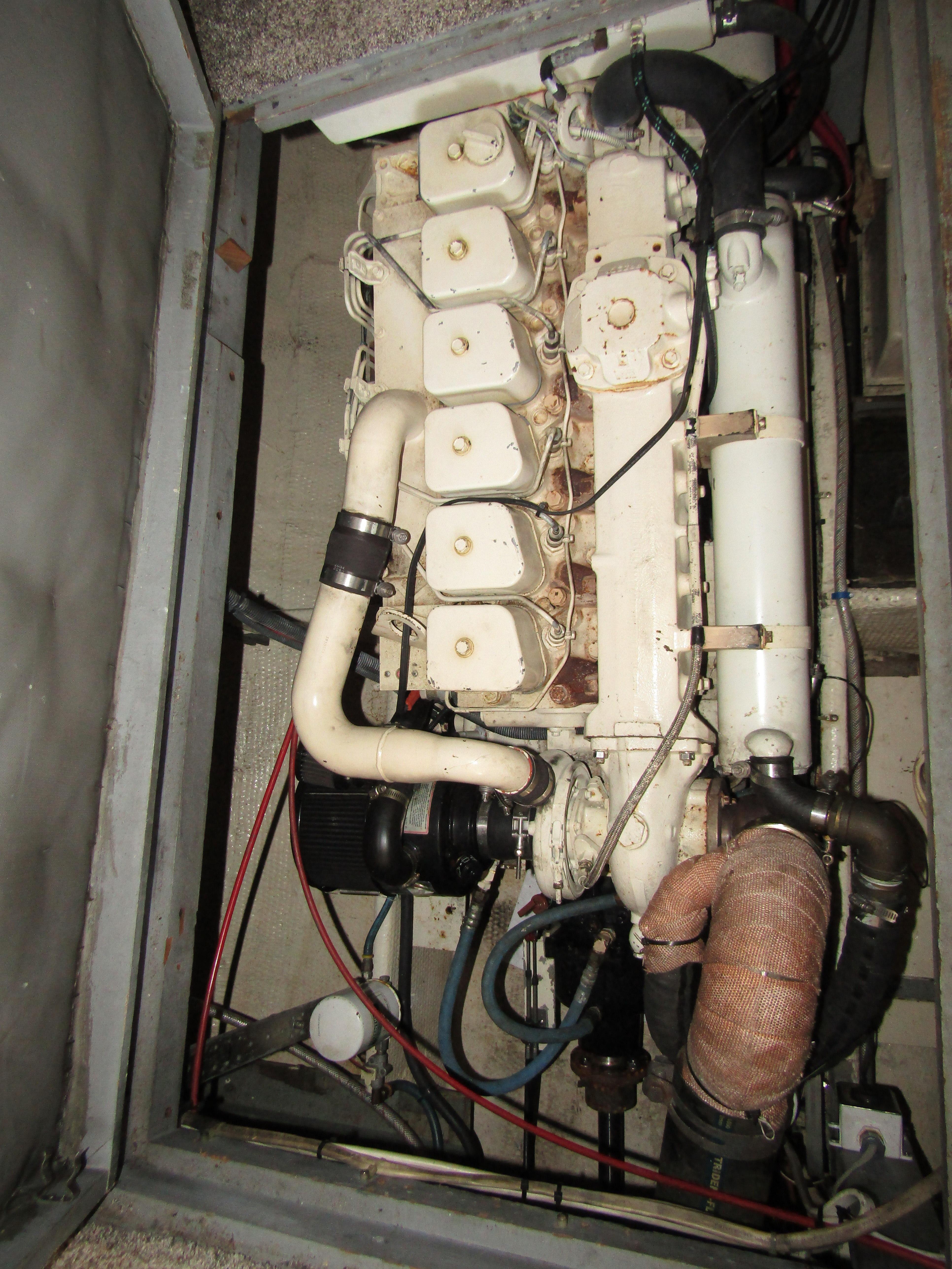 Twin 5.9 Cummins, 220 H.P. each, 750 hoursVelvet drive transmissions (2019 and 2022).24,000 BTU a/c unit in main salon – installed in July 2019.12,000 BTU a/c unit in stateroom, Vetus 95 bow thruster with remote.Fuel flow scan monitoring system (reads mpg or gpm).Dripless stuffing boxes.