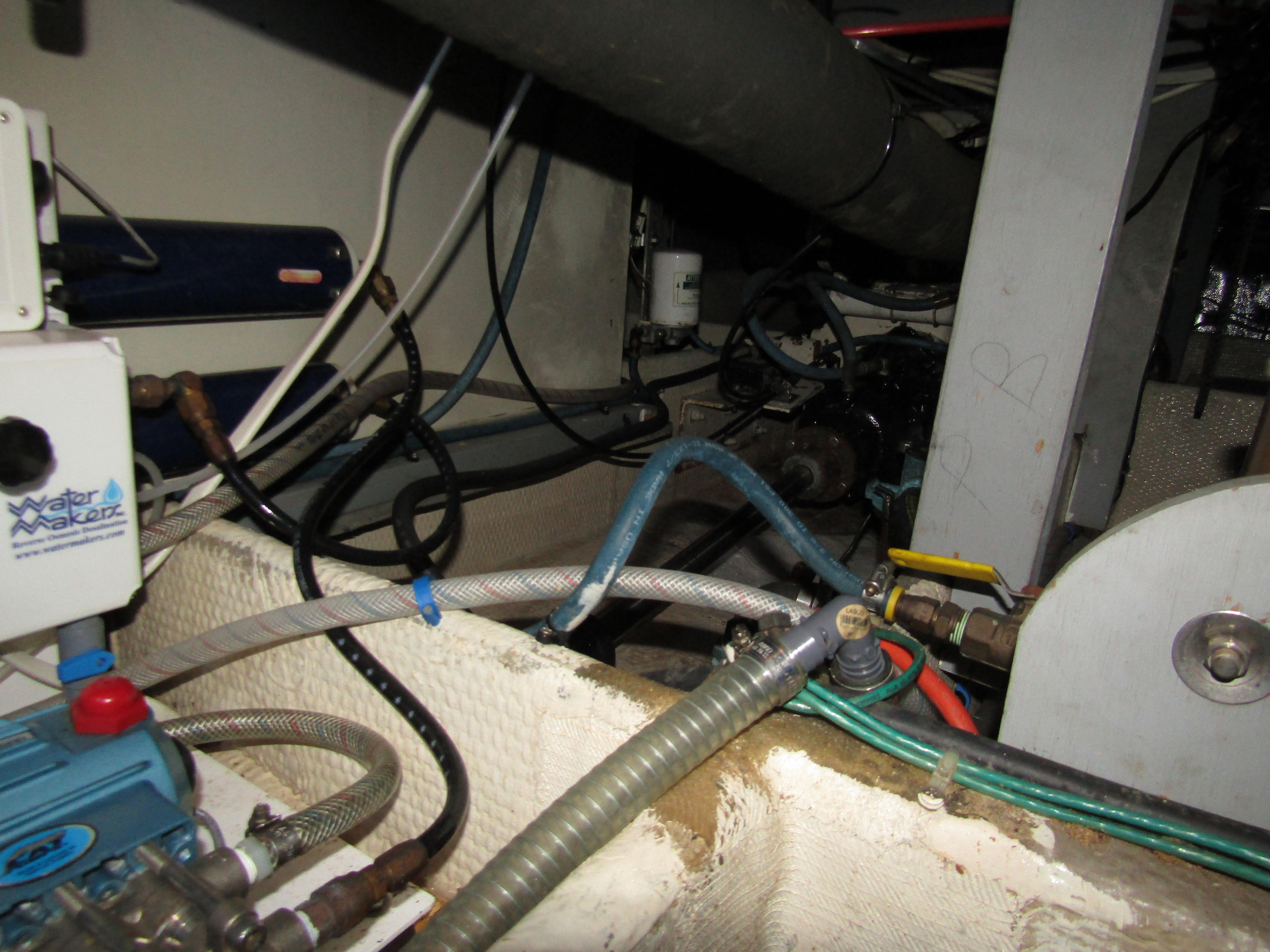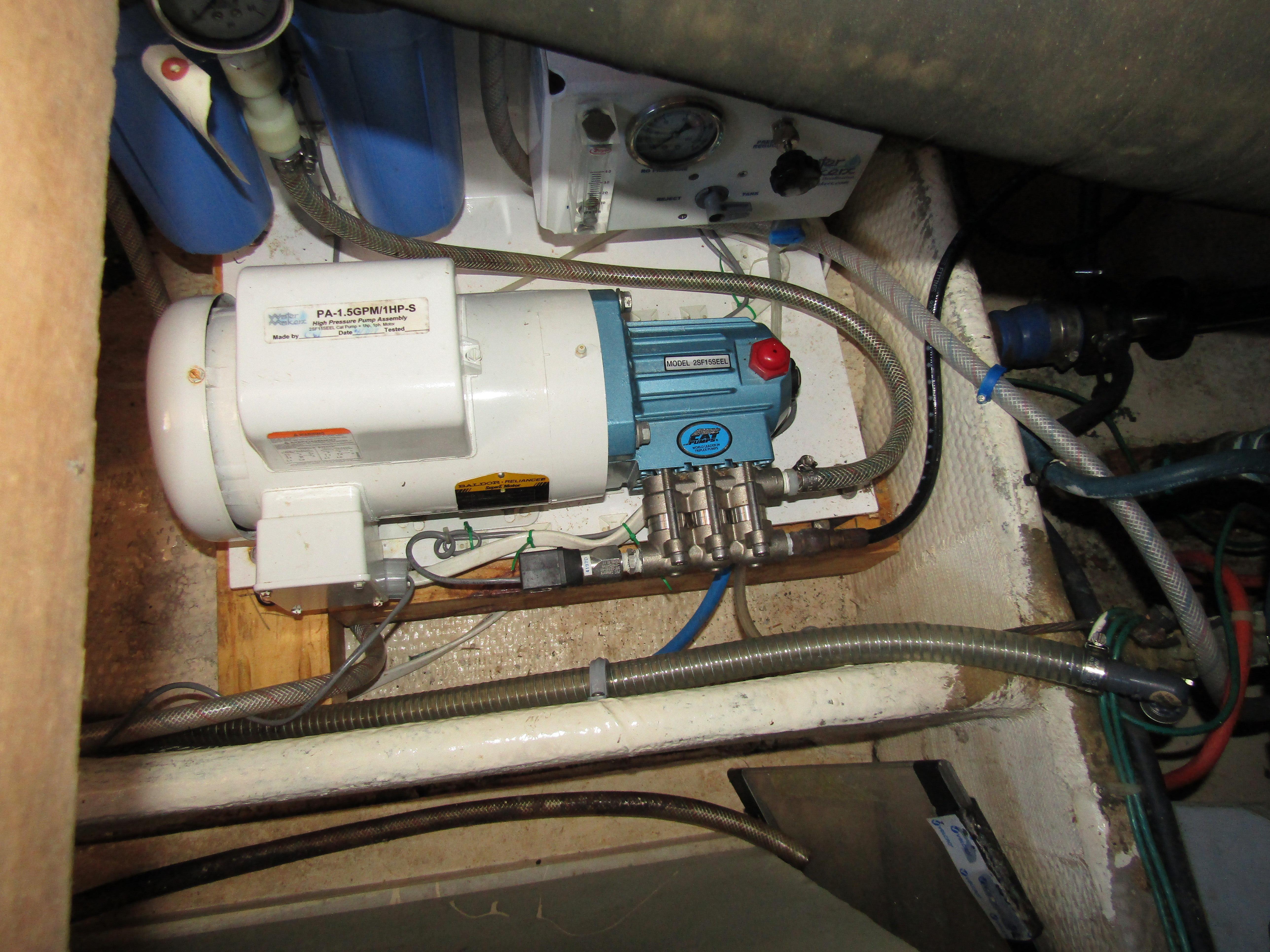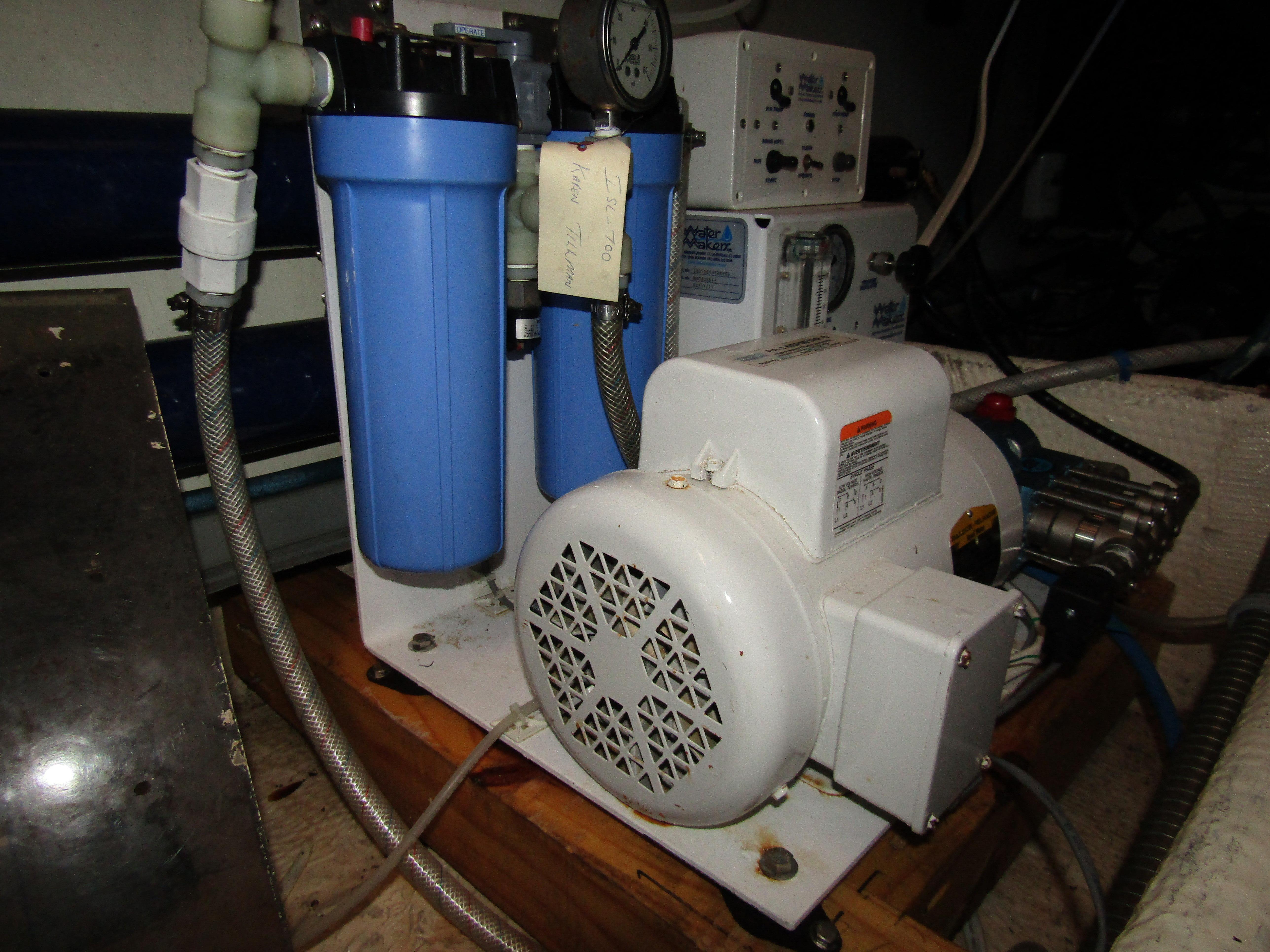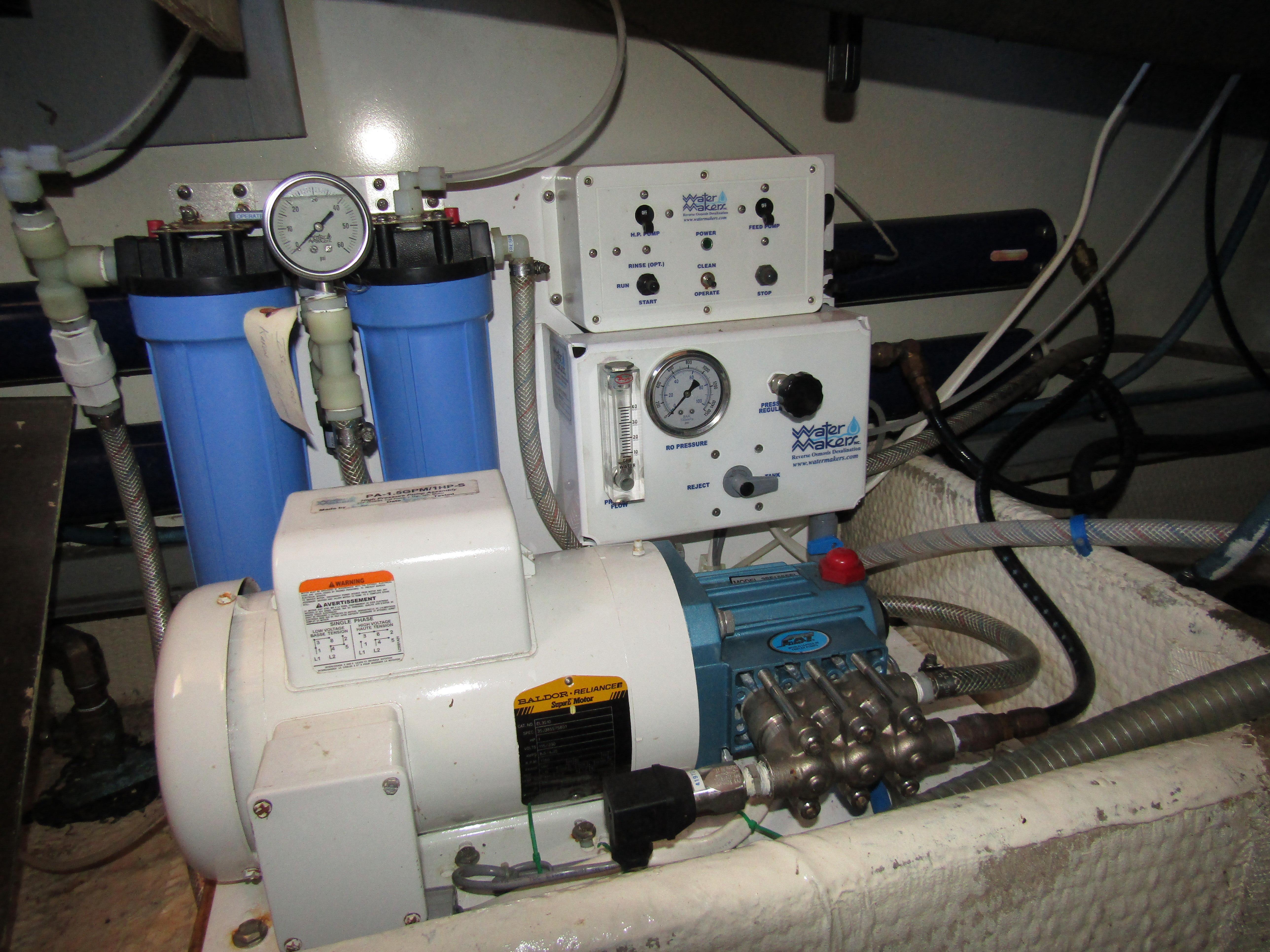 GalleyPort side full-length countertop with 3 burner stove, stainless steel sink, pull-out pantry, undercounted microwave and lots of storage. 2019 - Large Isotherm refrigerator/freezer. Watermaker provides 8 gallons per hour. Also has Uline ice maker.
