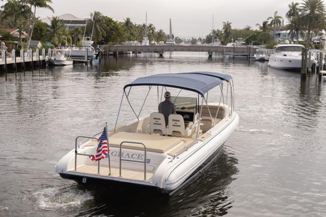 Introducing the Novurania Chase: Your Ultimate Center Console ExperienceStep aboard the extraordinary Novurania Chase vessel, a true gem that surpasses all expectations for a center console boat. Designed for the discerning boater seeking luxury and functionality, this vessel offers an unparalleled experience on the water.**Key Features:**1. **Spacious Design:** Experience unparalleled comfort with ample seating and a large sun pad for basking in the sun. Take refuge under the dual Bimini tops that provide shade over the console and bow seating area.2. **Impeccable Upholstery and Teak:** Revel in the pristine condition of the brand-new upholstery and well-maintained teak accents, ensuring a fresh and modern look for years to come.3. **Generous Storage:** The expansive engine compartment offers abundant storage space for all your gear, toys, and supplies, ideal for extended trips or leisurely days at anchor.4. **Adventure-Ready:** Equipped with 4 scuba tank holders, a spacious swim platform with removable stanchions, and a bow thruster for effortless maneuverability, this vessel is primed for thrilling adventures on the water.5. **Safety and Comfort:** With high gunwales and ample shaded areas, the Novurania Chase prioritizes safety and comfort, making it ideal for families with young children.6. **Entertainment Excellence:** Immerse yourself in a world of sound with the latest JBL marine speakers and Bluetooth connectivity, ensuring a premium audio experience while on board.7. **Extra Amenities:** Originally a yacht tender, this vessel boasts a tow eye for convenient towing, an electric windlass with helm controls, and underwater lights for added ambiance.Embark on unforgettable journeys and create lasting memories with the Novurania Chase. Whether you're exploring the open seas or cruising the tranquil intercoastal waters, this exceptional boat promises unparalleled experiences and safe voyages for all.