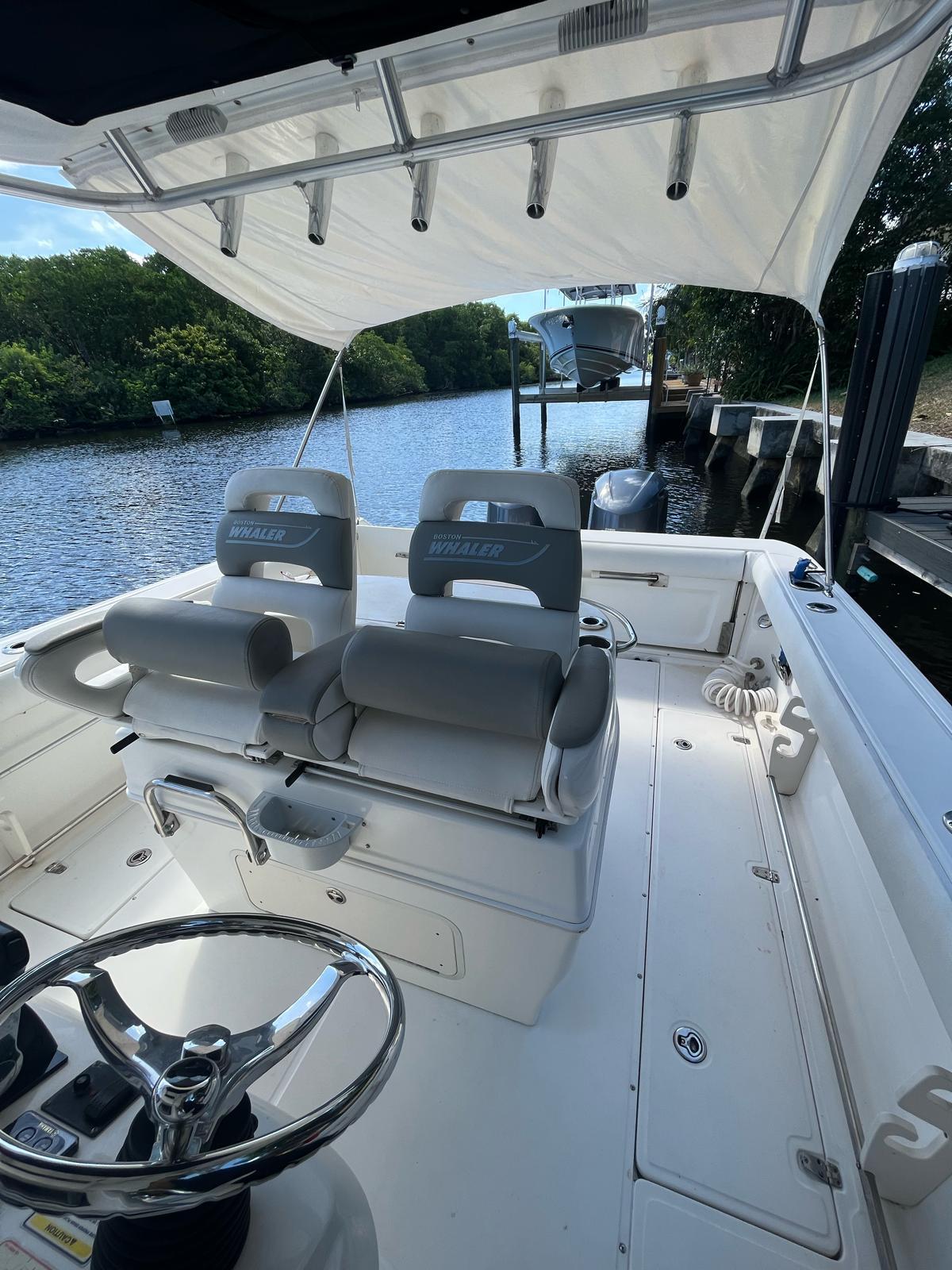 320 Boston Whaler Cuddy Cabin 2006.Vessel has been repowerd in 2016 with twin YAMAHA 300 HP 4 strokes engines. All services up to date on engines and bottom paint was done in 1-1-24. TURN KEY BOAT. 2 garmin chart plotters with sonar. Live bait well, salt water wash down system. Marine head vacuume flush. fresh water tank with sink and wash down. Aft canopy for shade. Freshly waxed and ready for new owner.
