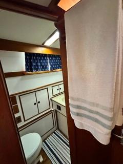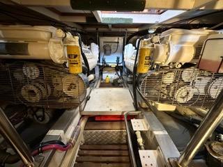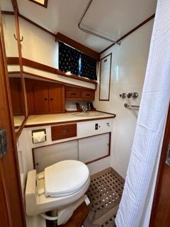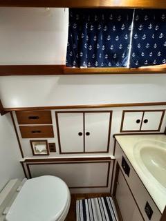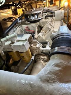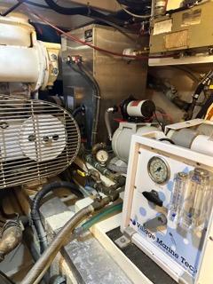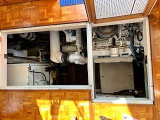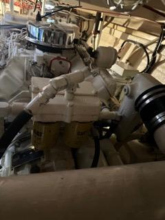 Engines: Two CAT 3208N 210 HP Port Hours: 4375 Starboard Hours: 4382 Morse Separate Electronic Throttle and Clutch Controls - only active at main helm station for back up All Injectors Replaced - 2019 Morse Single Lever Electronic Controls - active at both helm stations - NEW 2021 12V Oil Change Pump Transmission: Twin Disc Hydraulic MG-506-1A Straight Drive Transmission Generator: Onan 8KW 8MDKDB 60 Hz / 120V Hours: 2287 Engine Room Ventilation: 12 Volt Blowers with Flex Piping Fresh Water System: 12 V On demand water pump - NEW 2024 Village Marine Tec STW600 110 V / 25 GPH Water Maker Seaward 120V Heat Exchanger water heater Air Conditioning System: Multi-Zone Air Conditioning SystemCruisAir Reverse Cycle A/C Master Stateroom Guest Stateroom Main Salon Heads: Dual Sea Land Vacu-Flush Heads Jabsco 12V Macerator Pump Deck Pump Out Electrical System