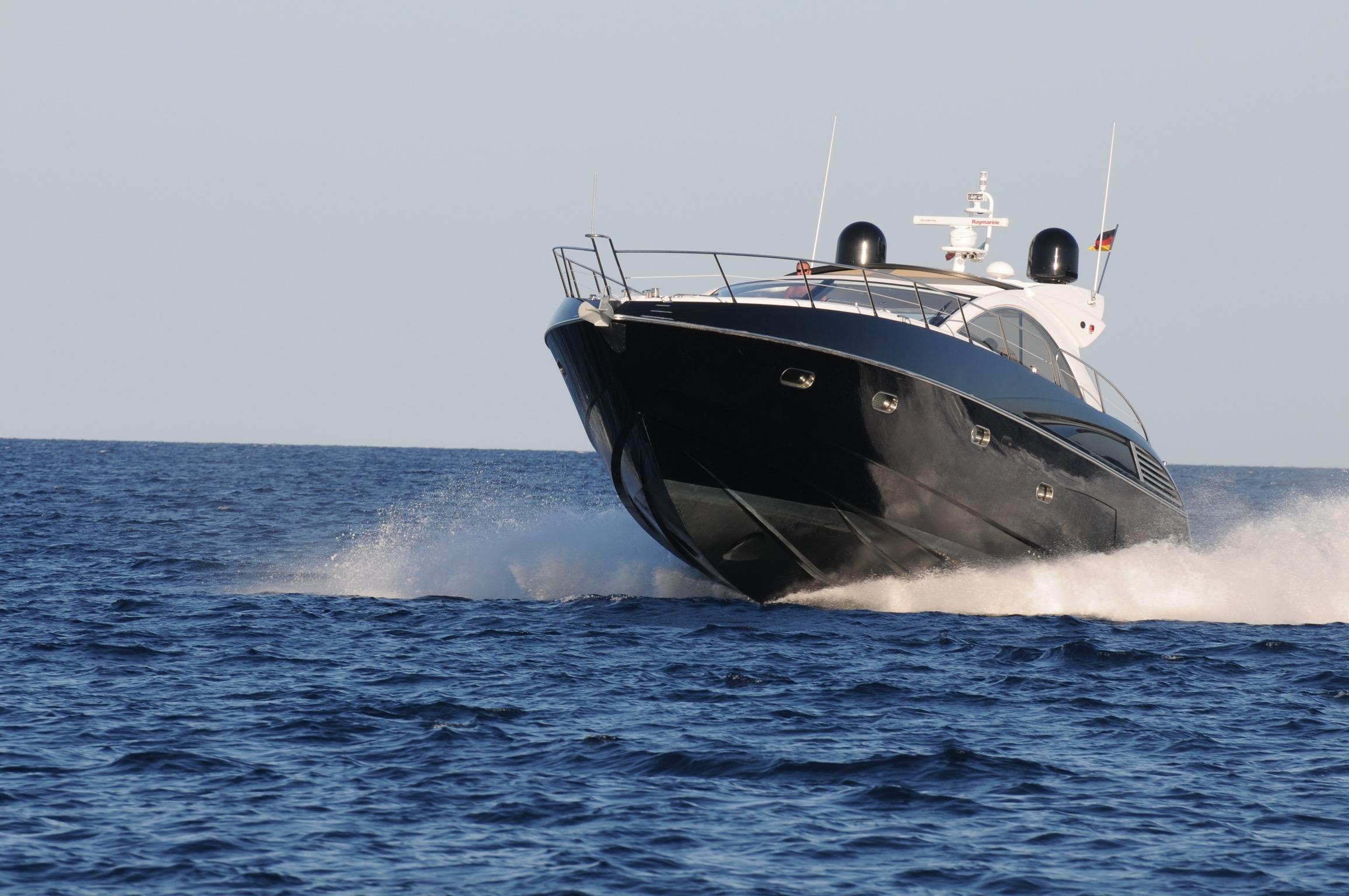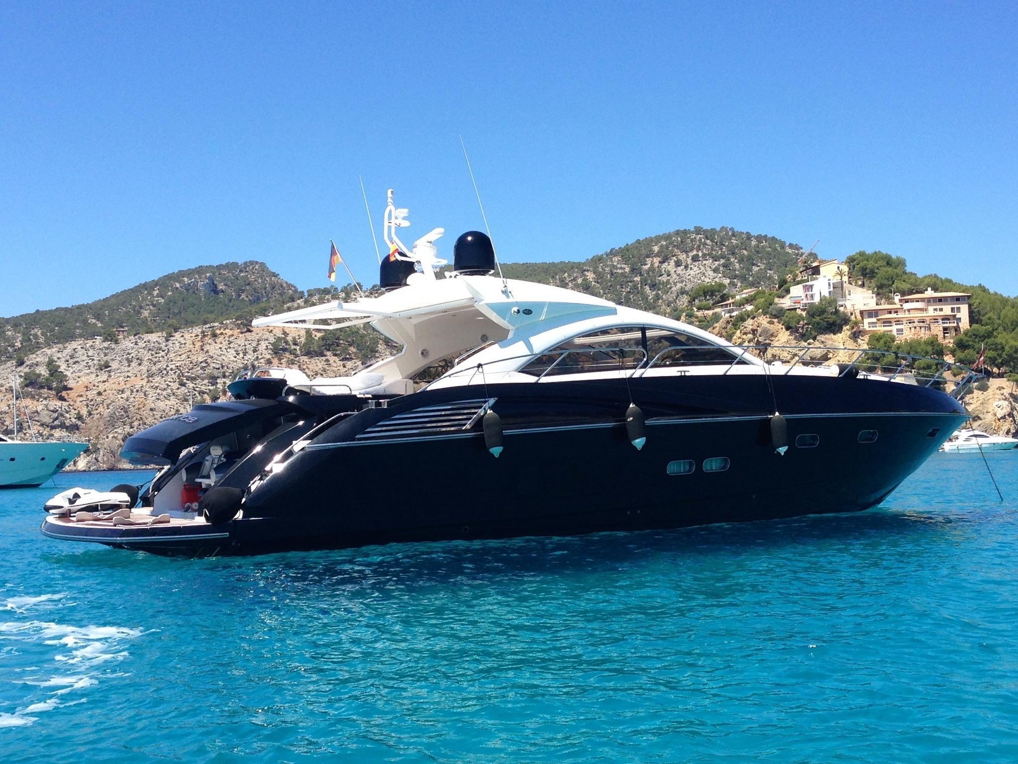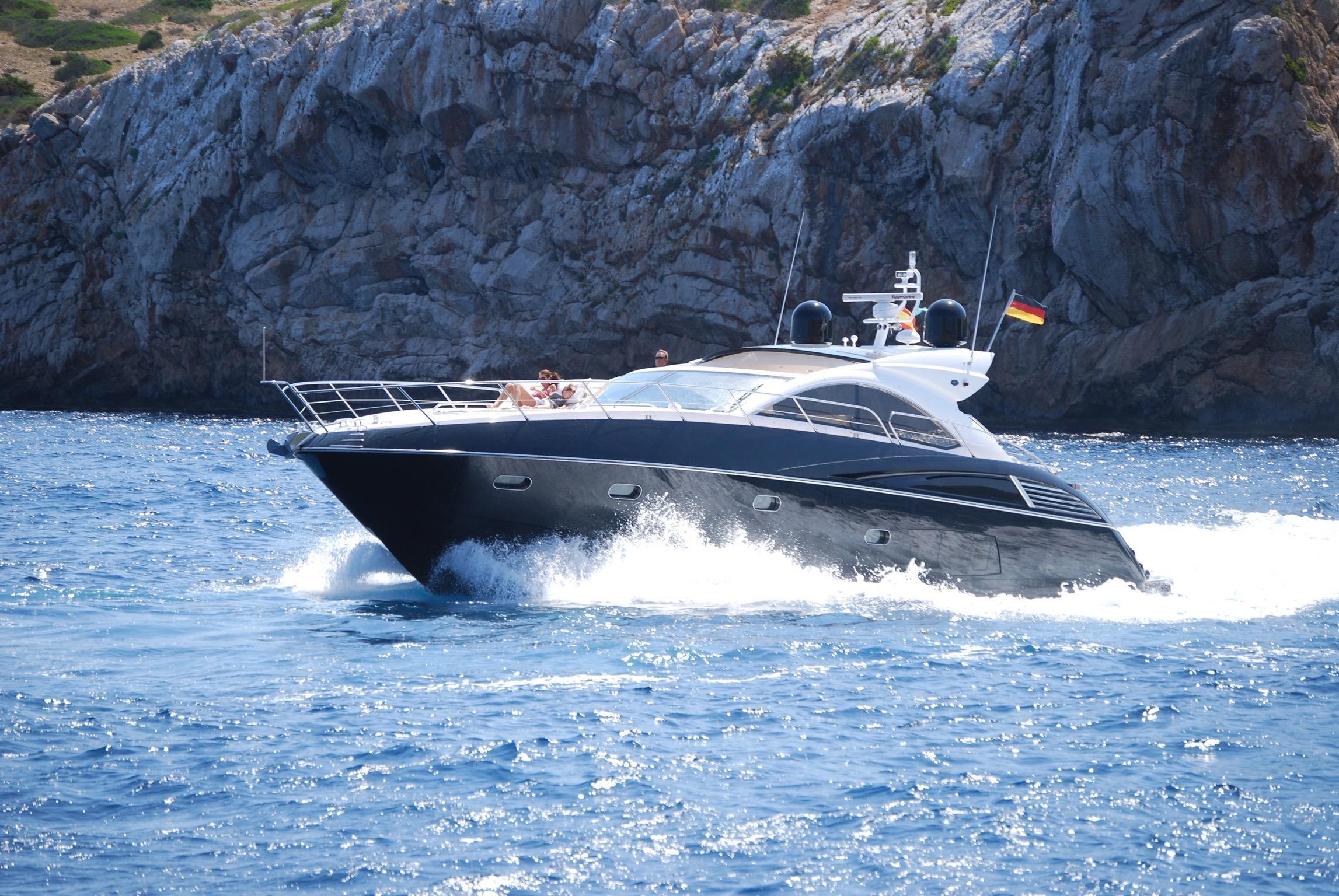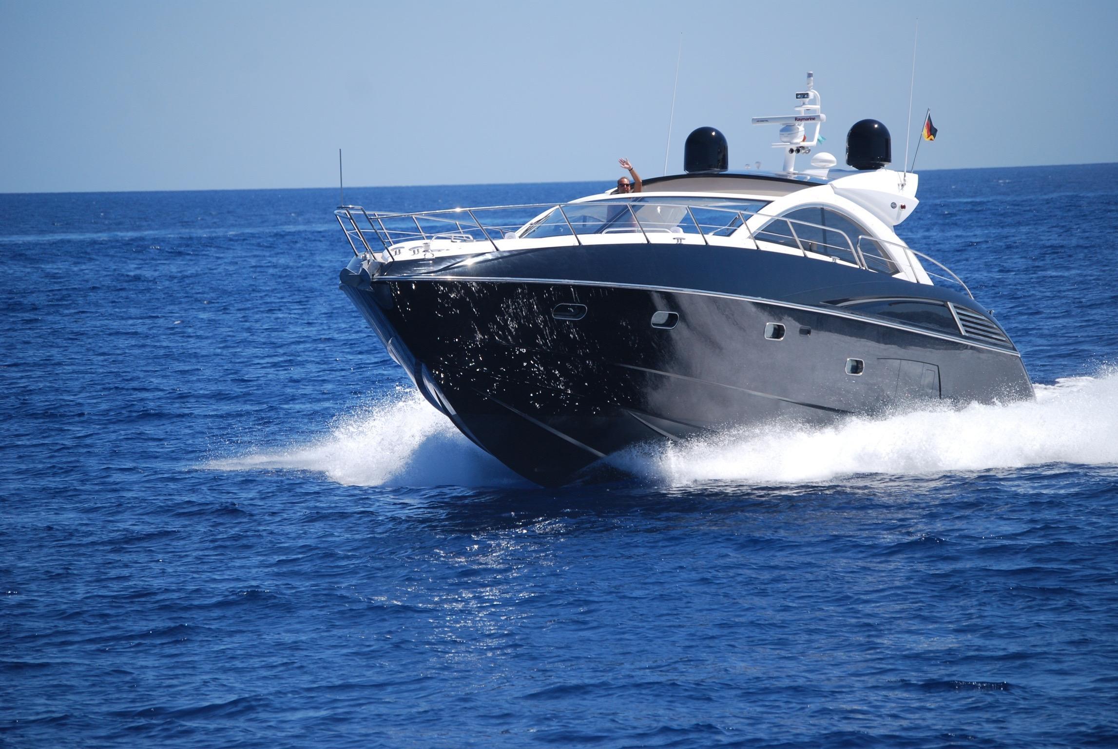 This 40-knot speedster is as much about performance as it is about comfort. A high performance hull belies the space onboard, where accommodation is optimised. Both open and hard top versions are available. And as well as a choice of engines, theres also an option in drive systems. The more compact pod drive saves engine room space enabling an enlarged master suite. Luxury is extended throughout with a large main deck area providing ample space for dining and entertaining. Large sunpads are positioned fore and aft and the garage provides ample storage for tender or jet ski. Down below the saloon and three guest cabins all offer a typically high level of comfort and feature their own entertainment systems. Disclaimer