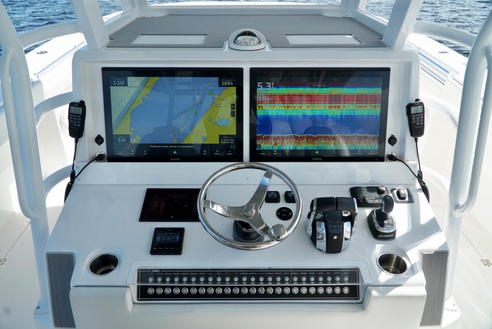 Bring all offers, open to late model trades.This like-new 2021 46' Invincible has stayed in a covered shop when not in use and has always been professionally maintained. The owner has built multiple boats with Invincible, so this boat is dialed in with upgrades throughout the boat. The only reason for selling is that the owner is building a new 46' Invincible Catamaran! She has been designed to be fished like a tournament boat while still providing the versatility to entertain up to 20 people with her ample seating and wide beam. Some unique things that this boat has built in to accommodate fishing include dual wash-down hoses both in the bow and cockpit that have fresh water capabilities, with two 55-gallon freshwater tanks located on both port and starboard sides. She also has electric reel plug-ins, both port and starboard side bow, and also in the cockpit, which allows for more room to spread out anglers. In the cockpit, there are dual live wells along with the rear-facing tackle station upgrade. The helm area includes dual Garmin displays, Optimus 360 Joystick capability, autopilot, and a Mercury VesselView 903 Upgrade display. She is also equipped with FLIR, Sirius XM radar, and a 4ft 12 kw radar. She has adjustable dual-row helm seating equipped with a Shoxs upgrade, which allows for a serene ride.She is the ultimate offshore fishing machine, with unprecedented size, range, and amenities to carry everyone and everything anywhere, in any condition. A 46’ catamaran is designed to efficiently achieve world-beating performance out of quad-outboard engines while providing sportfish-level fishability and specifications. She also has the style, design, and comfort to turn the heads of every person passing by. She is ready to be a part of unforgettable memories with her new owners!Key Upgrades/Features-Powered by quad 450Rs with 400 hours-Electric Reel Plug-ins (x4)-Deluxe Back to Back Helm Seat w/ Built-in cooler-Rear Facing Tackle Station-Extended Console-Coffin-JL Audio speakers 8.8 (x8), JL Audio speakers 7.7 (x4), JL Audio speakers 6.5 (x4), JL Audio 10 inch Subwoofer (x2), JL Audio 12 inch Subwoofer (x2)-GOST Nav-Tracker 1.0 INS Package-Seastar Quad Optimus 360 Upgrade-Leaning Post Chill Plate-Garmin 8624 Displays (x2)