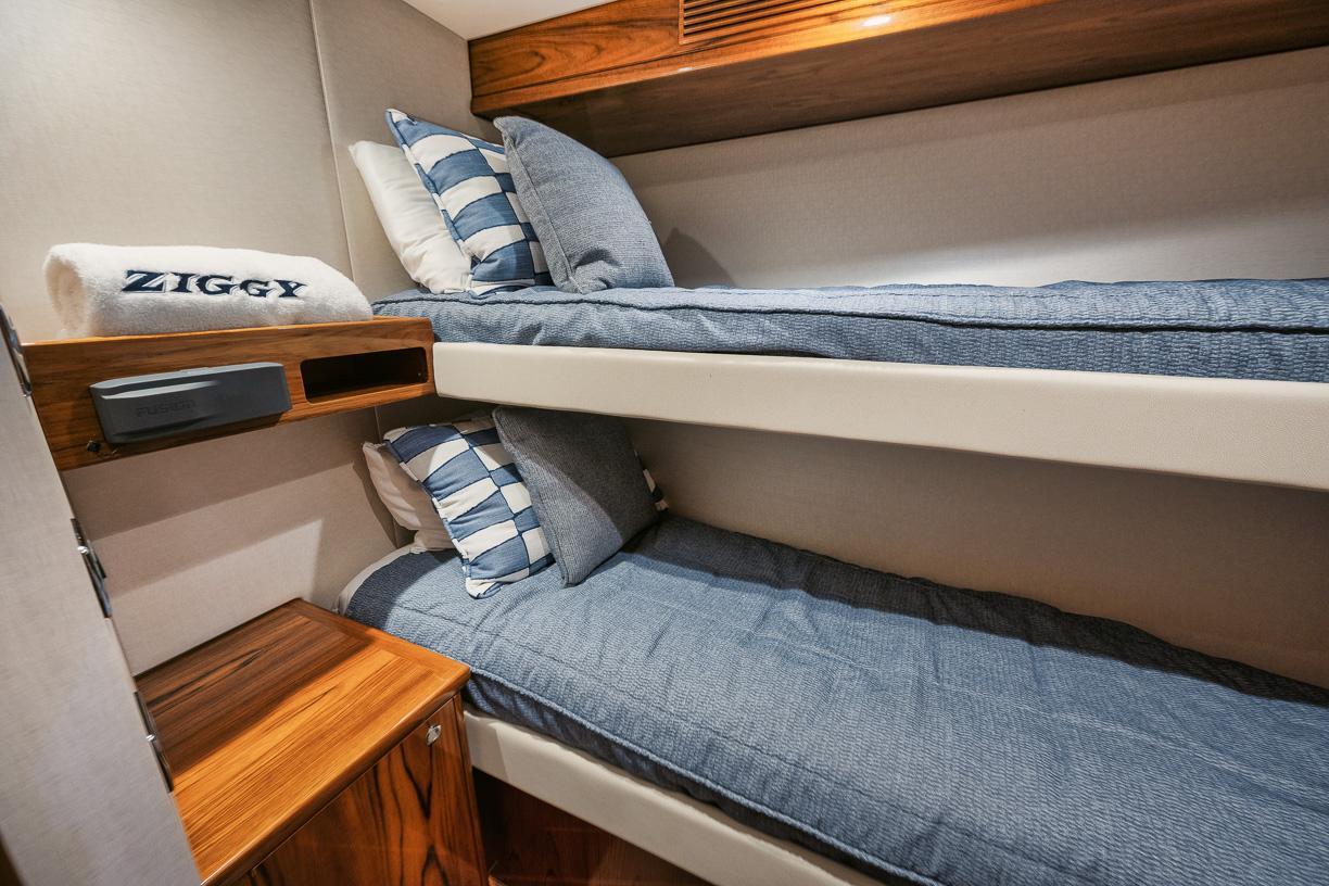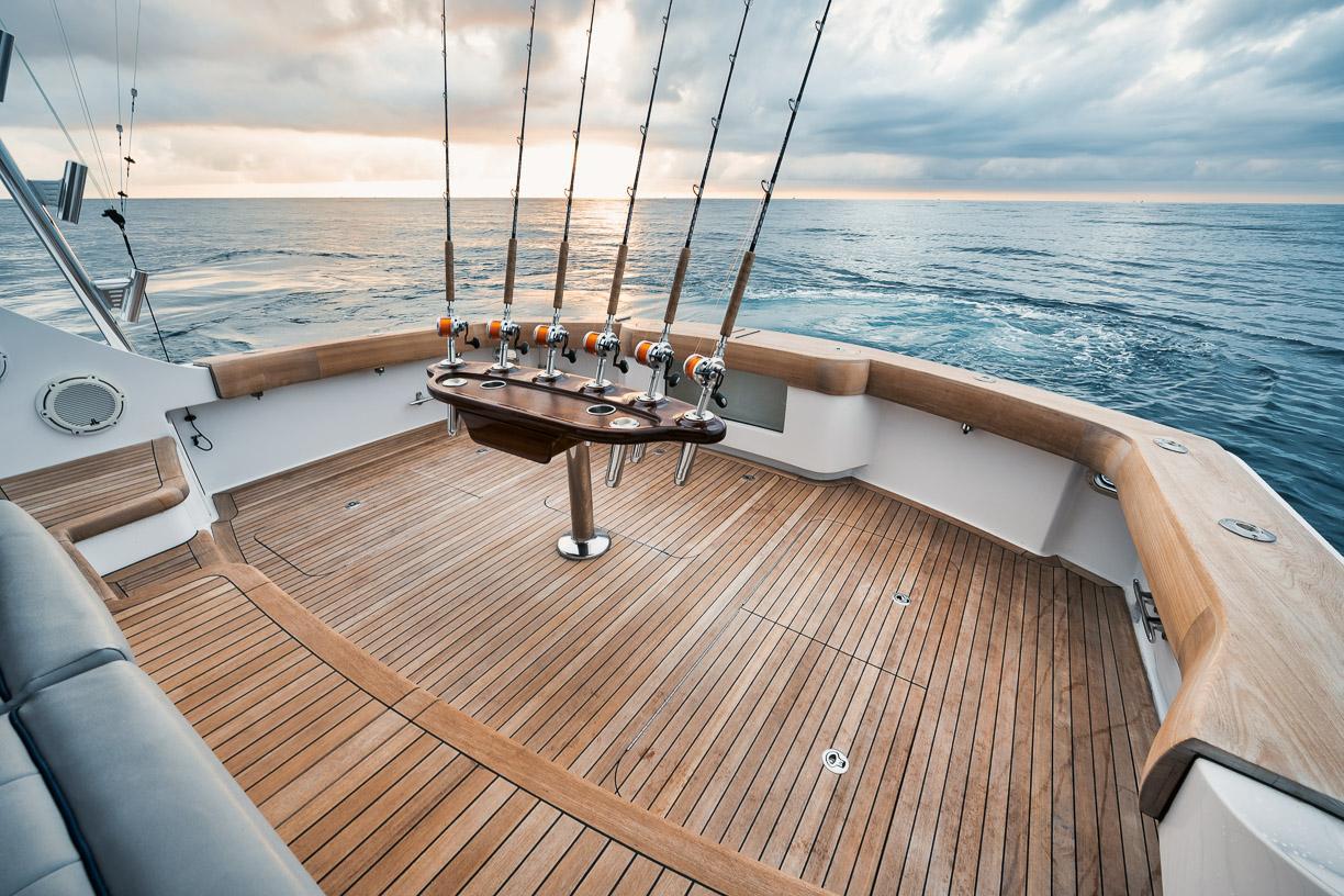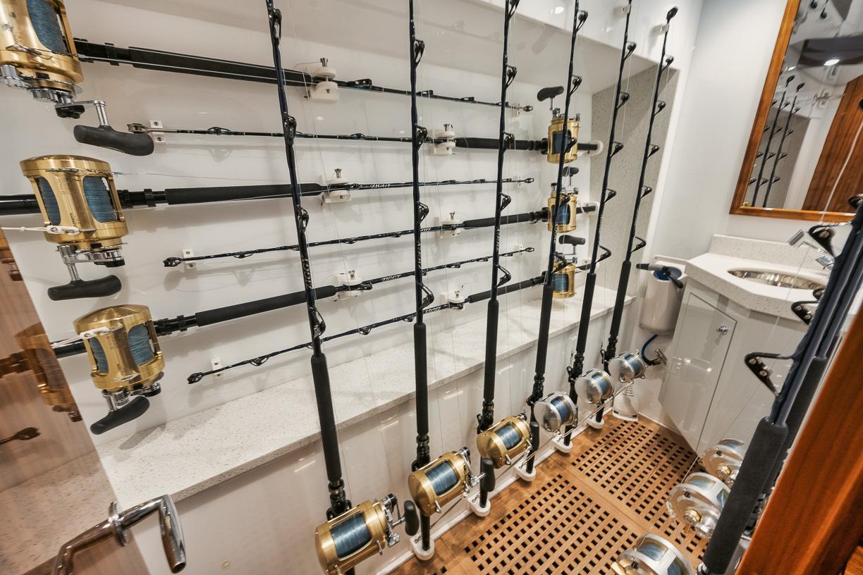 - Custom rod and reel storage in port side closet