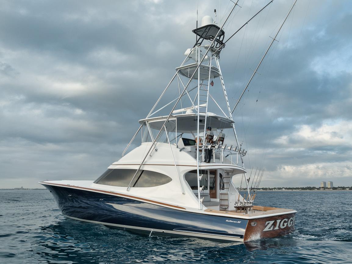 “Ziggy” is a 2020 Hatteras GT 59 that was built with the avid fisherman in mind! This Hatteras has a three-stateroom, three-head layout with ample storage and amenities throughout. The interior of this vessel was highly customized from the illuminated Nebbia Gray Agate countertops, optional dinette layout in the salon, Amtico flooring throughout, and impressive rod and tackle storage throughout. Moving to the exterior, "Ziggy" stands proud with a dominant metallic dark blue hull and faux teak accents throughout. Equipped with CAT C32As, Seakeeper 16, Eskimo EI 540, Dometic XZ Spot Zero/watermaker combo unit, and much more. Ziggy is geared up to take on your next adventure.Ziggy is truly immaculate and a pleasure to show - call today to set up a showing!