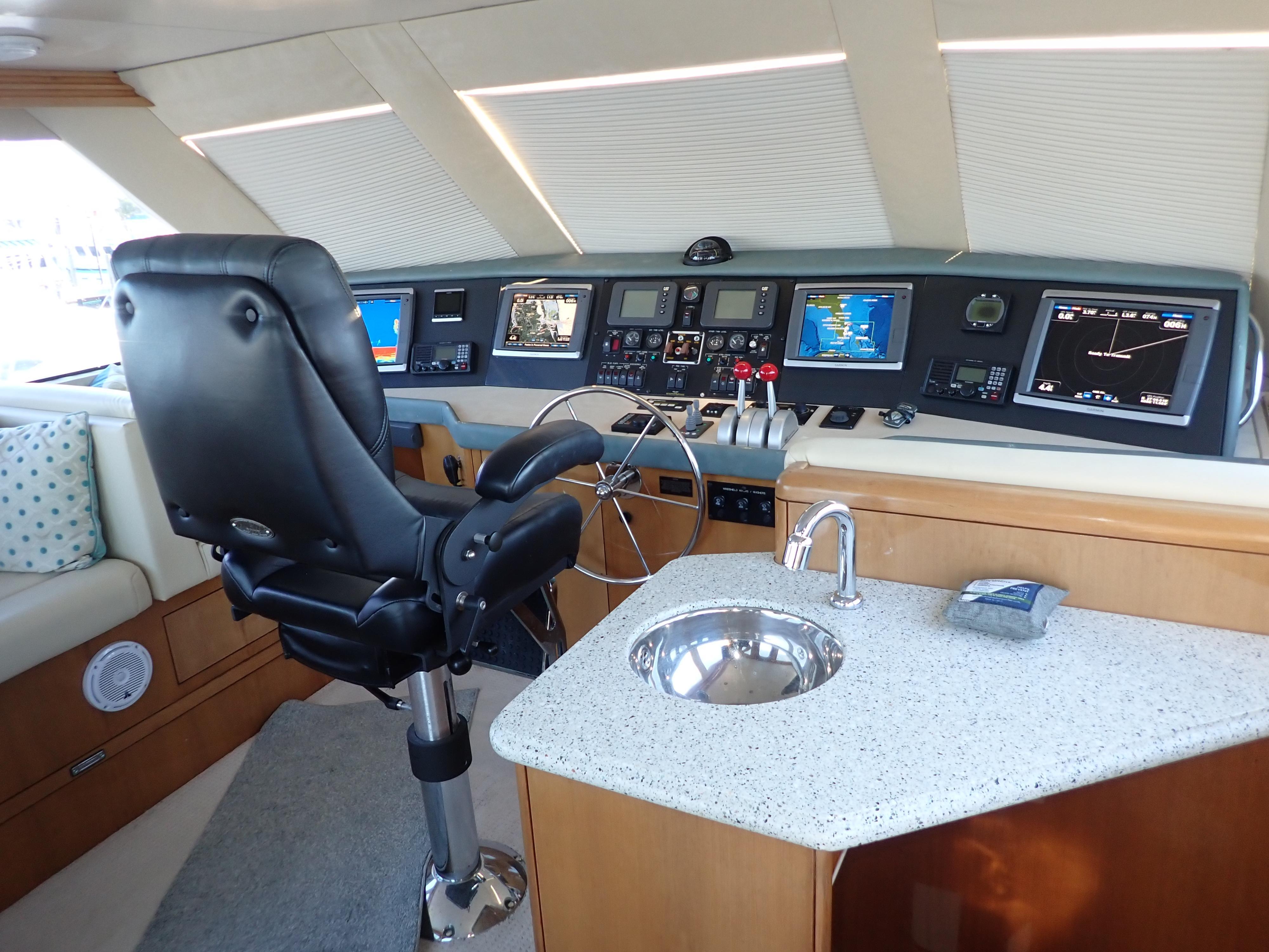 SOMETHING FISHY has been maintained and updated by a very knowledgeable owner. She offers a three stateroom three head layout with an enclosed flybridge and spiral staircase. Her CAT C30 1550HP engines received full service in December 2024 including new aftercoolers and she has only 2070 original hours.