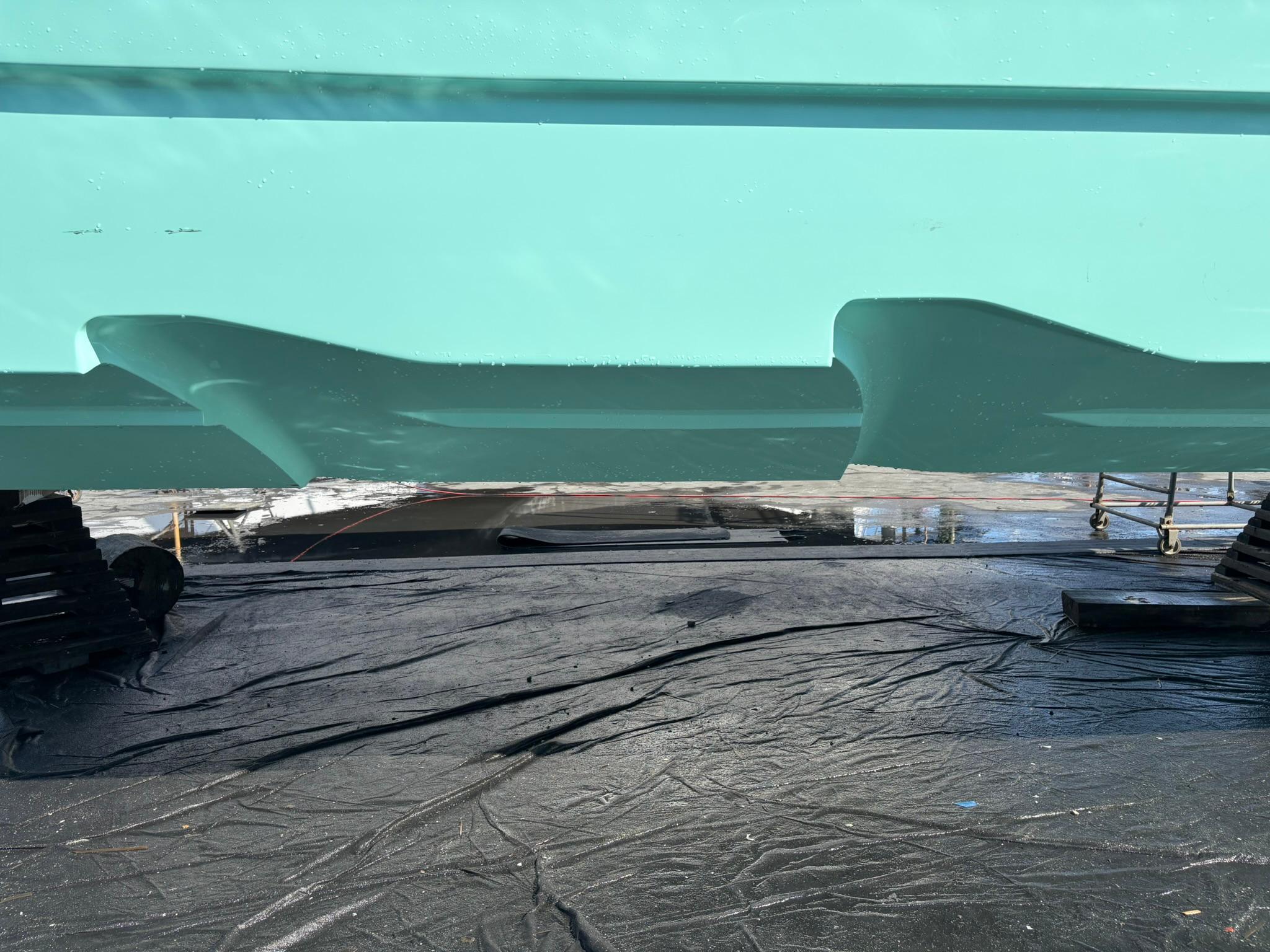 The underwater body of the HammerCat 30 is defined by her double stepped hull and a wave breaker / anti sneeze step in the forward part of the tunnel. Lifting strakes on the inside and outside of the hull keep the spray low and prevent water coming up over the bow / sides. Where most power-catamarans in this size range struggle to keep any distance between the bridge-deck and the water, the HammerCat 30 offers a significant clearance of 18”, which results in a smoother and dryer ride. The more energy (from your engines) is focused on going forward instead of up and down in the waves, the more efficient and comfortable your boat ride will be.