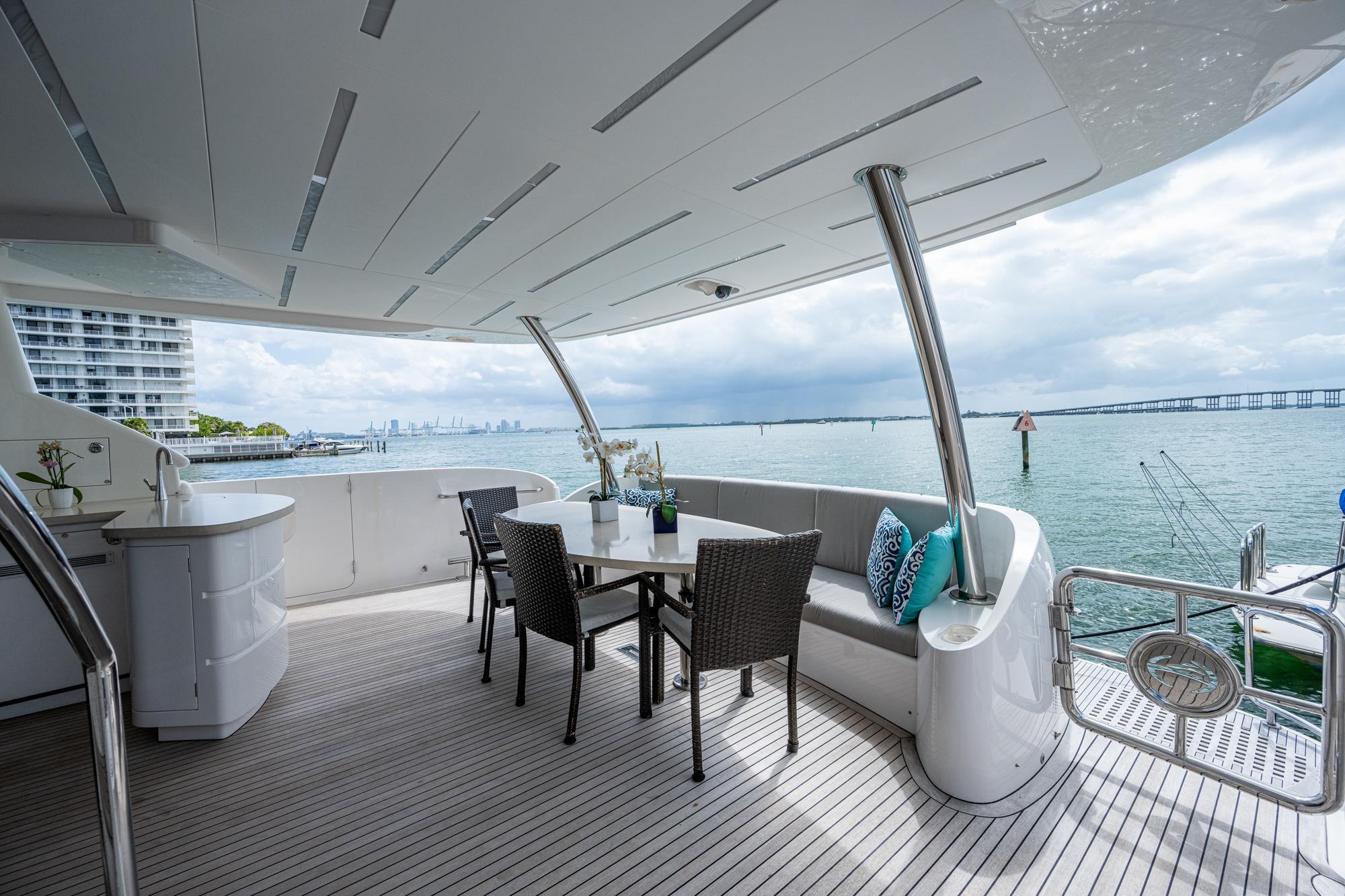 - Aft deck wet bar with sink, ice maker, fridge, freezer