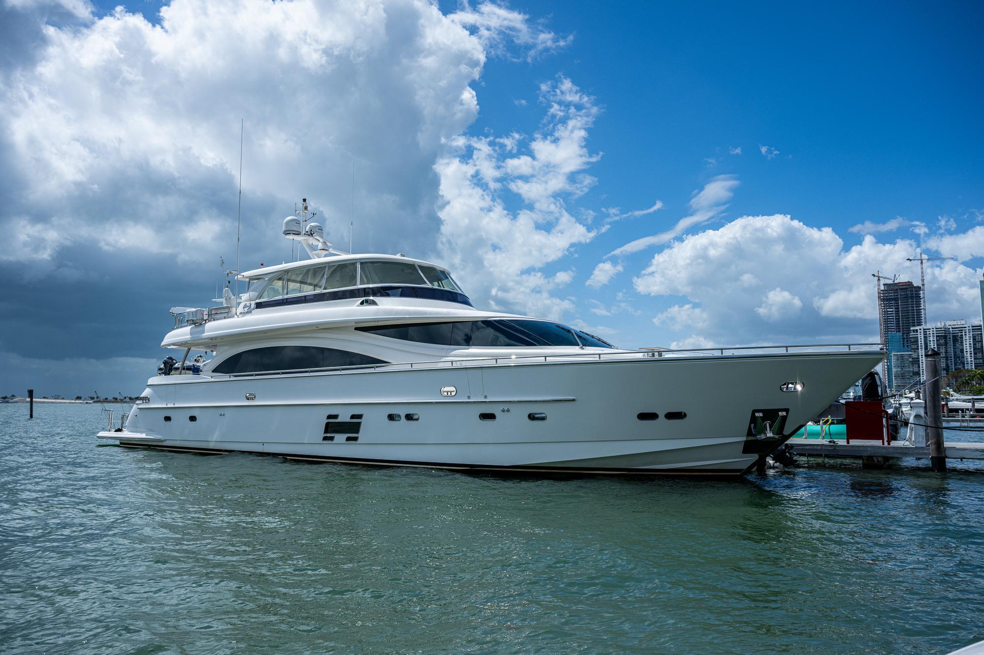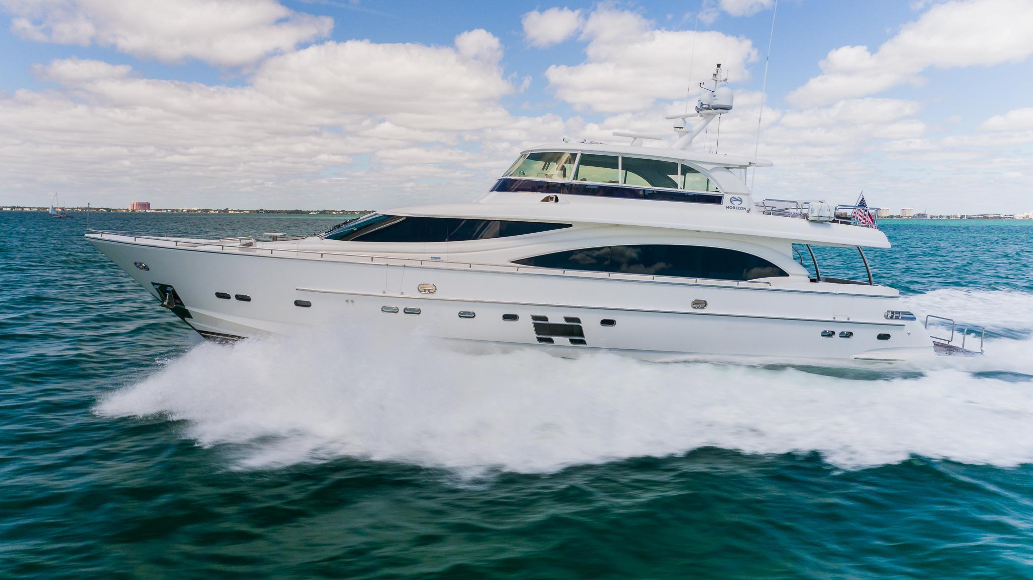 Indulgence meets functionality in the exquisite 2016 Horizon E88 open bridge yacht and this one is in astonishingly good shape with loads of upgrades listed below. Boasting a generous 21-foot beam and a spacious four stateroom layout complemented by separate crew accommodations, this vessel epitomizes luxury on the water.The open flybridge beckons for al fresco entertaining, while the custom beach club and hi/lo swim platform effortlessly facilitate watersports adventures. Semi-gloss teak wood, lacquer accents, and bespoke interior décor create a harmonious fusion, evoking a contemporary beach house ambiance.Equipped with a day head on the main deck, alongside a cosy salon, formal dining area, and a country kitchen, every detail ensures cruising in unparalleled comfort and opulence wherever you journey leads.Horizon is renowned for quality yachts worldwide, the Horizon E88 motor yacht, meticulously crafter by John Lindblom, delivers a sleek style and elegance across both the open bridge and skylounge variants. Its expansive beam not only provides amble space for guests and crew but also ensures safe and spacious side deck walk-arounds. With a single main deck level facilitating seamless transitions between the salon and galley, convenience is paramount.Flexible interior and exterior layout options allow for personalized customization, ensuring the Horizon E88 caters to your unique yachting desires. Options & Notables145 GT of interior volumeZero Speed fin stabilizers - ABT TRAC Digital 300/9XReal beach club garage(2) CAT C32 1,800 hp engines(2) Onan 29 kW generatorsFull enclosure in excellent shapeFlybridge AC with over 70,000 BTUs of cooling power3k hour engine service completed and all service intervals are up to dateEngine room just detailed and professionally painted after 3k hour serviceStarlink internet system installedBeautiful and comprehensive Garmin electronics package(2) Full washers and dryersCountry style kitchen with lower helm tucked away out of siteDay bed located aftAll completely new AC chillers (2021)Bow thruster - ABT 46HP/16.25"Stern thruster - ABT 46HP/16.25"Sea Recovery water makerHamann sewage treatment plantTrue flush deck motor yachtImpeccably well kept vesselBenett trim tabs - SST sytem 36" x 16"(2) 100-amp shower power connections aft and (2) 100-amp shore power cord hook ups forward