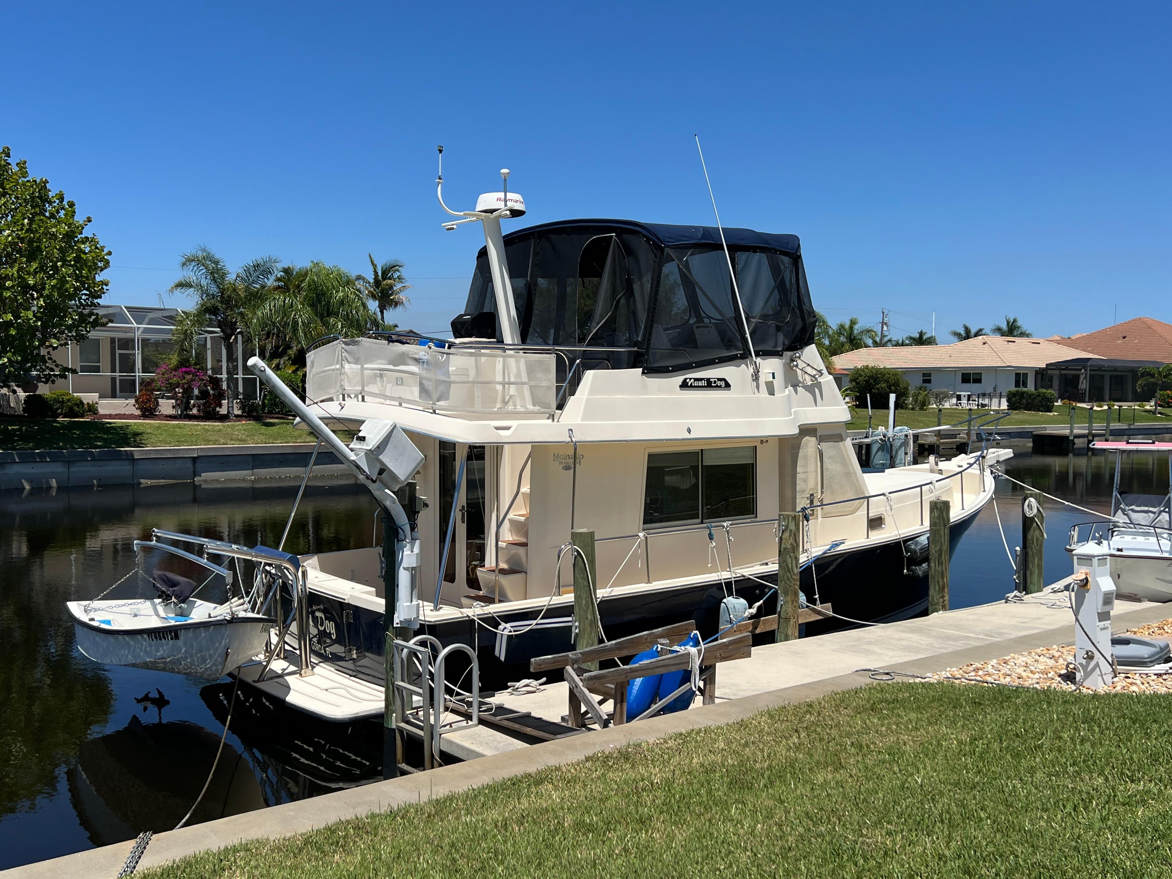 This 2005 34ft Mainship will not disappoint, with all the comforts and classic style that Mainship is known for. The salon is filled with natural light and comfortable seating. The couch pulls out into a full size bed for additional sleeping. A few steps down and forward is a full galley kitchen with a two burner propane cooktop, refrigerator and convection microwave oven. The berth is forward with a tapered queen size bed and storage throughout. The head offers a large walk in shower and entrance doors from the berth and galley. She is equipped with a lower helm and the bridge helm with a table and seating all around. With her Yanmar diesel engine, a Kohler generator and a Pennant 10ft sailing dinghy and davits she is ready for your next big adventure. The Mainship 34 is known for being a perfect vessel to do the Loop in. The owner has spared no expense to keep this vessel looking and running well. She is a Must See so call today 941-662-7949 to schedule an appointment!! Here are just a few of her other features and updates:Bow and New Stern ThrustersStablelizer's Freshly ServicedSingle Yanmar Recent ServiceNew Raymarine Electronics Upper and LowerCustom Bridge EnclosureDavit with Custom DingyMolded Stairs to BridgeEasy Engine Room AccessRecent Bottom Paint