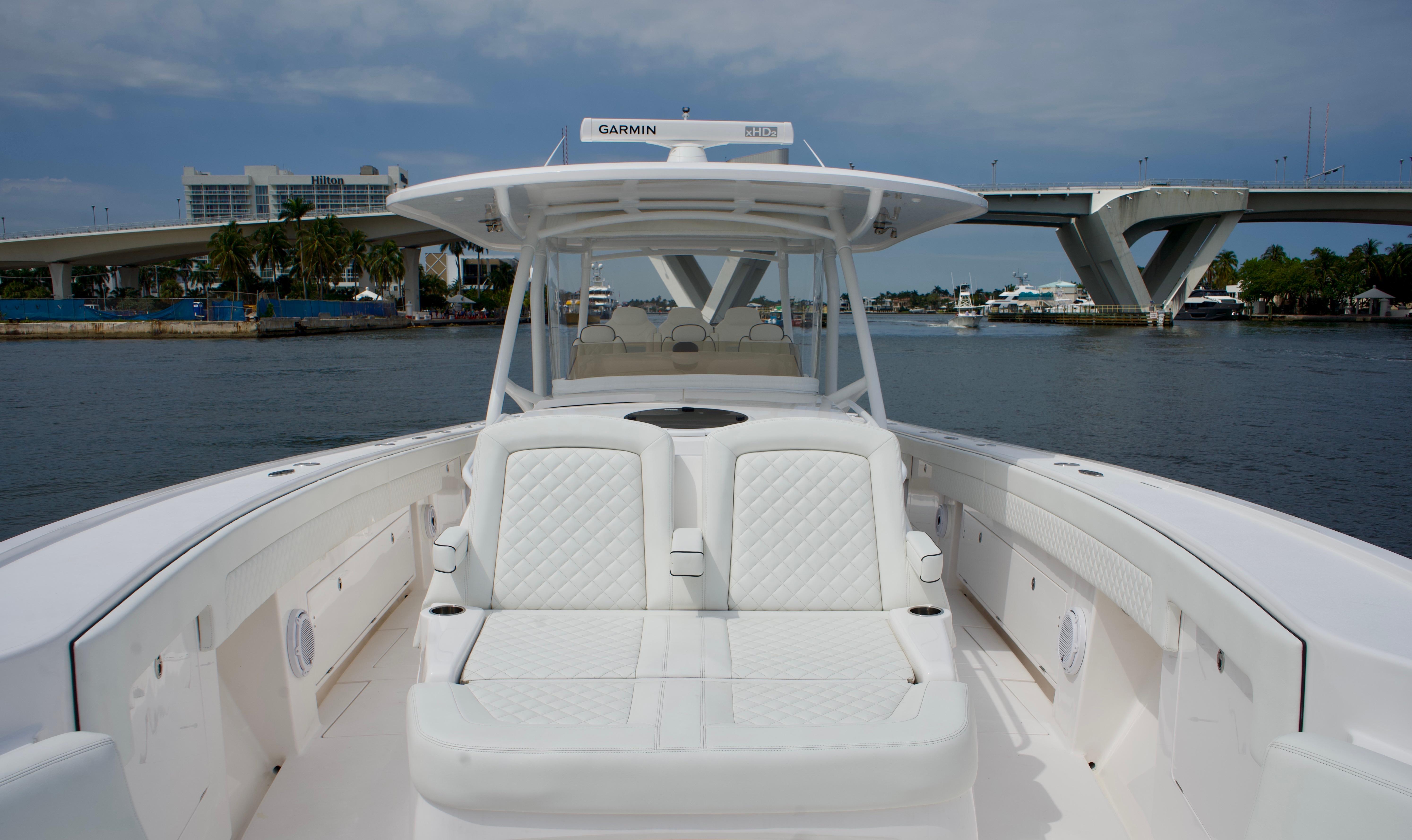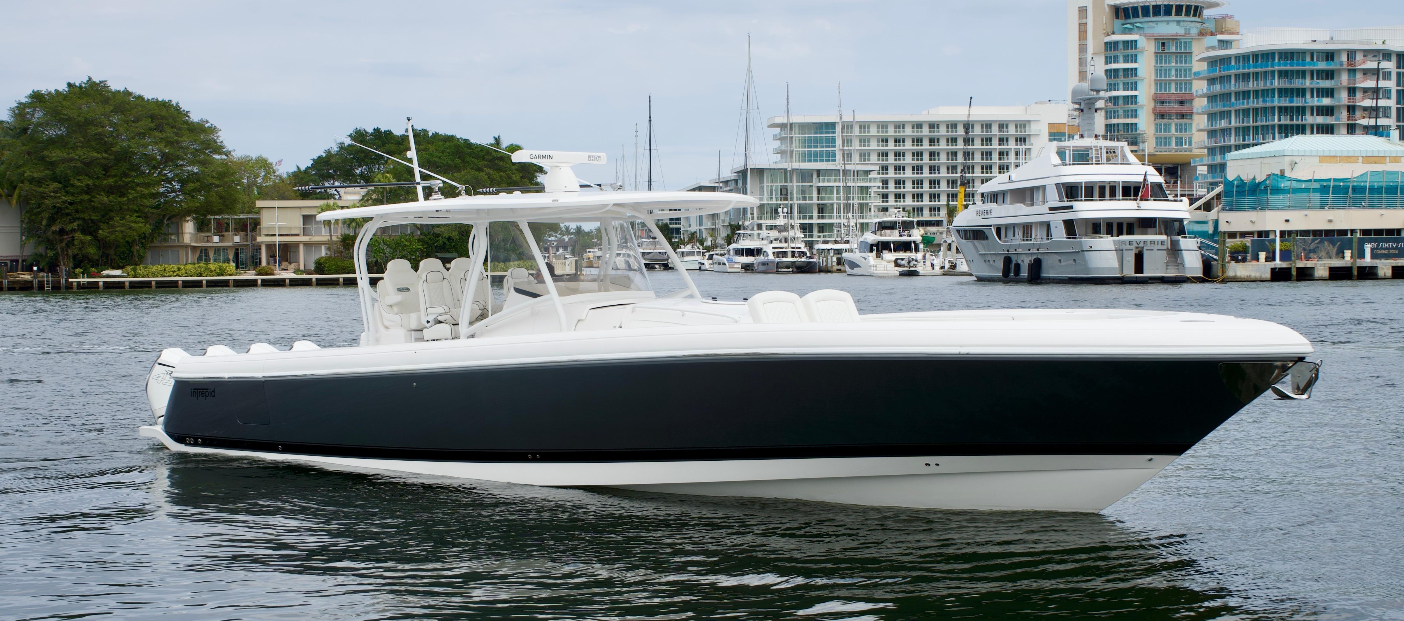 No one loves a challenge more than Intrepid. So when we heard boaters wanted a world-class cruising experience, premier fishability and exquisite entertaining capabilities, we set out to solve it. The result is the 475 Panacea. A sure-footed, wave-crushing cruising experience with luxurious overnight accommodations but yet remarkably versatile. It’s perfectly crafted to battle a 400lb marlin. Or if you prefer to see one face to face, it’s ideal for diving into the depths below to experience them firsthand. The helm features a state-of-the-art platform for electronics, fold-down armrests, footrests, LED lighting and a convenient cooler. An expansive cockpit features rear seating, fish boxes and storage lockers. And an oversized sunpad and wraparound forward seating create a VIP lounge that converts to an al fresco dining area. Below, you’ll find a roomy head with a shower, vanity and sink, a galley with hard surface countertops, refrigerator, sink and high-end cabinetry and a spacious V-berth for luxurious accommodations. The 475 Panacea is pure elegance with a refreshing dose of versatility built in.