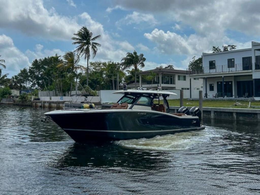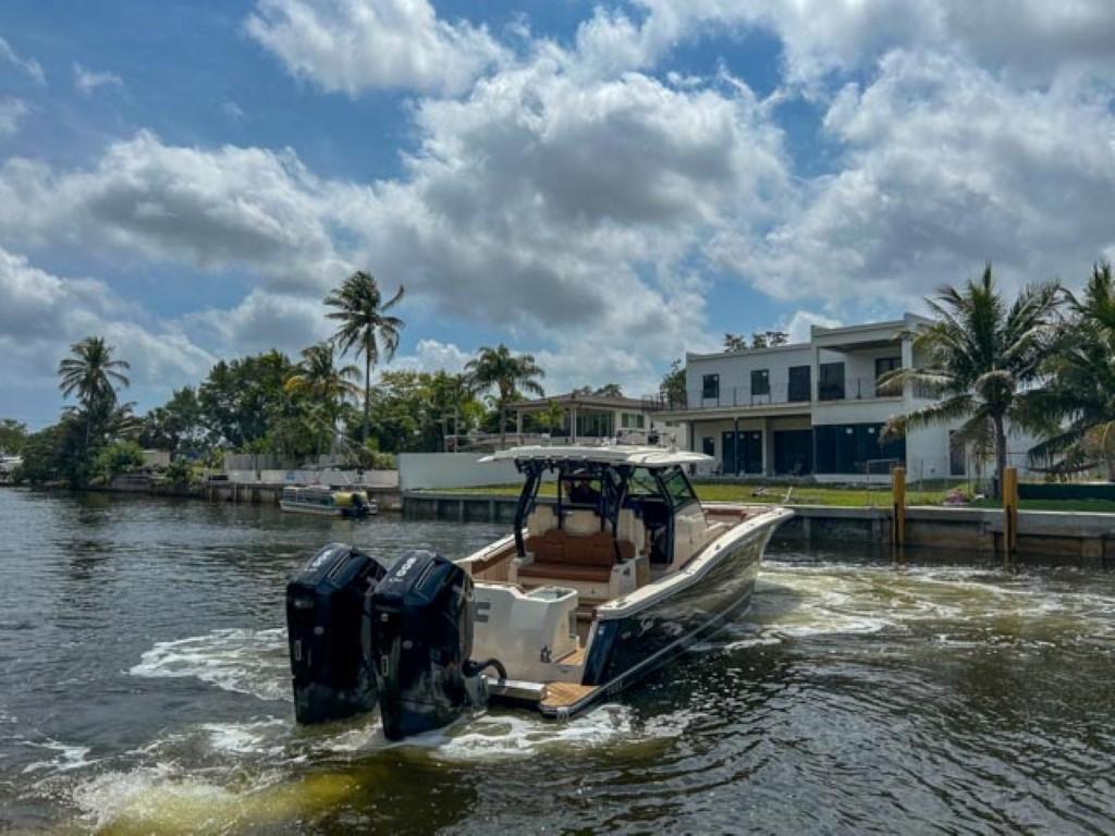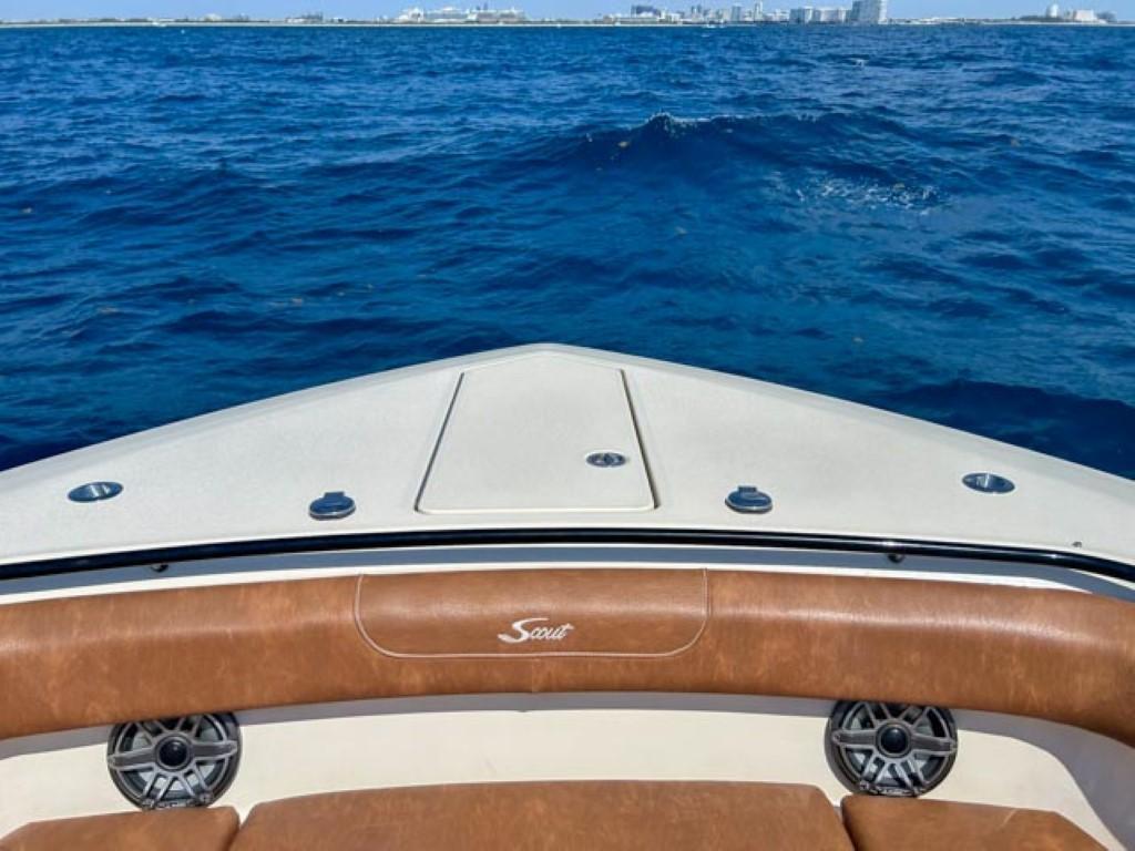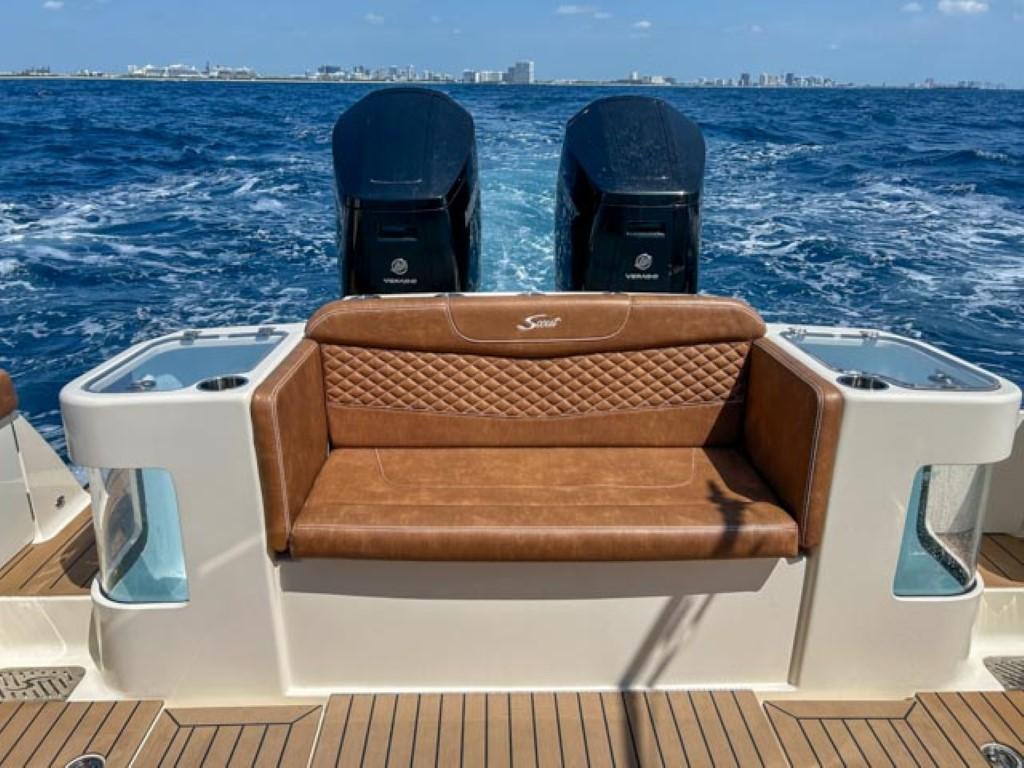Available In Store: Fort LauderdaleScout 400 LXFTwin Mercury 600Hp The 400 LXF is a groundbreaking new model, representing a pinnacle of innovation. Meticulously designed and crafted, it seamlessly combines cutting-edge technology, exceptional performance, and luxurious styling. While it comes fully loaded with impressive standard features like the SeaKeeper Gyro Stabilizer, it's the award-winning optional upgrades that truly set it apart. Features such as the patented electronically-actuated articulating rocket launchers and the convertible leaning post with a Kenyon grill, sink, and cutting board elevate this model to unmatched levels within its class. Additionally, the standard hydraulic port side beach platform with synthetic teak adds another layer of sophistication and functionality, transforming it into more than just a remarkable boat—it becomes an extraordinary experience.