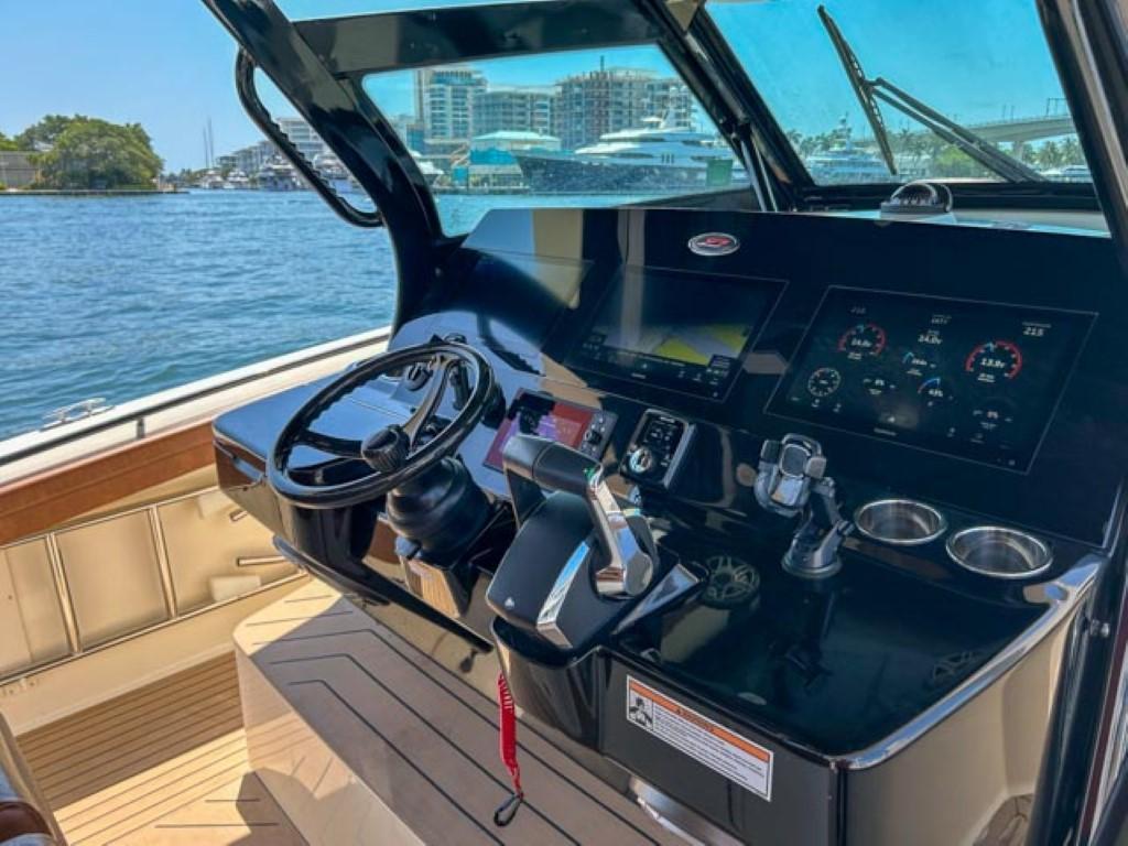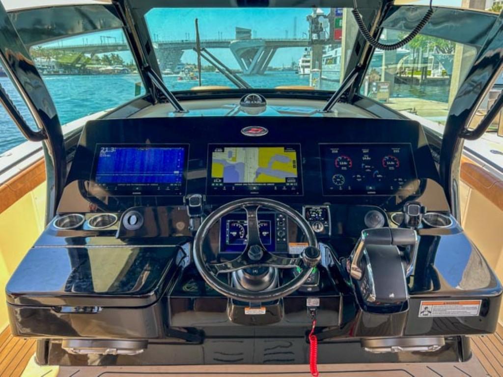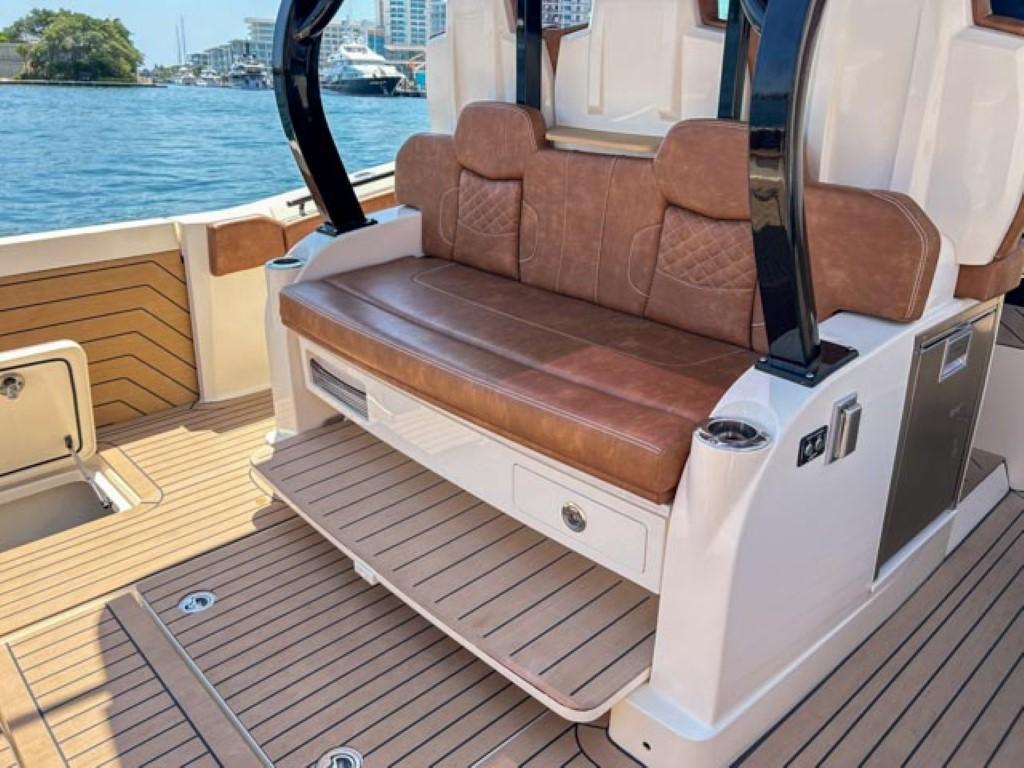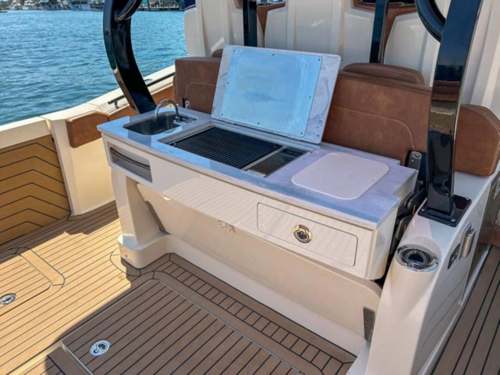 Available In Store: Fort LauderdaleScout 400 LXFTwin Mercury 600Hp The 400 LXF is a groundbreaking new model, representing a pinnacle of innovation. Meticulously designed and crafted, it seamlessly combines cutting-edge technology, exceptional performance, and luxurious styling. While it comes fully loaded with impressive standard features like the SeaKeeper Gyro Stabilizer, it's the award-winning optional upgrades that truly set it apart. Features such as the patented electronically-actuated articulating rocket launchers and the convertible leaning post with a Kenyon grill, sink, and cutting board elevate this model to unmatched levels within its class. Additionally, the standard hydraulic port side beach platform with synthetic teak adds another layer of sophistication and functionality, transforming it into more than just a remarkable boat—it becomes an extraordinary experience.