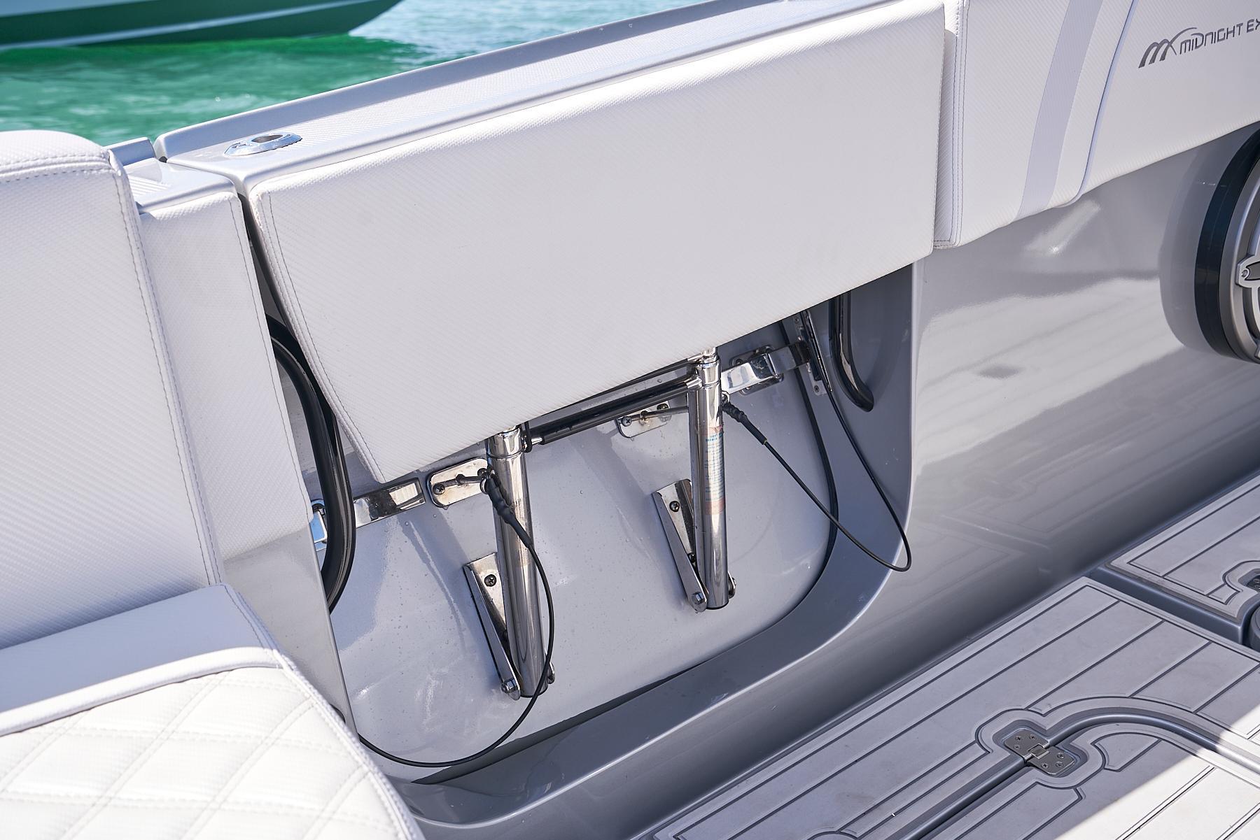 BOAT DESCRIPTIONThis 2020 37' Open Midnight Express with quad 450R Mercury Racing motors is ready for it's new owner just in time for summer.CUSTOM OPTIONS INCLUDE 2020 37' Midnight Express with quad 450R Mercury Racing motors Hull and Top optionsPainted Hullside4 - Custom Painted MotorsPainted Console to Match HullCarbon Fiber Side Entry Dive Door with Fold Down LadderInsulated Rear Livewell(s)Low Split Bow Rail5 - Extra rod holders mounted on topUpgraded to Carbon Fiber Hard Top with Recessed LightingPainted underside of hard topUpgraded Upholstery (Head Rests, Cross Stitch)Foam Decking in Cockpit, Console and TransomSeating Aft-U-Lounge aft seat w\ storage and fiberglass base Forward-Forward Stylized Fiberglass U-seatElectric Fiberglass Table to convert into Sunpad/ Table/ Flush into FloorHelmStandard Helm Seat w/ Aft Facing SeatMisc. Options \ ElectronicsAnchor windlass system w\ 300' line, 10' galvanized chain and 22lb polished stainless steel anchor, and custom polished stainless steel anchor roller system and remote mounted on dashBow thruster mounted with rocker switch control mounted on dashIsinglass down either side of Console blocking wind from WalkwaysElectronics GARMIN GPS OPTIONS-2 - Garmin 8617 Chartplotter Flush MountedDepthsounder for Garmin Chartplotter with GSD24 and 1k ducer (in hull)4kw HD Dome Radar for Garmin ChartplotterOTHER ELECTRONICSCarbon Fiber Dash PanelGlove box on dash with USBLED spotlight mounted on top with remote point pad on dashPremium JL sound system with 8.8's speakers in cockpit, (4) 12" sub woofers, MP3 Player Dock, 3 amplifiers, AV650 DVD Player, and BluetoothTrumpet AirhornLED Under water lights mounted in transom