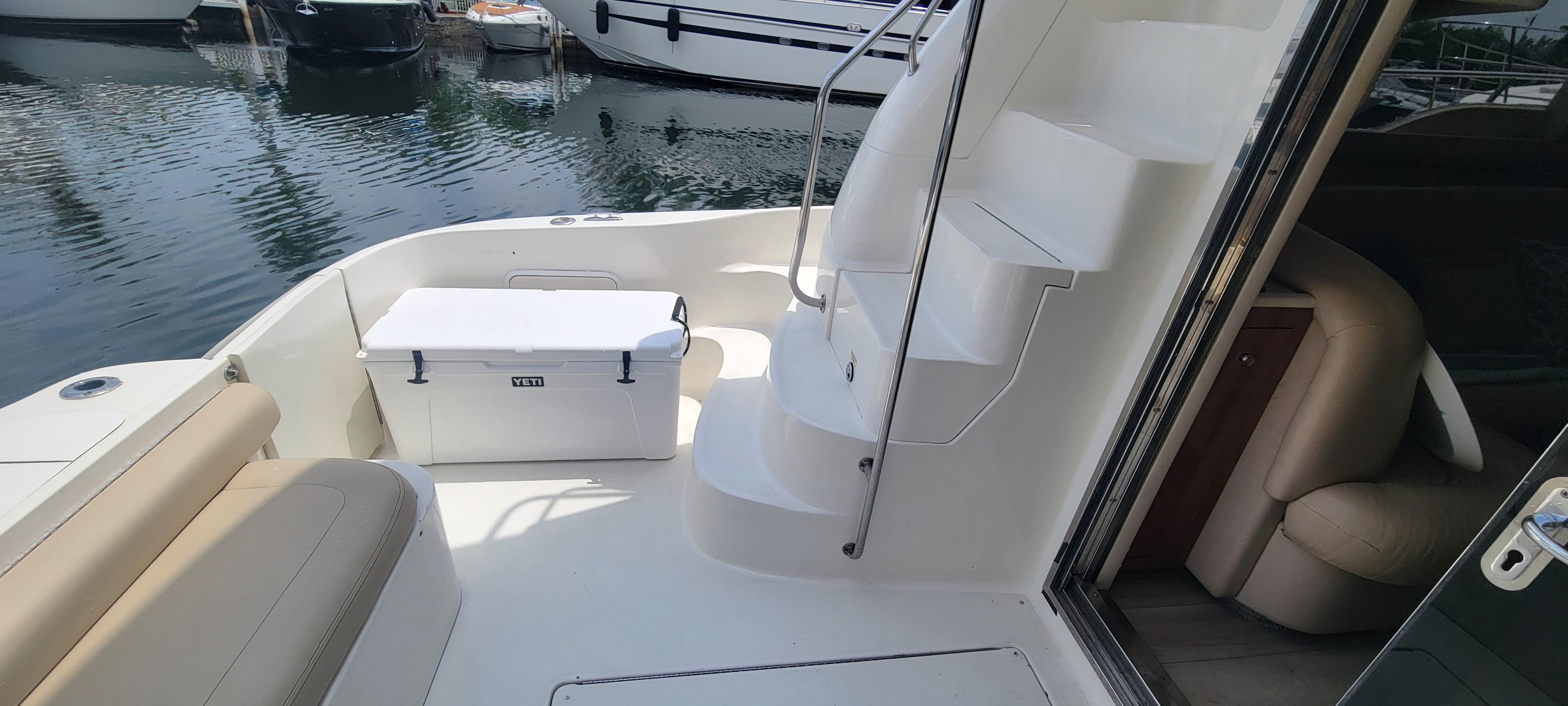 Her beautiful lines may be the first thing you notice about the 480 Sedan Bridge. But under that elegant demeanor beats the heart of a large beast - or rather, two large beasts - twin 640 hp QSM-11 Cummins engines. She's equally impressive inside, with three private staterooms, two full heads, three entertainment centers and sleeping accommodations for many people.