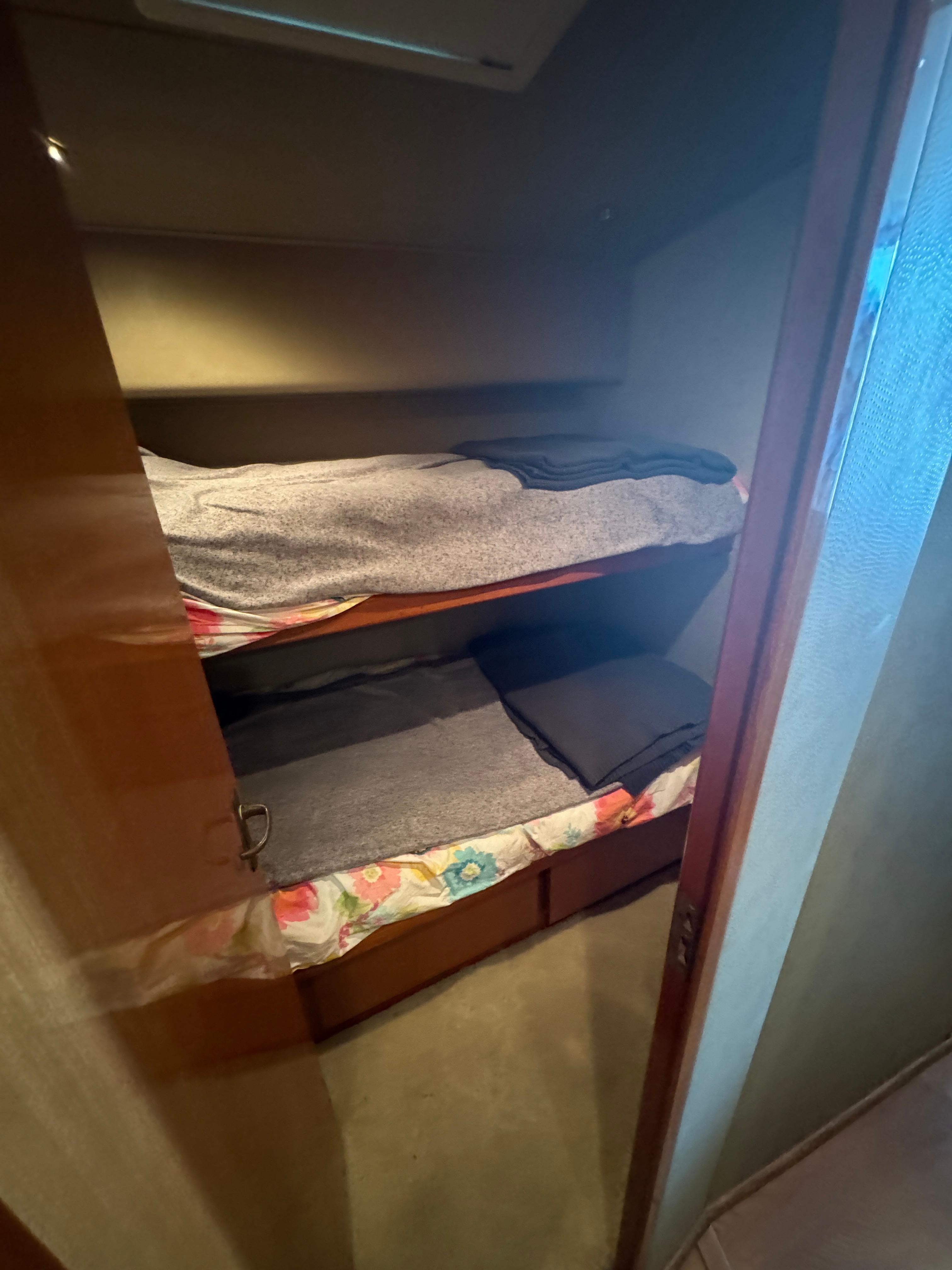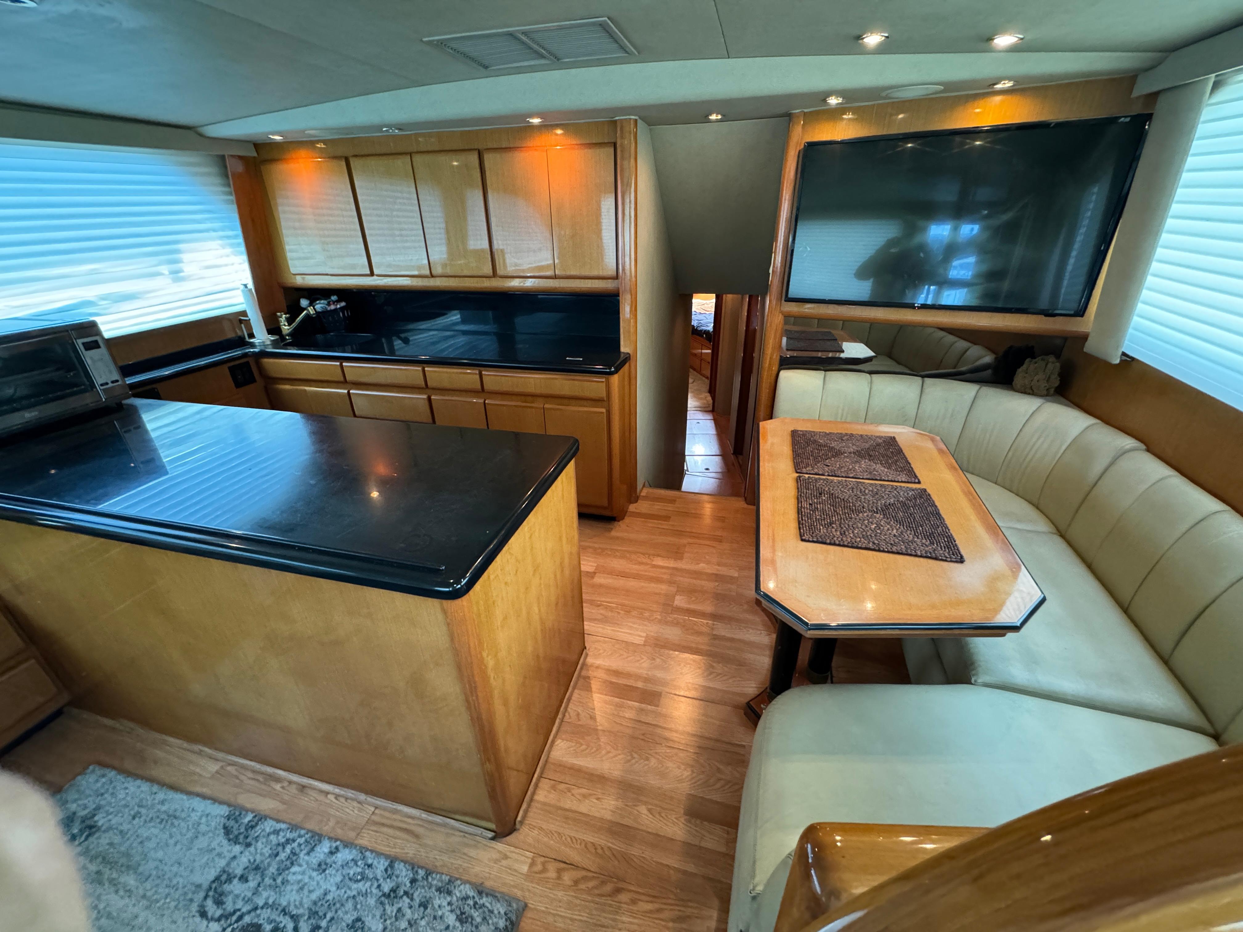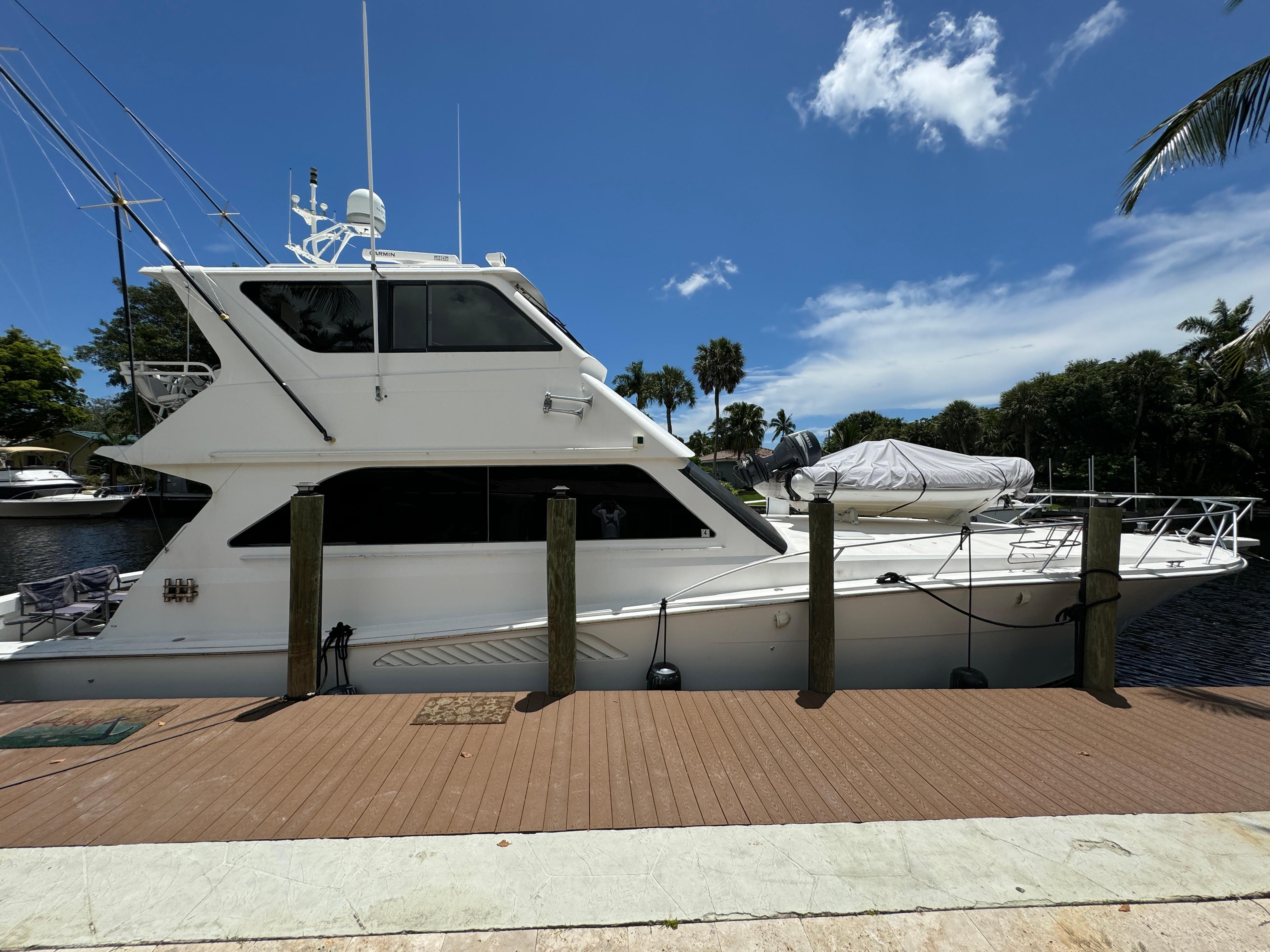 Priced to sell! This 58 Enclosed has internal Stairs and has all-new Garmin electronics. The owner has updated many items but it does need Hull paint and additional cosmetics. Whiskey Business is one of the least expensive enclosed 58's available. Owner has updated Garmin Electronics including Radar, Autopilot, FLIR, bow thruster, updated plumbing, and has spent a lot on engines. Tender is 2008 15ft with 60 Hp Yamaha, (tubes redone in 2022) Priced for a quick sale. Buyer will consider newer center console. Easy to see in Ft. Lauderdale, call for details.AccommodationsThree stateroom, three-bath layout.Master Stateroom midship to port with island queen bed and ensuite bath.Forward VIP stateroom with double bed to starboard and single bunk to portAft guest stateroom on starboard side of companionway, midship with over and under bunksUPDATES All plumbing for baths new in 2022 and AC pumps and handlers new in 2023Twin MAN V12 1200 MAN Diesel Engines 6200 Hours. $125k invested in both engines. Both have had updates and one engine redone. Twin ONAN Generators Injection pumps rebuilt 2023 4 NEW TURBOS 2024 Steering cylinder 20232 fuel Bladders 200 Gallon each with fuel exchange pumpRebuilt Windless Last bottom job 2022Shafts and props ( 2019)