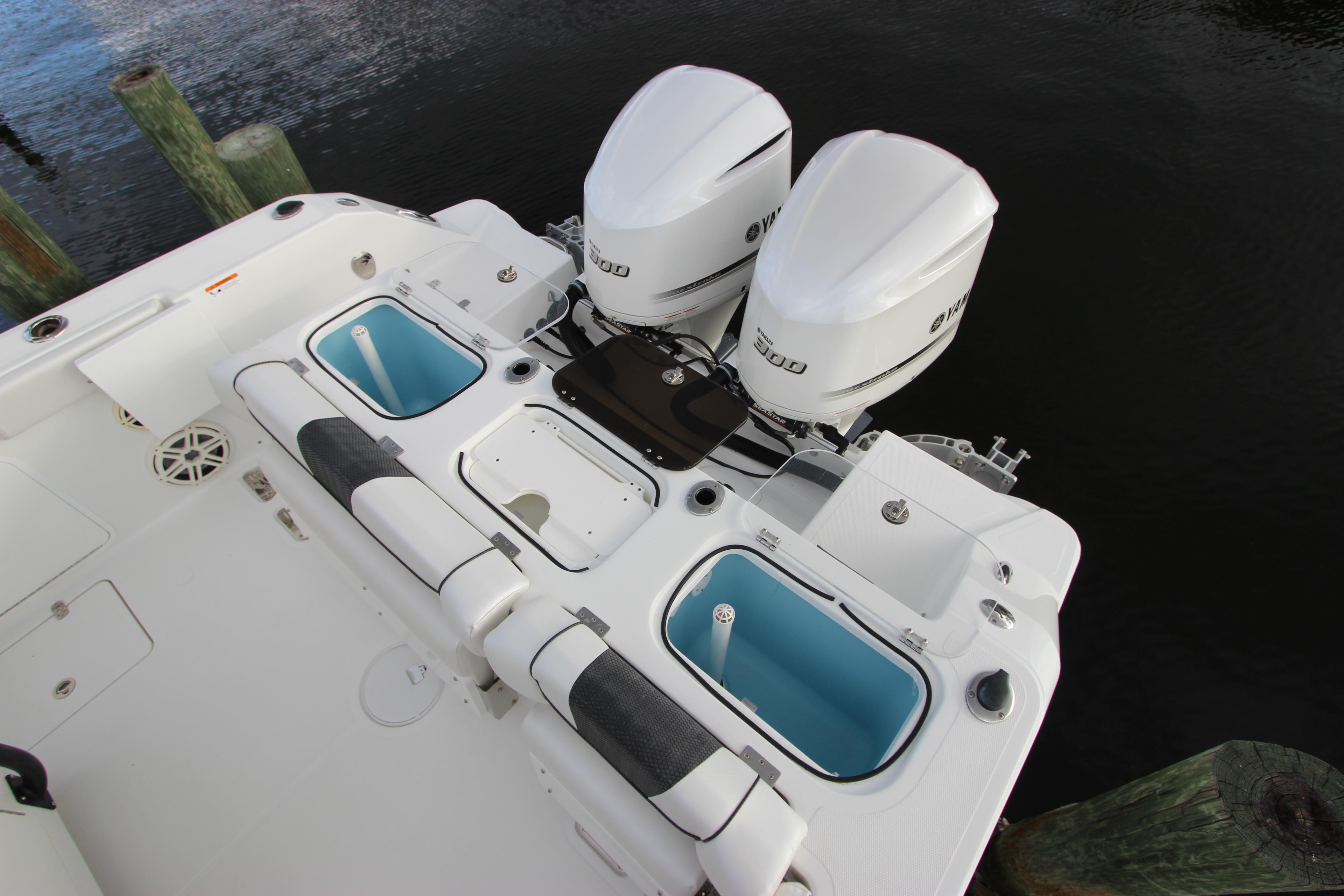 - Storage/fishbox(es), floor w/ macerator and overboard drain