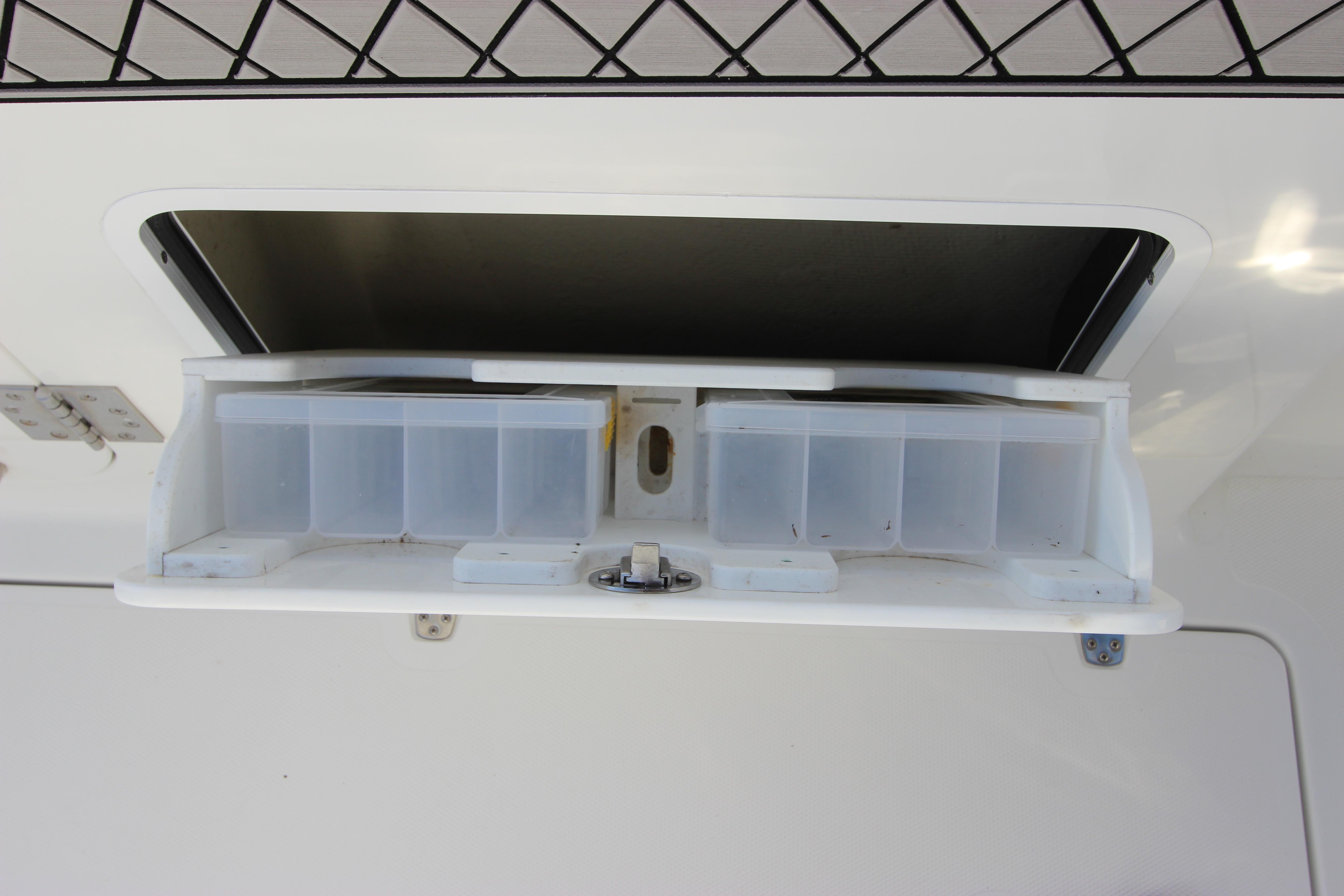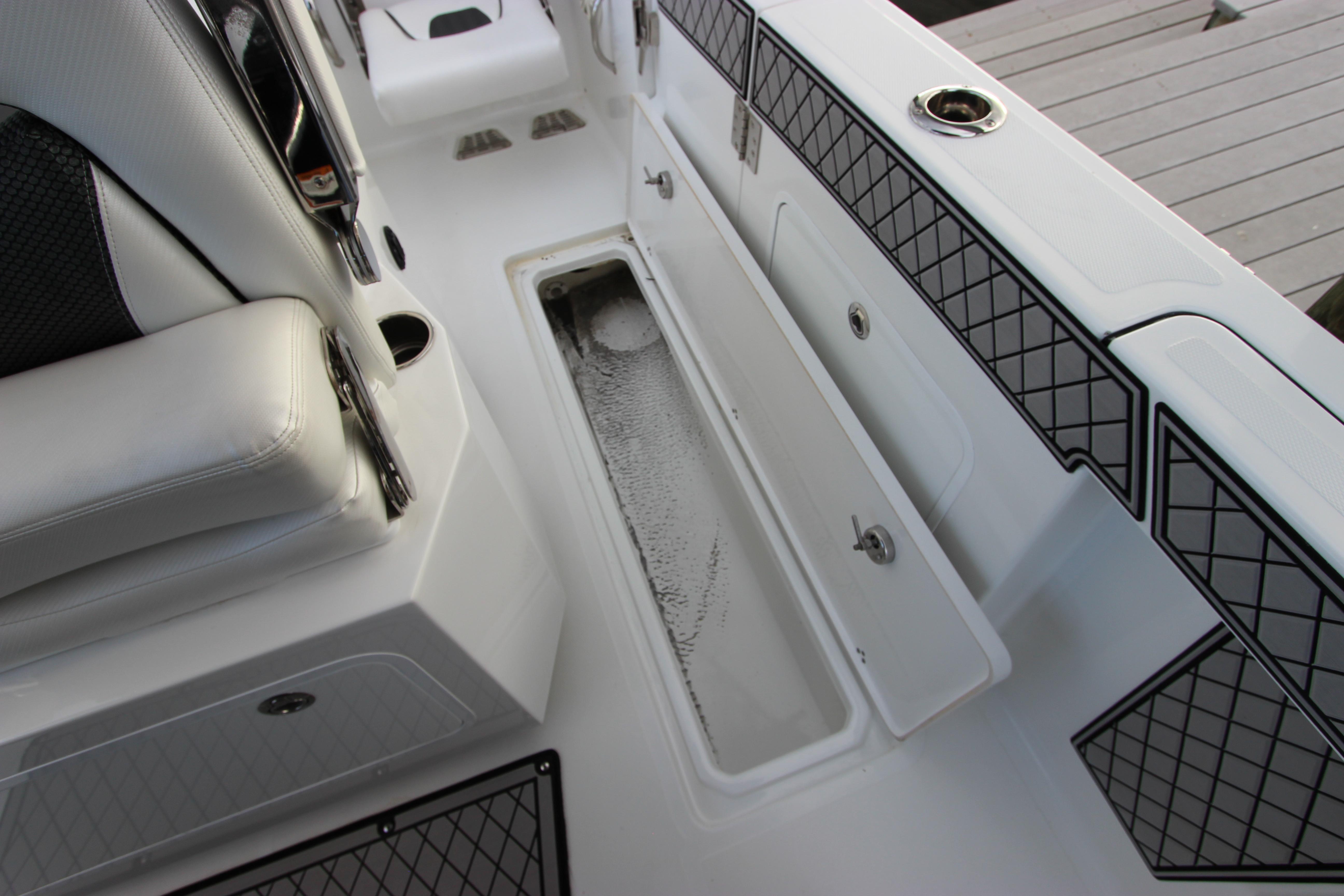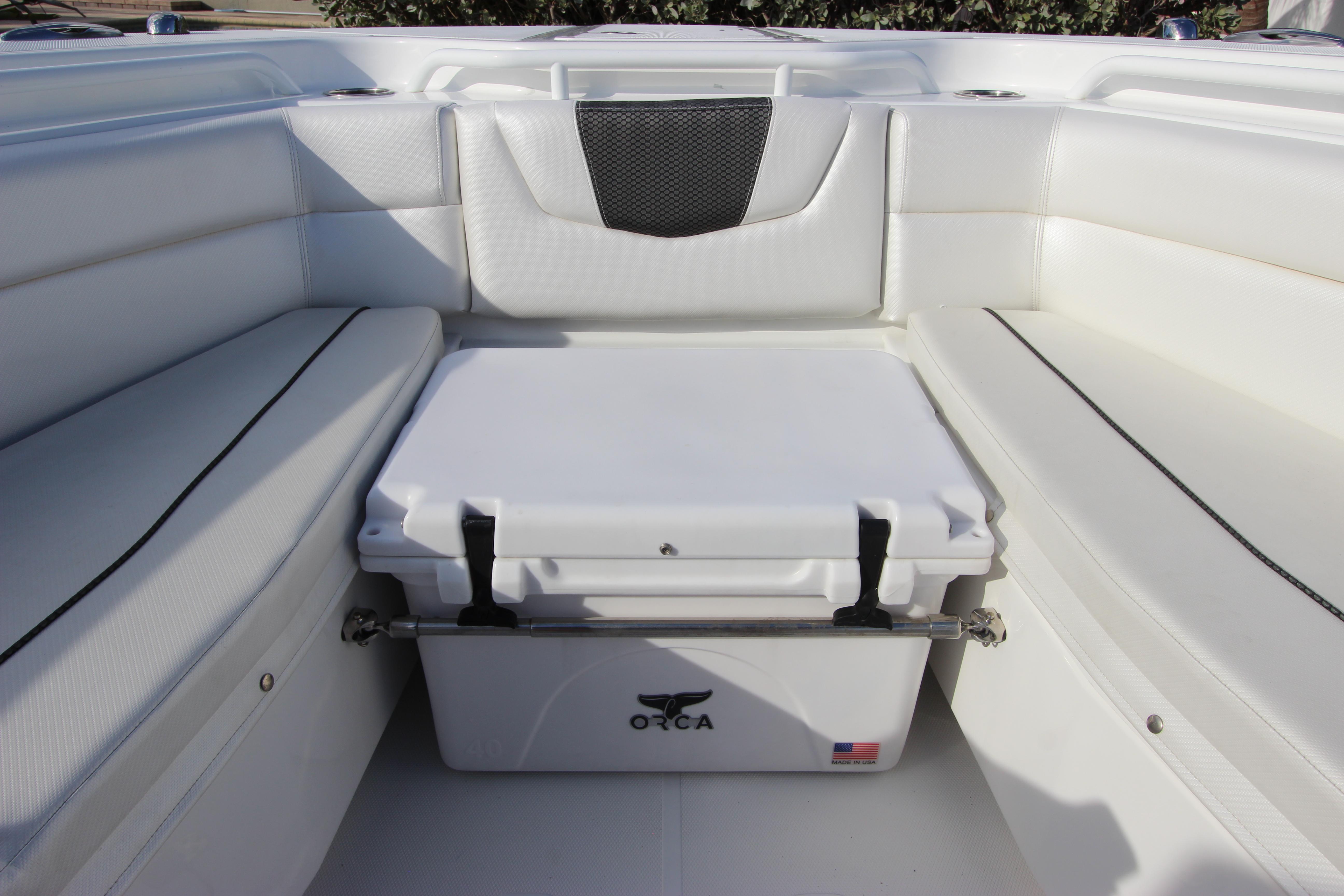 - Cooler, helm seat, carry-on w/ slider & drain-able storage