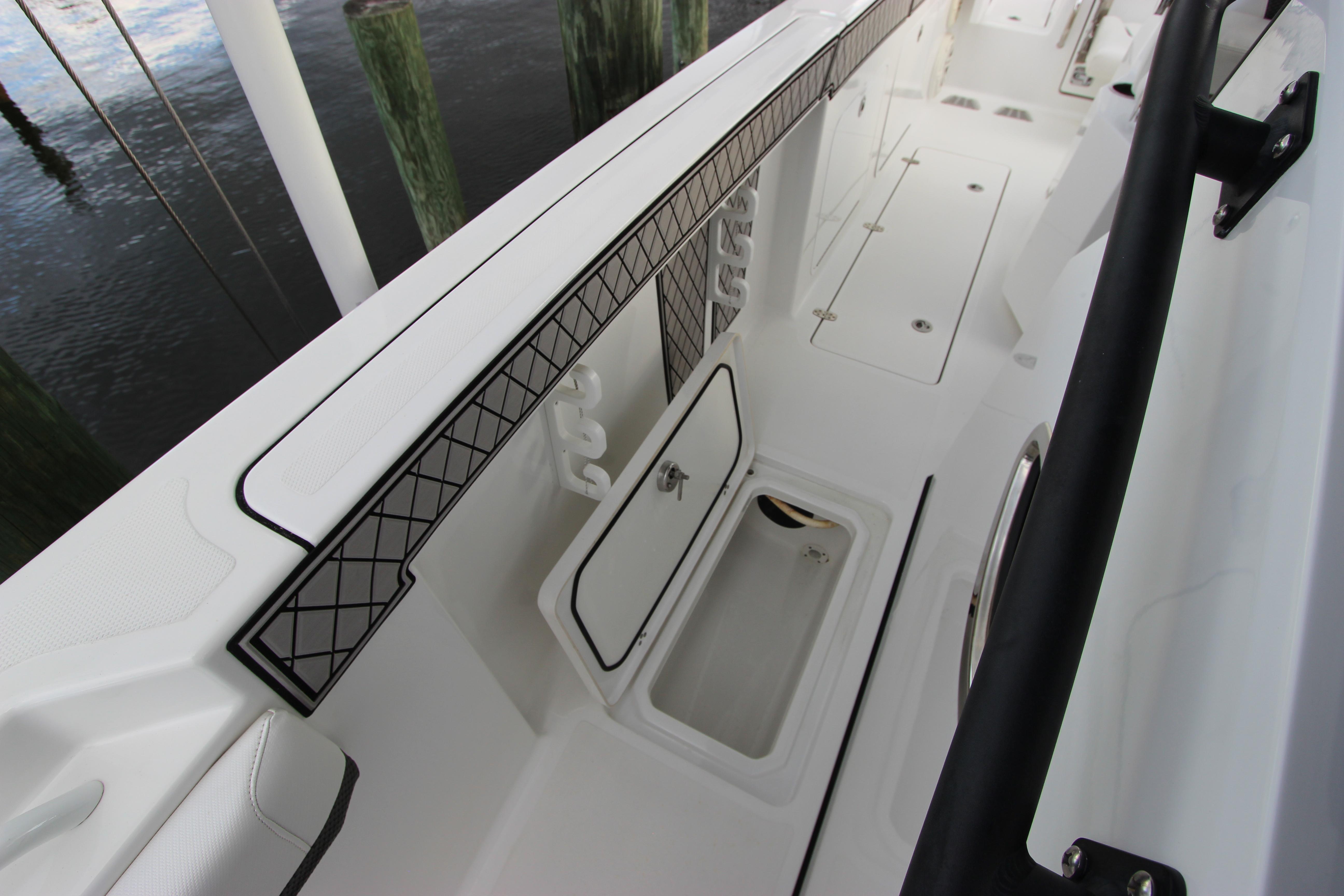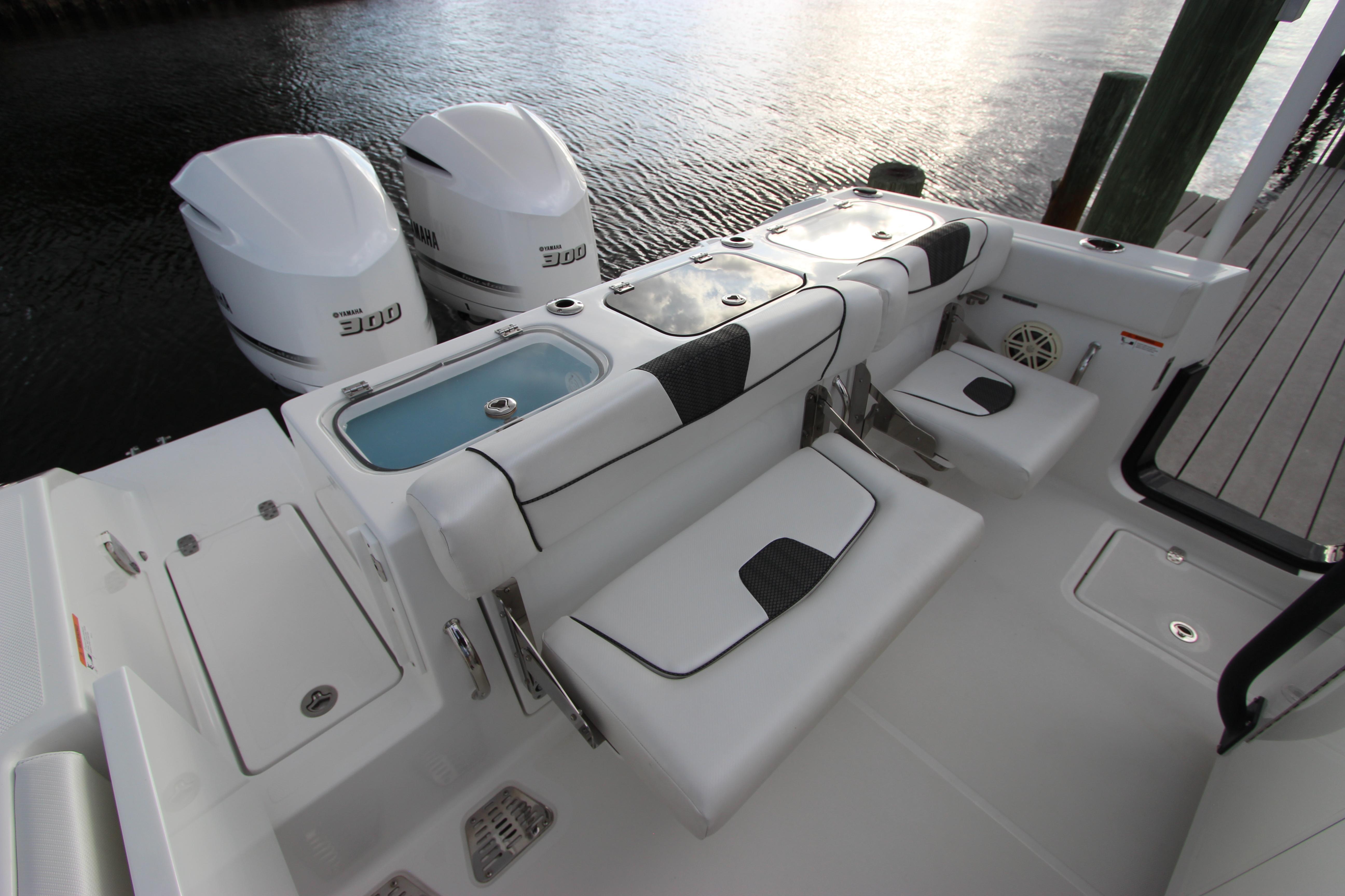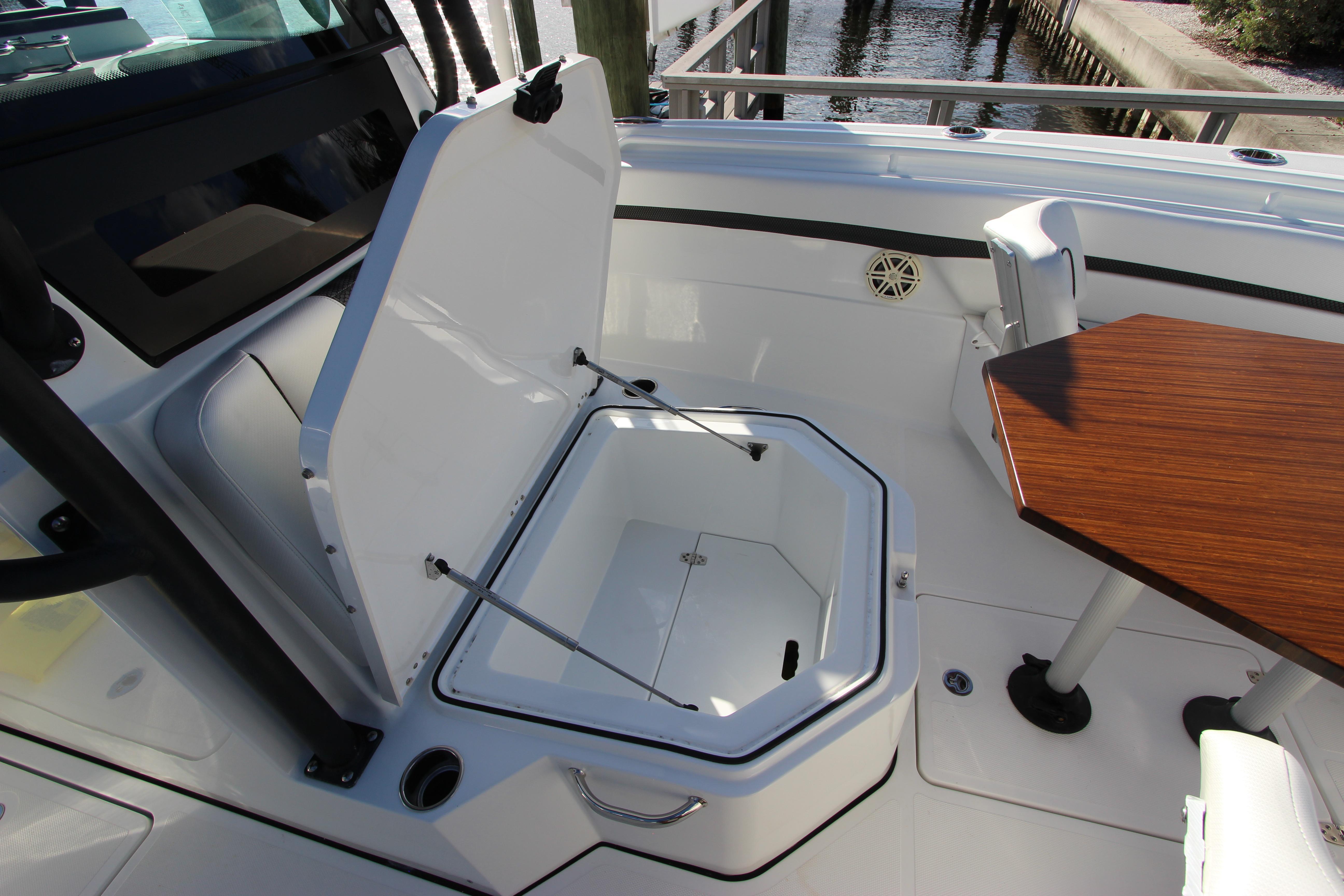 - Cooler, helm seat, carry-on w/ slider & drain-able storage