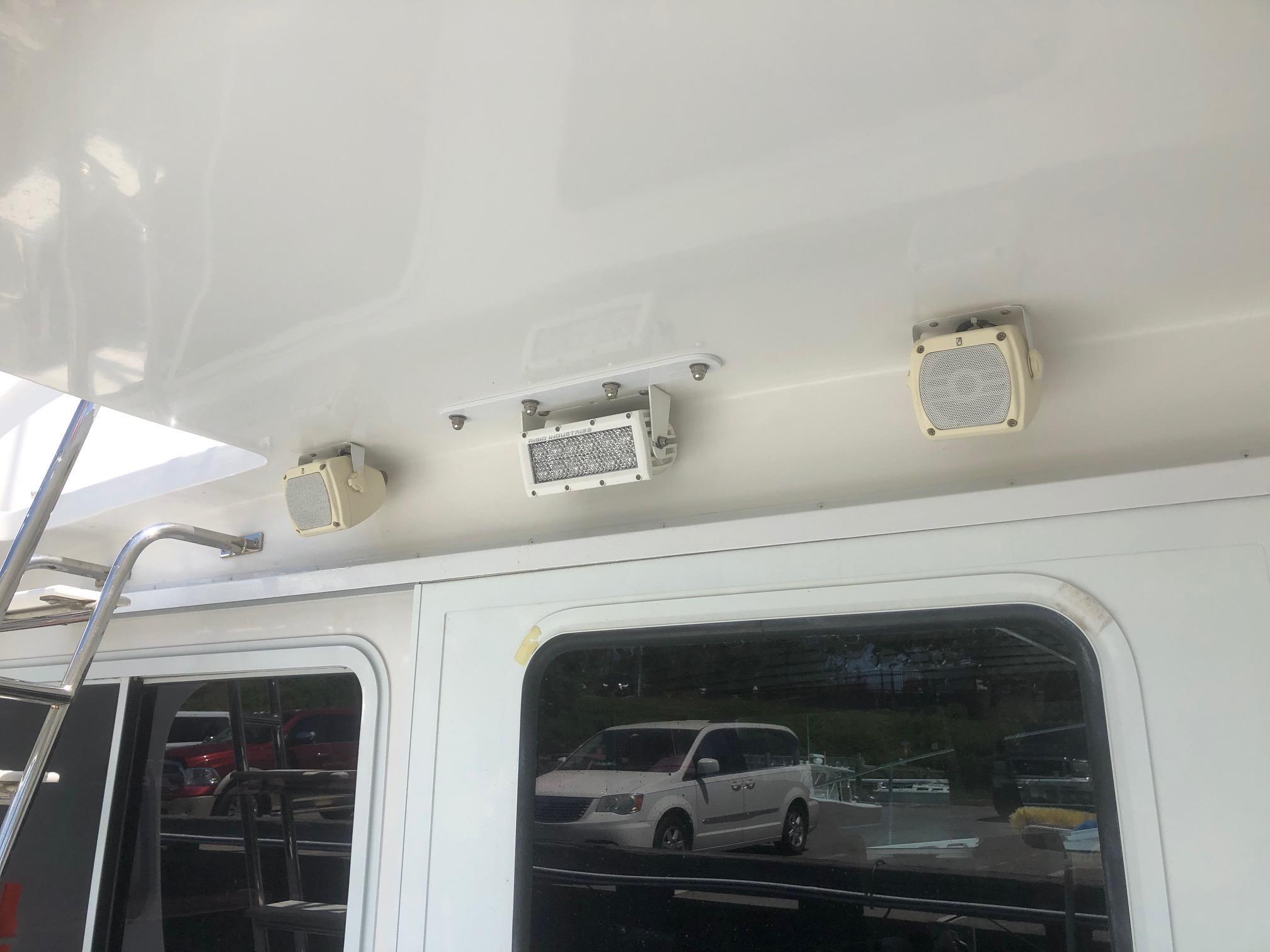 Rigid 12v LED spreader lights in cockpit and on fly bridge railing illuminating cockpit (new 2015)