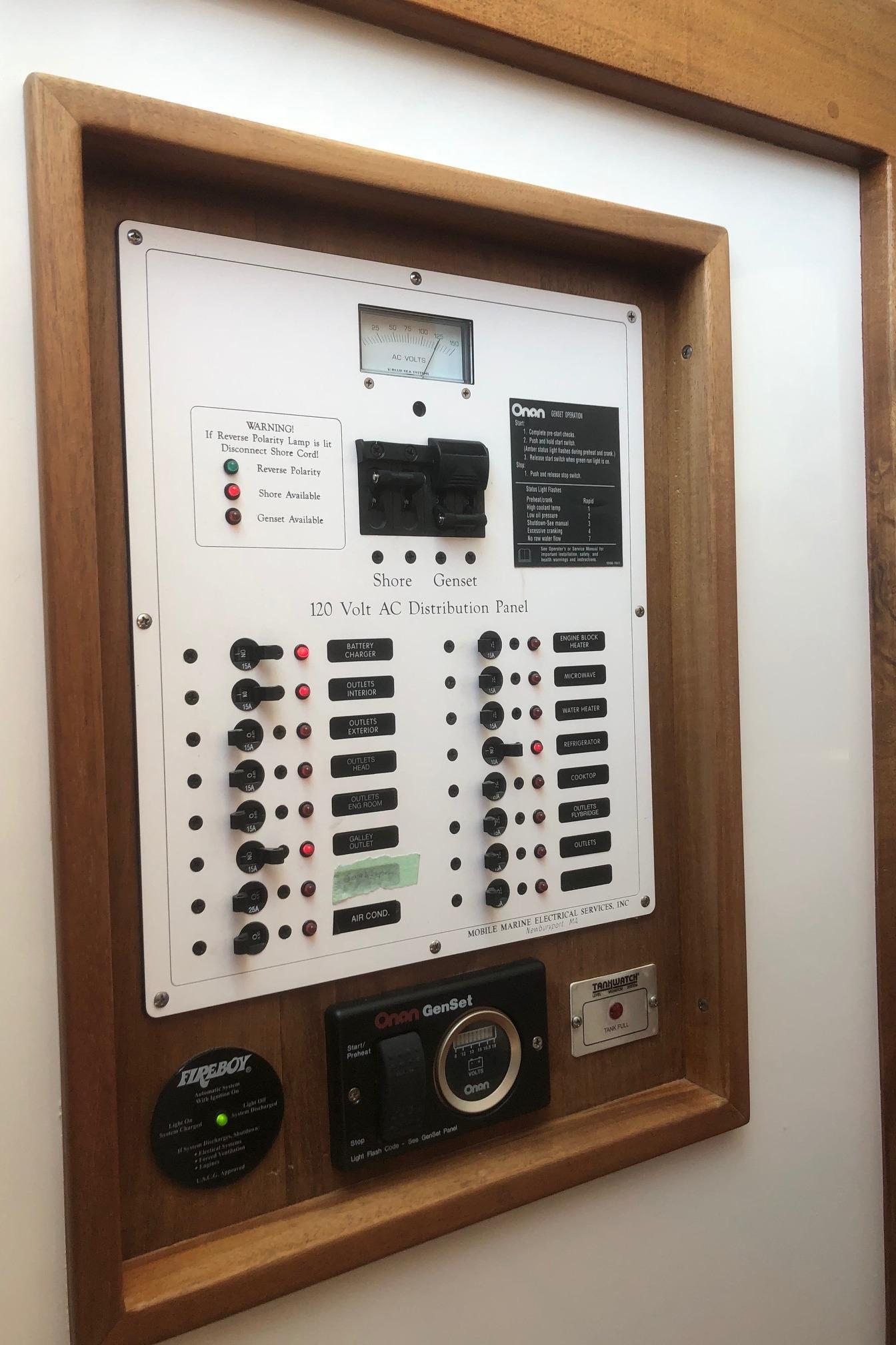 Blue Seas 110v AC electrical panel with shore power/genset switch