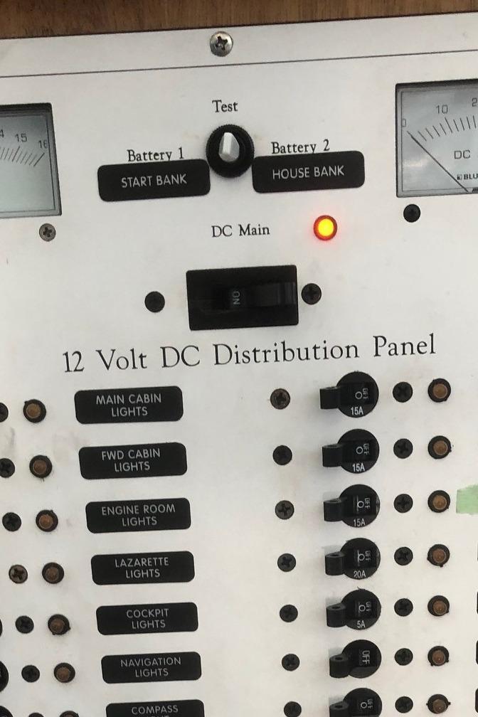 Blue Seas 12v DC electrical panel with battery volt meter and load meter
