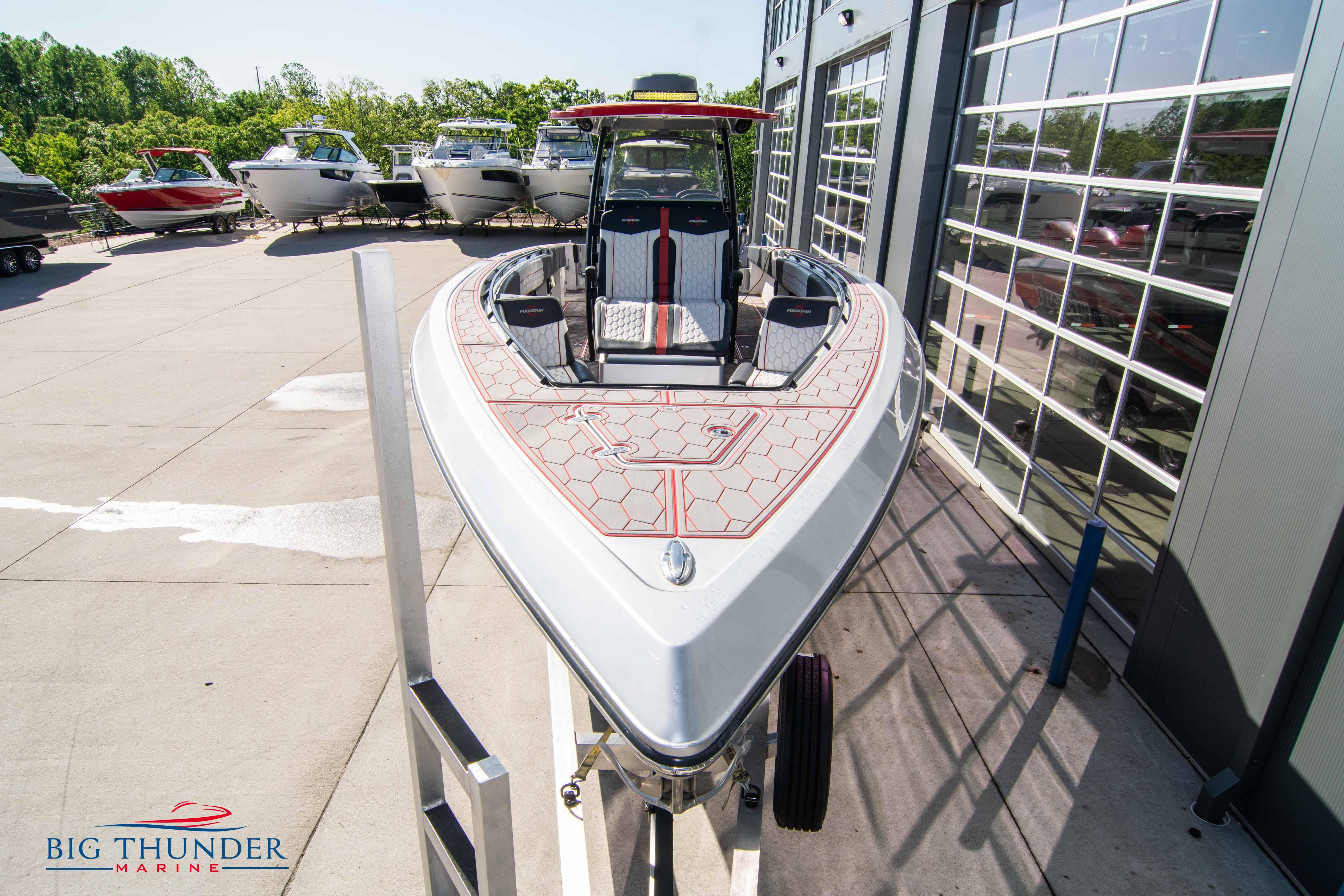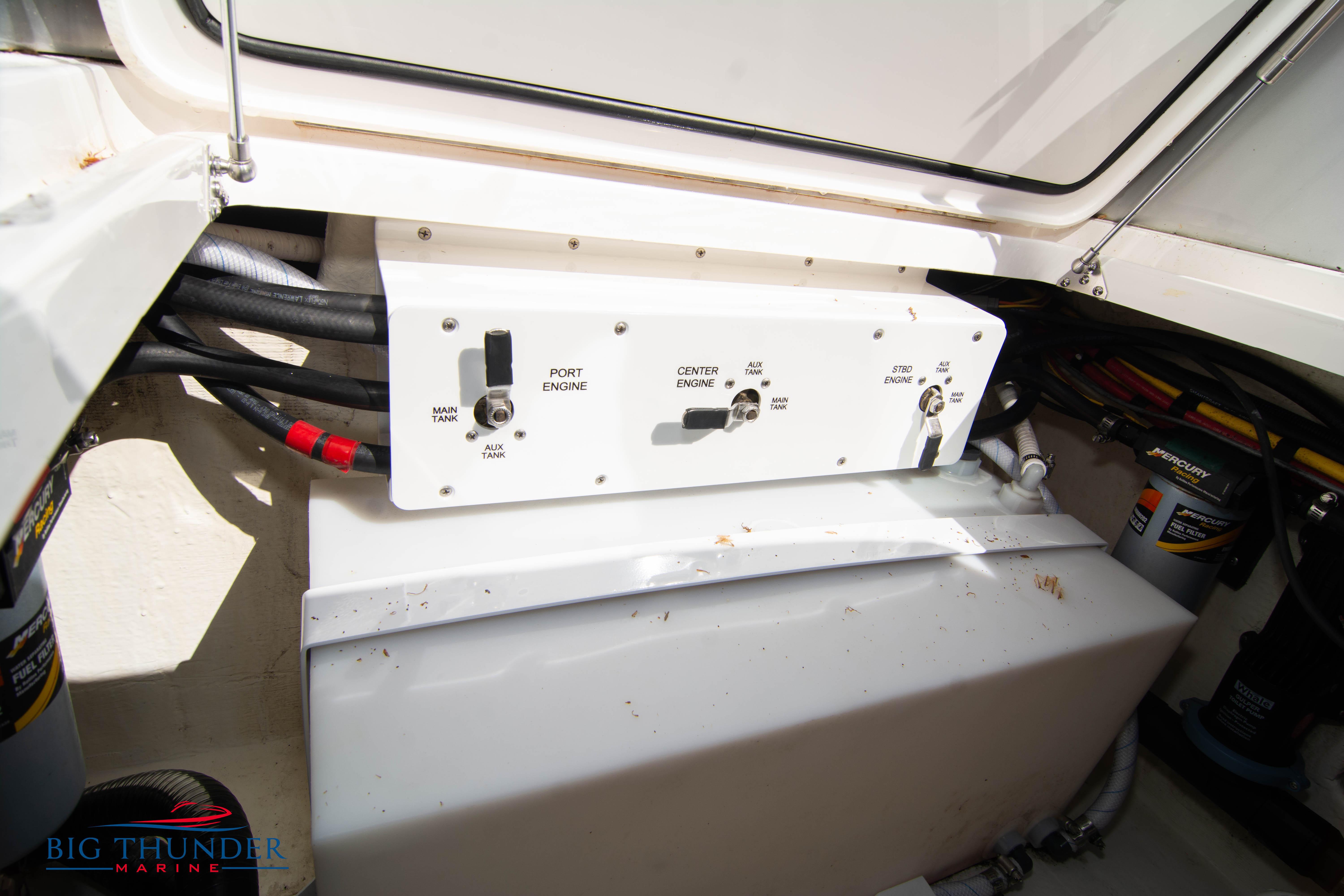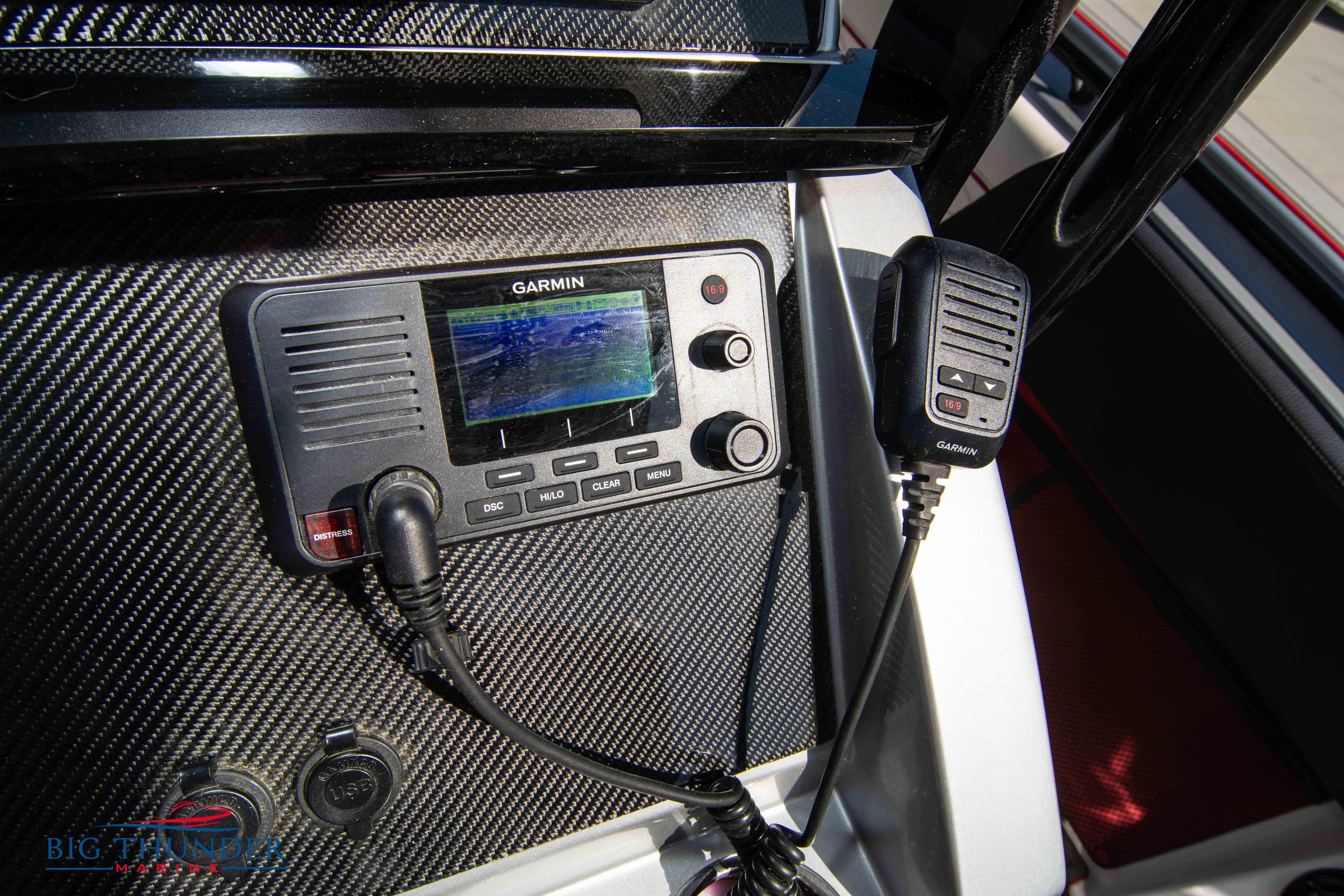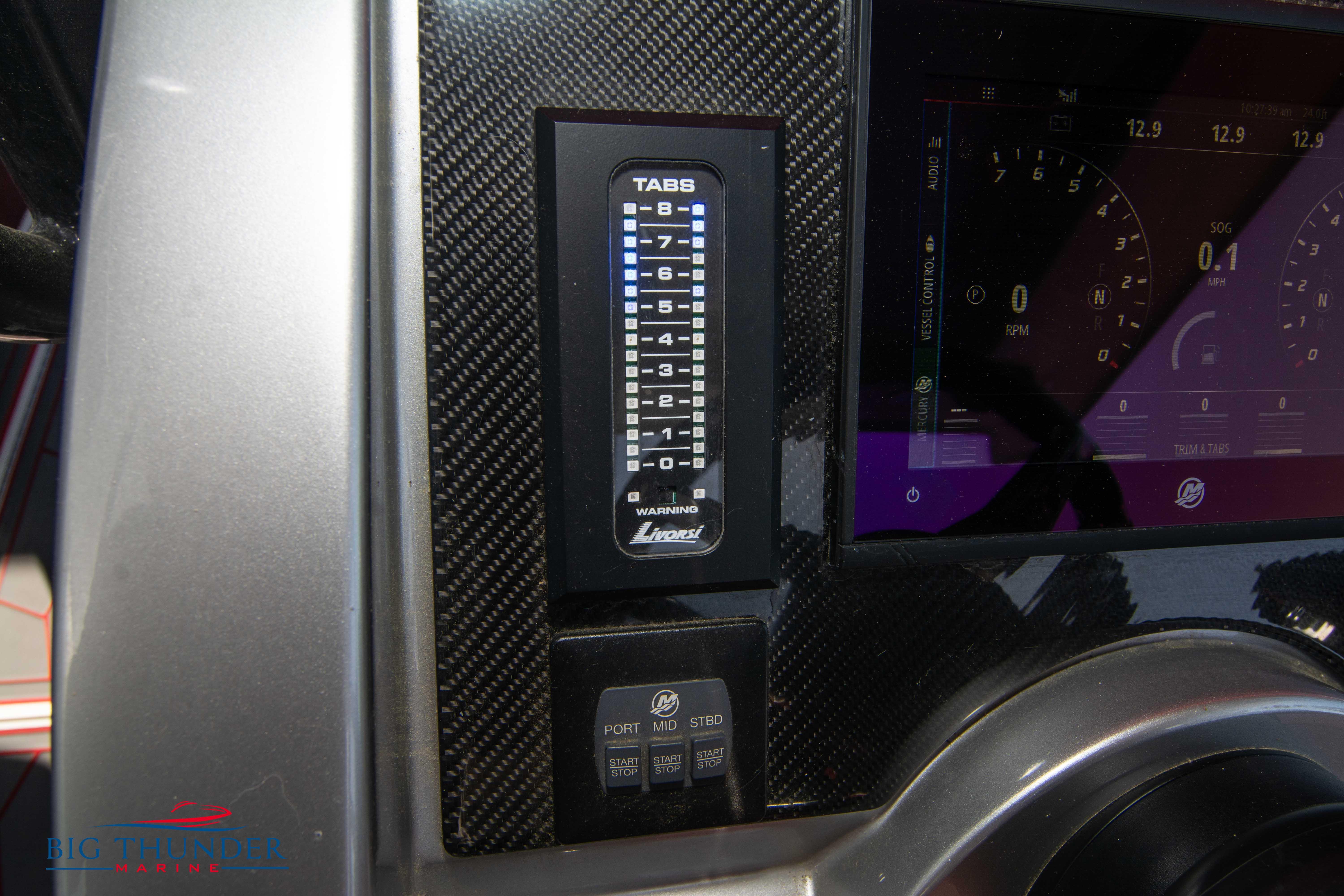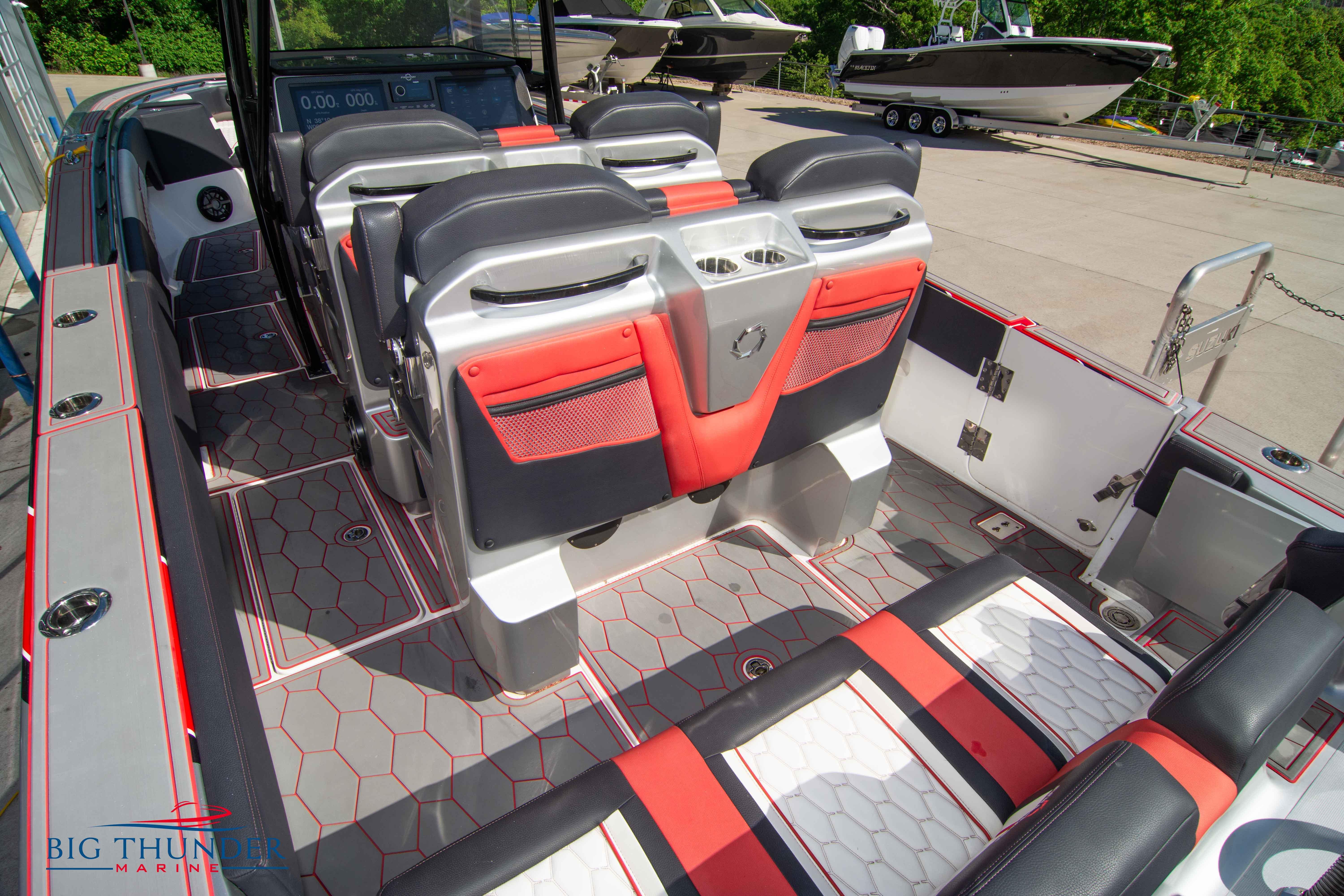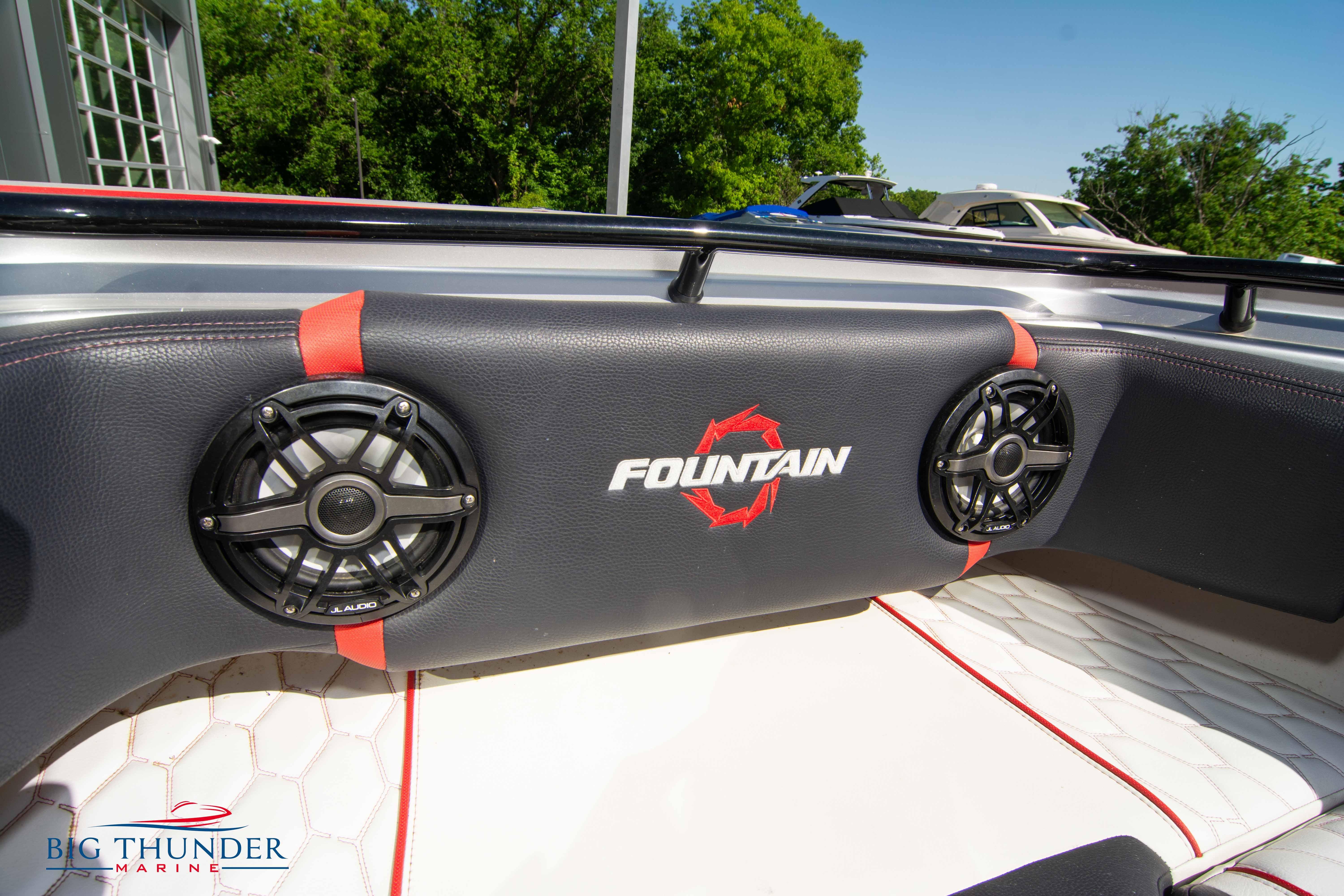 2021 Fountain 38 SC Triple Paint Matched Mercury Racing 450R Verado's (373 hours). Reverso Automatic Engine Flushing System. Custom Paint & Graphics w/ Matching Console, Helm, & T-Top. Hard Top SeaDek Insert. Livorsi 1150 Hydraulic Trim Tabs. Bow Thruster. Thru Hull Anchor Windlass/Rode Kit, Striker Plate, Polished SS Plow, 15’ of 5/16"" Galvanized Chain, 150’ of 5/8"" 8-Strand Braided Rope. Black Cool Touch Interior Vinyl Upholstery w/ White Alpah Quilted Panels, Bright Red Hitch Accents & Piping, White Hex Pattern Stitching & Dark Gray Embroidered Logos. Stitched Sport Leather Steering Wheel. Additional USB Outlet in Dash. Screened Portlight. Starboard Side Cockpit Dive Door w/ Ladder. Shadow-Caster RGB Cockpit & Underwater Lighting Control System. Garmin xHD 24" Dome Radar. Dual GPSMap 8616 16" Displays. Vessel View 903 Engine Monitoring Display. Garmin 215 AIS VHF w/ Antenna. Premium Audio System (Fusion Touchscreen Entertainment Center w/ Built In WiFi, (4) JL 6.5 LED Spkrs., (6) 7.7 LED Spkrs., (2) 8.8 LED Spkrs., (4) 10"" Subs, (2) 600W 6 Ch Amps & (2) 600W Mono Block Amps). (2) Additional 7.7" Bow Speakers w/ Upgraded Amp. Wireless Stereo Remote. Double Row Stand Up Helm Bolsters w/ (2) Additional Subwoofers. Additional 20 Gal. Fresh Water Tank (30 Gal. Total)Trailer not included, new trailer quotes available separate. Financing and nationwide delivery also available, all 2005 and newer model year trades considered. Call for more info and demo scheduling.DisclaimerThe Company offers the details of this vessel in good faith but cannot guarantee or warrant the accuracy of this information nor warrant the condition of the vessel. A buyer should instruct his agents, or his surveyors, to investigate such details as the buyer desires validated. This vessel is offered subject to prior sale, price change, or withdrawal without notice.
