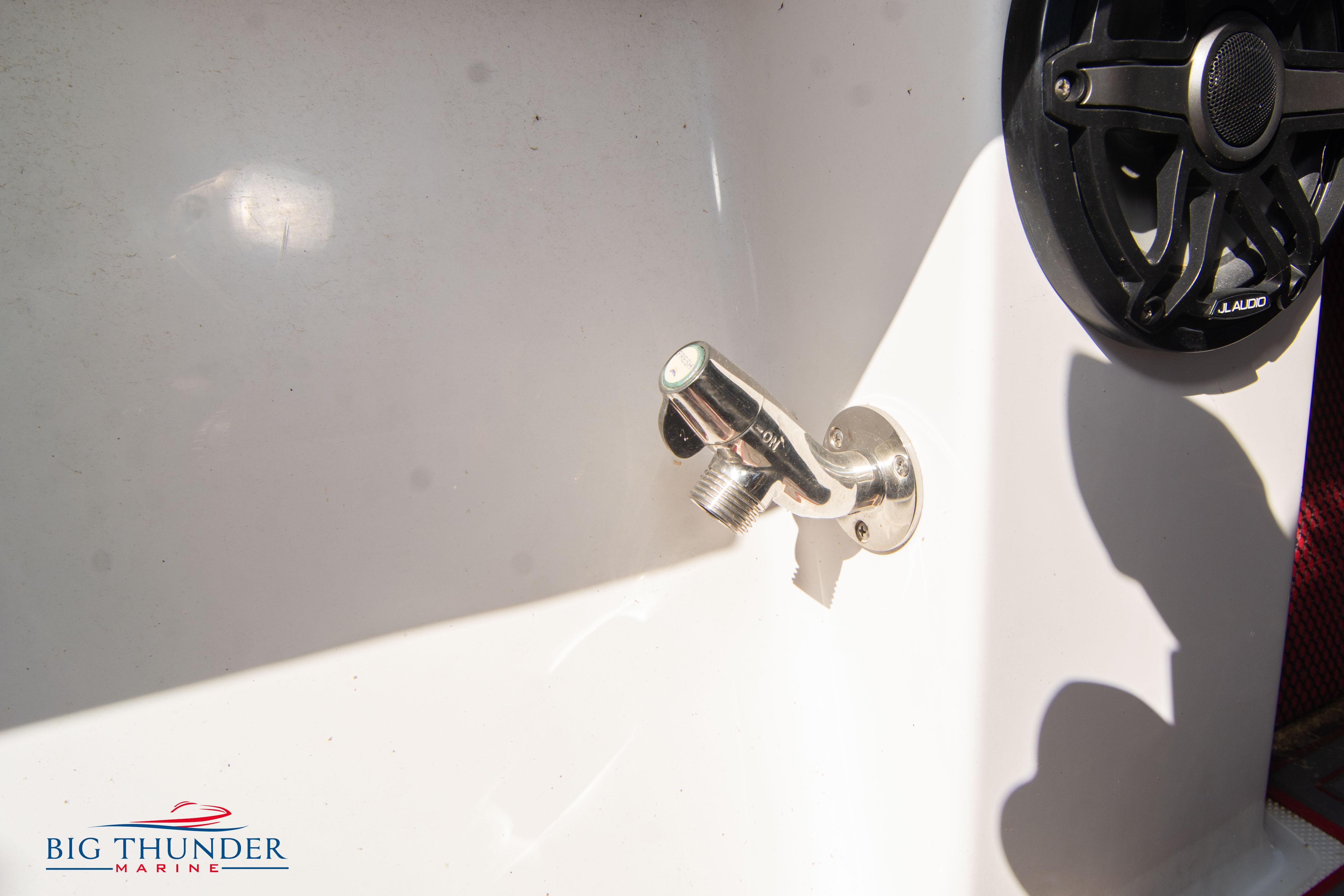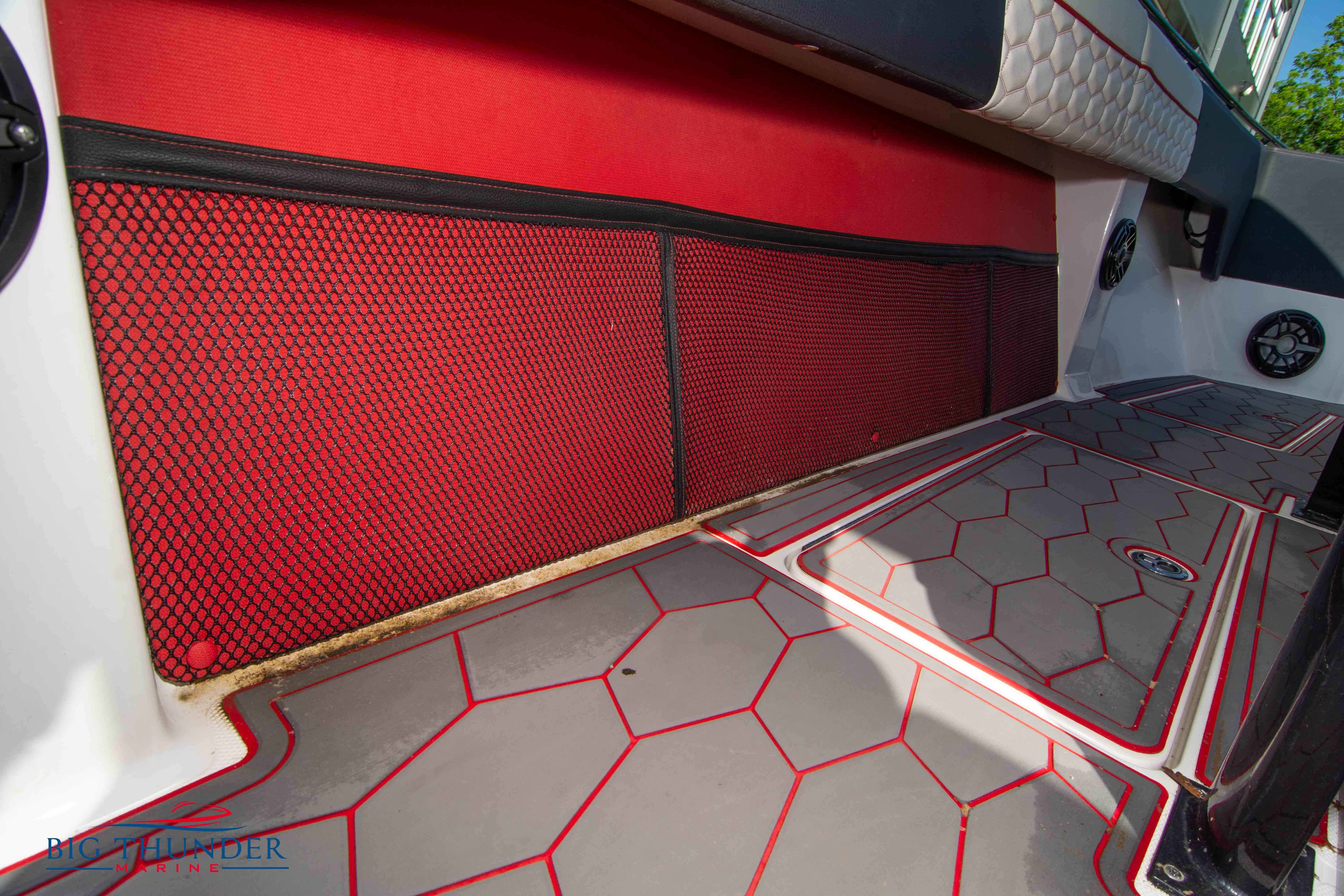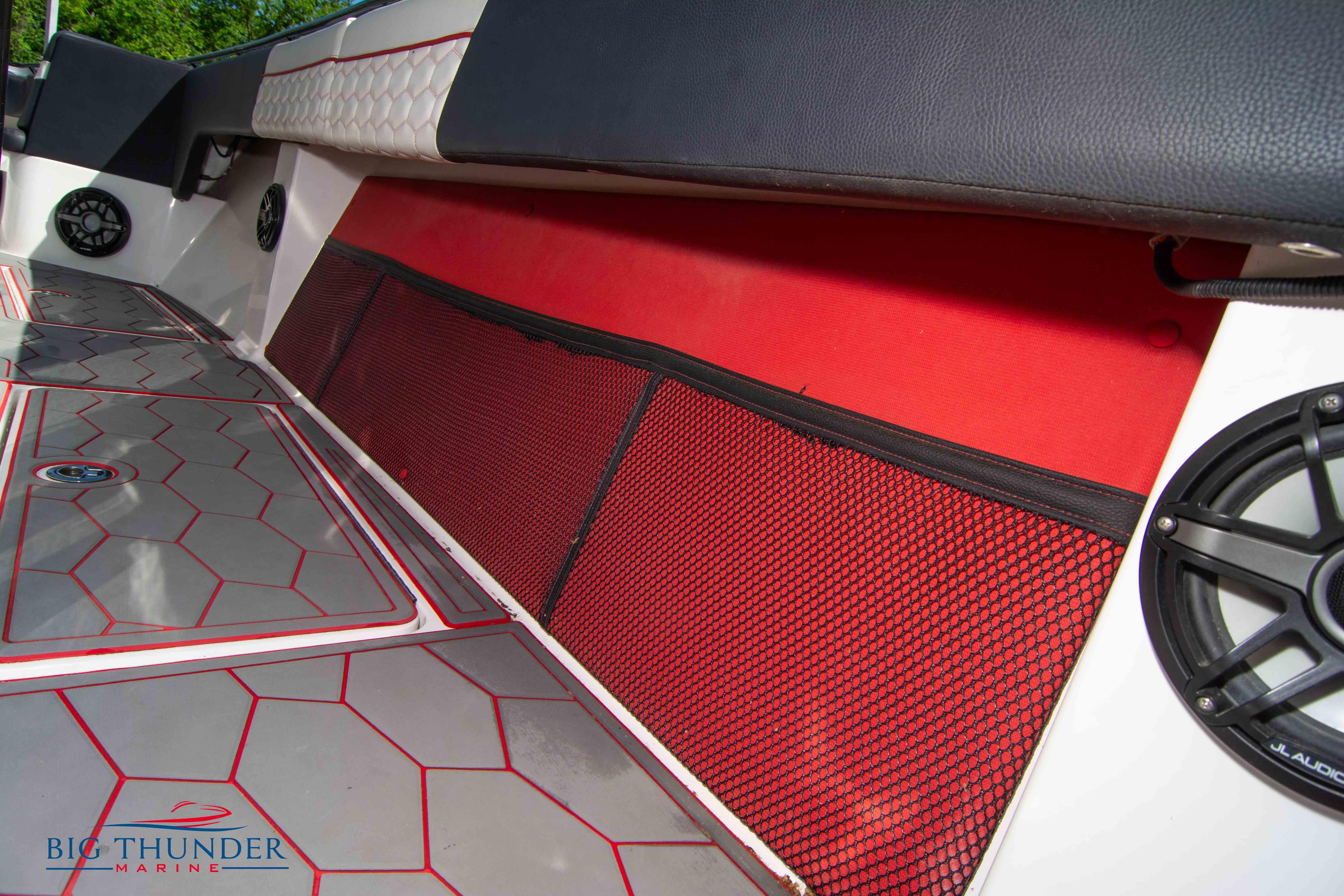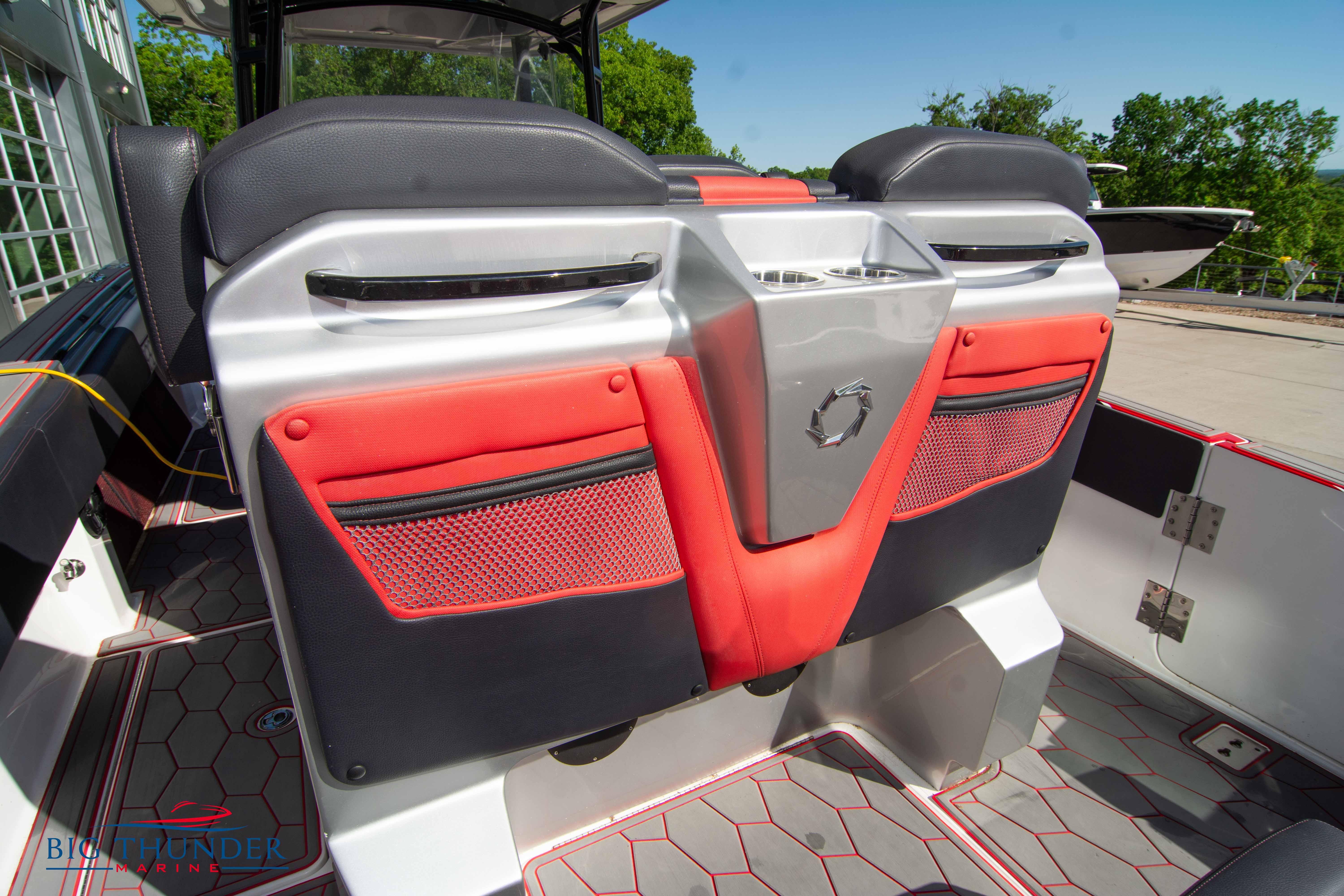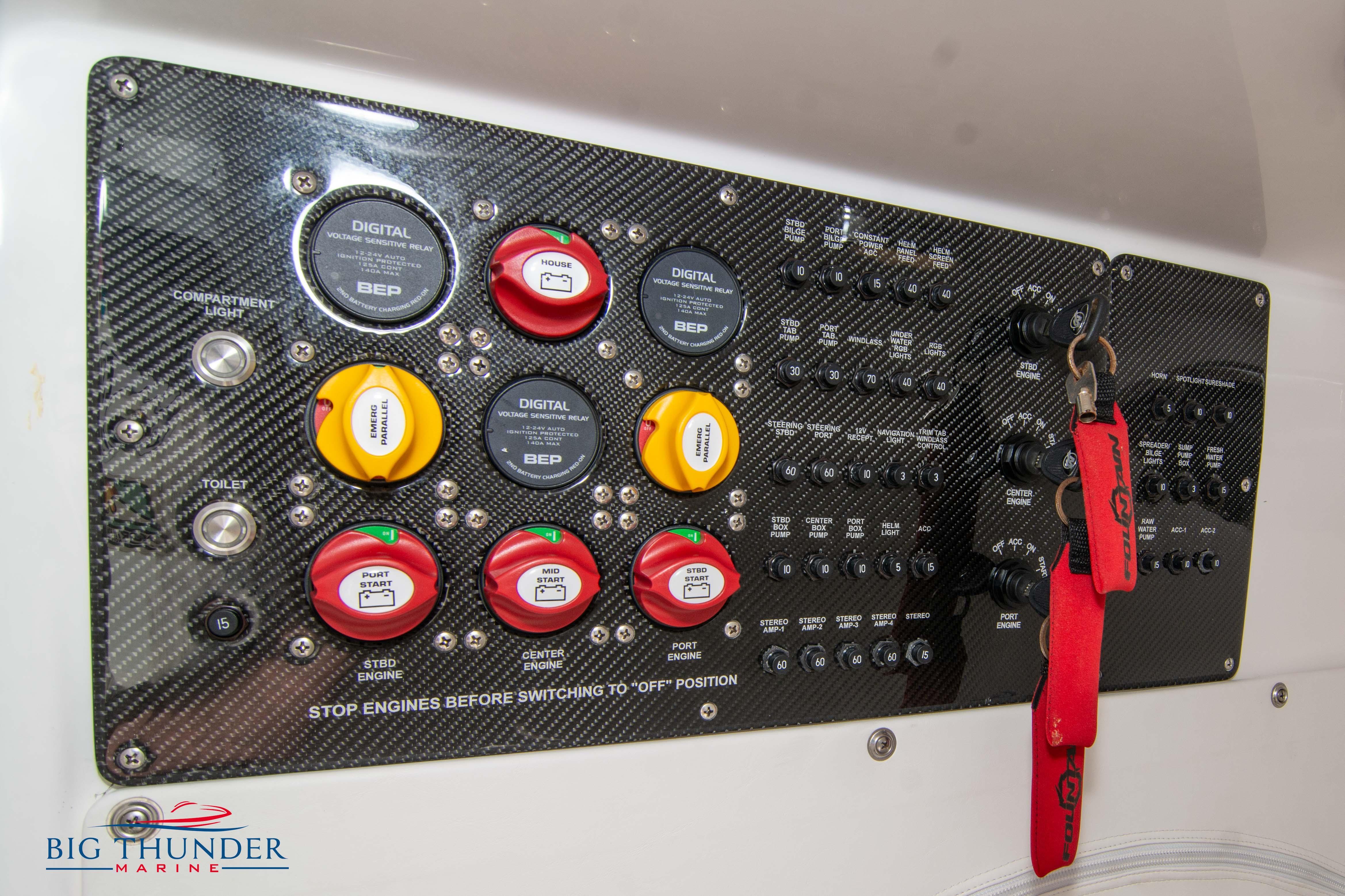 2021 Fountain 38 SC Triple Paint Matched Mercury Racing 450R Verado's (373 hours). Reverso Automatic Engine Flushing System. Custom Paint & Graphics w/ Matching Console, Helm, & T-Top. Hard Top SeaDek Insert. Livorsi 1150 Hydraulic Trim Tabs. Bow Thruster. Thru Hull Anchor Windlass/Rode Kit, Striker Plate, Polished SS Plow, 15’ of 5/16"" Galvanized Chain, 150’ of 5/8"" 8-Strand Braided Rope. Black Cool Touch Interior Vinyl Upholstery w/ White Alpah Quilted Panels, Bright Red Hitch Accents & Piping, White Hex Pattern Stitching & Dark Gray Embroidered Logos. Stitched Sport Leather Steering Wheel. Additional USB Outlet in Dash. Screened Portlight. Starboard Side Cockpit Dive Door w/ Ladder. Shadow-Caster RGB Cockpit & Underwater Lighting Control System. Garmin xHD 24" Dome Radar. Dual GPSMap 8616 16" Displays. Vessel View 903 Engine Monitoring Display. Garmin 215 AIS VHF w/ Antenna. Premium Audio System (Fusion Touchscreen Entertainment Center w/ Built In WiFi, (4) JL 6.5 LED Spkrs., (6) 7.7 LED Spkrs., (2) 8.8 LED Spkrs., (4) 10"" Subs, (2) 600W 6 Ch Amps & (2) 600W Mono Block Amps). (2) Additional 7.7" Bow Speakers w/ Upgraded Amp. Wireless Stereo Remote. Double Row Stand Up Helm Bolsters w/ (2) Additional Subwoofers. Additional 20 Gal. Fresh Water Tank (30 Gal. Total)Trailer not included, new trailer quotes available separate. Financing and nationwide delivery also available, all 2005 and newer model year trades considered. Call for more info and demo scheduling.DisclaimerThe Company offers the details of this vessel in good faith but cannot guarantee or warrant the accuracy of this information nor warrant the condition of the vessel. A buyer should instruct his agents, or his surveyors, to investigate such details as the buyer desires validated. This vessel is offered subject to prior sale, price change, or withdrawal without notice.