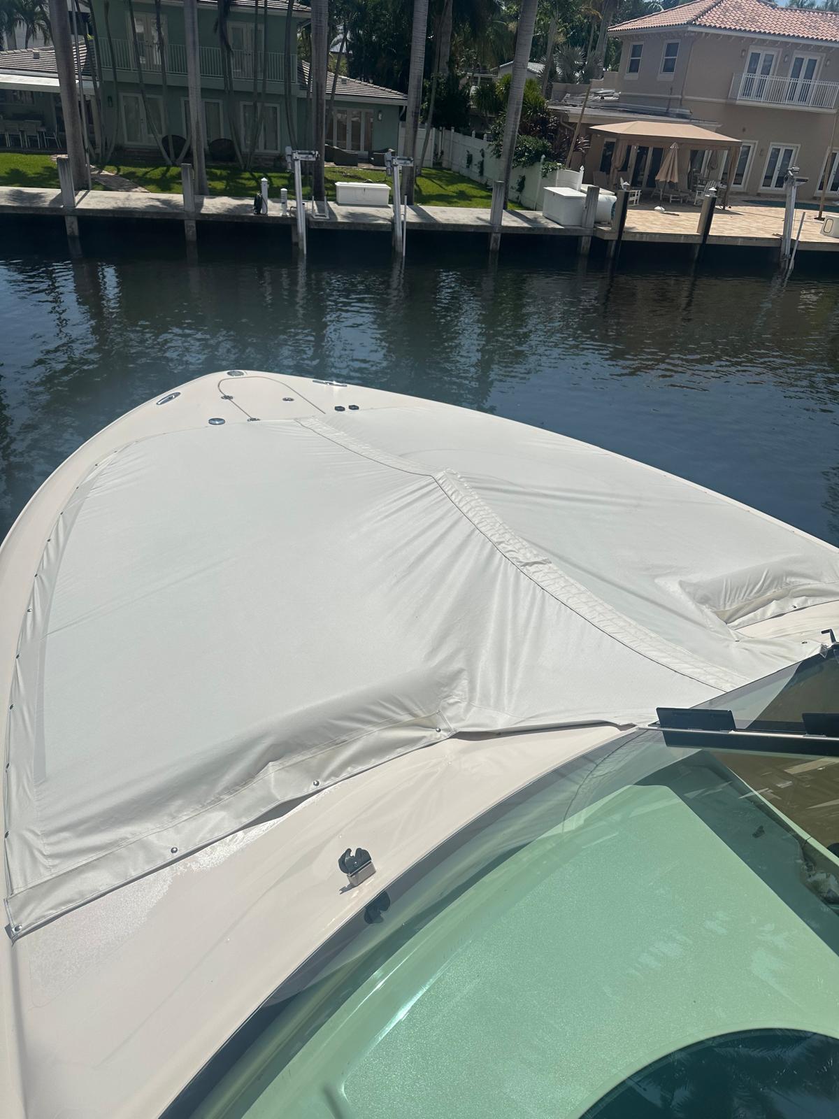 - Hardtop - AV2® hardtop enclosure w/aluminum painted frame, grab rail, electronically sliding sunroof w/screen & shade, storage net, LED spreader lights, tri-colored (red, blue, white) LED recessed lights (8), storage and first aid kit compartments (2), outrigger plates, horizontal hanging rod holders (4), side mounted rod holders (4), Clear2Sea™ side curtains & SureShade® electrically retractable shade with Sunbrella® canvas (oyster)