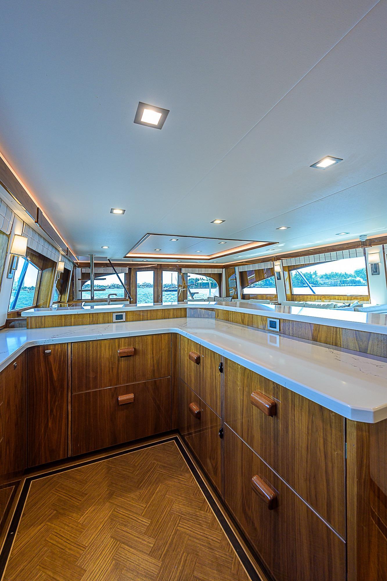- Custom teak stairs port and starboard for access to mezzanine and upper lounge deck