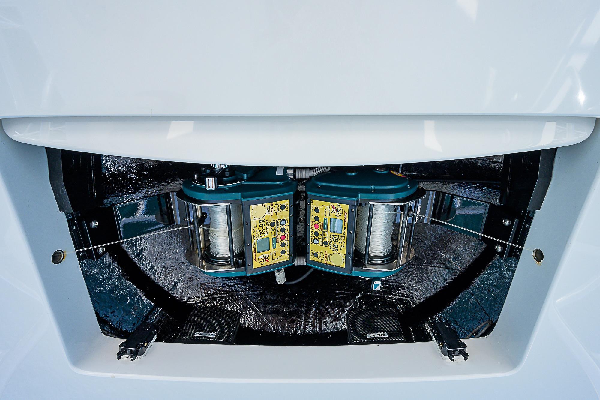 - Glendinning Cablemasters in forward port and starboard cabinets under gunwales