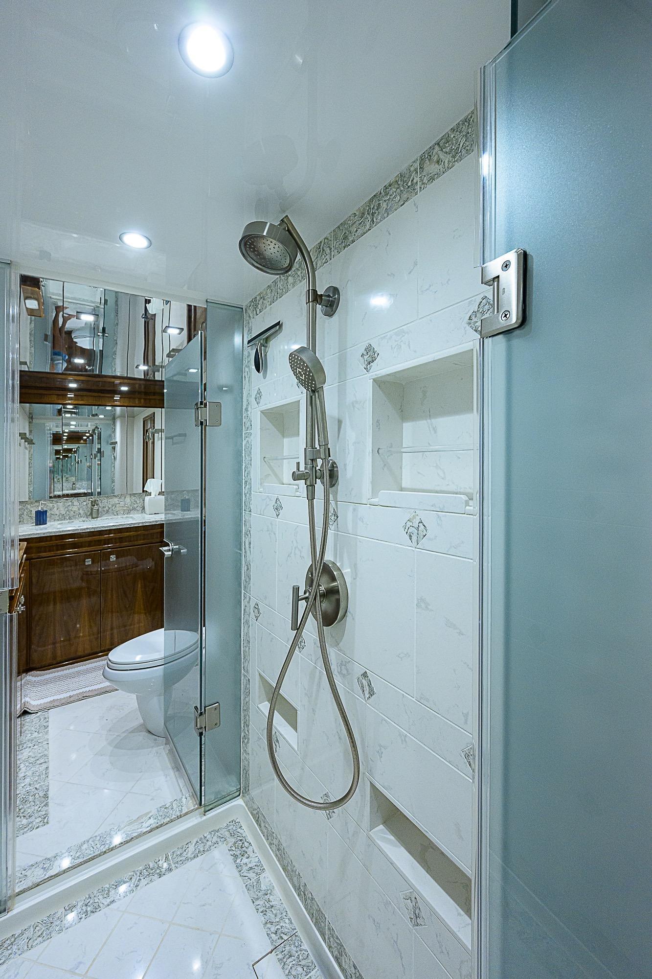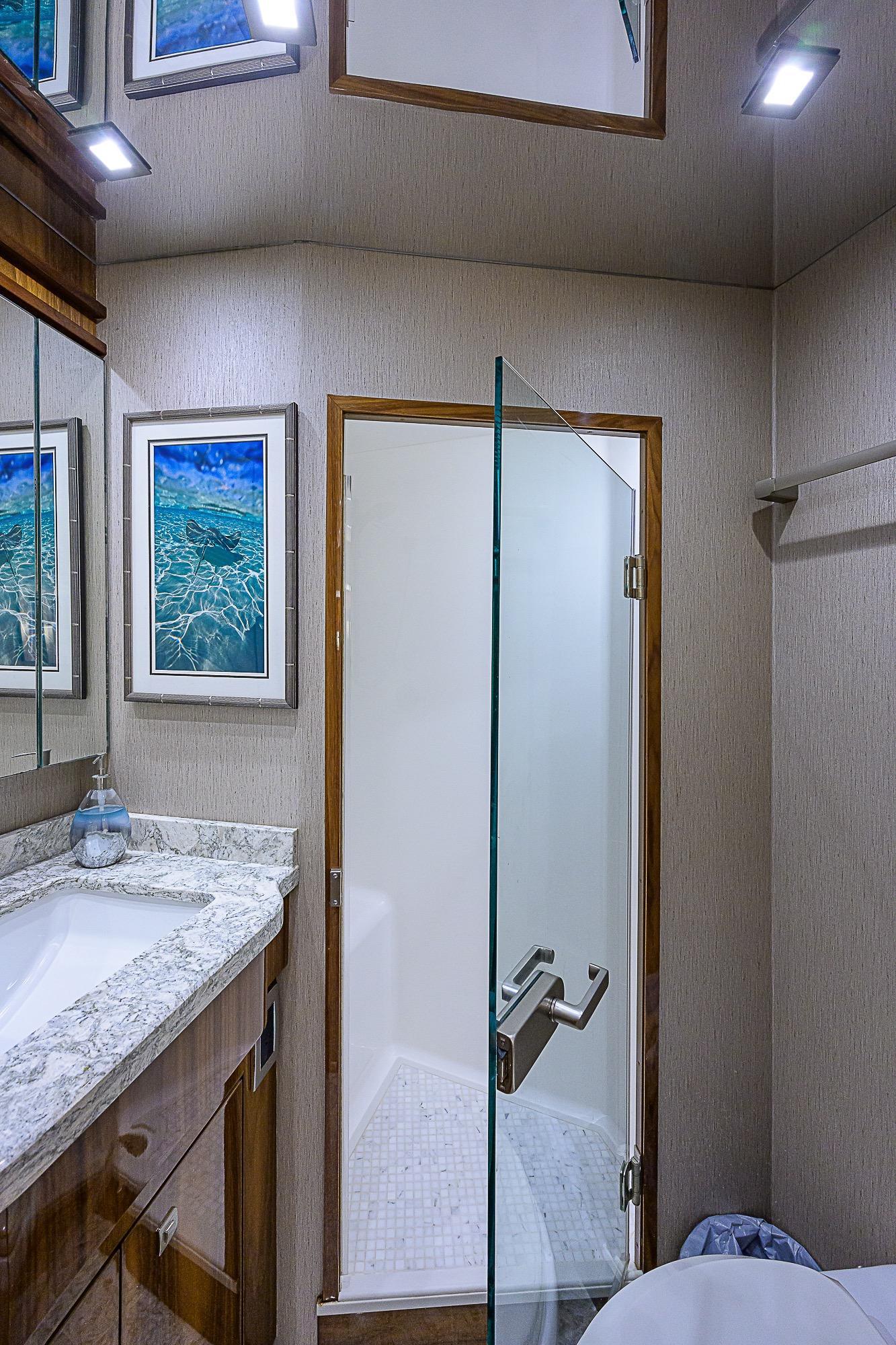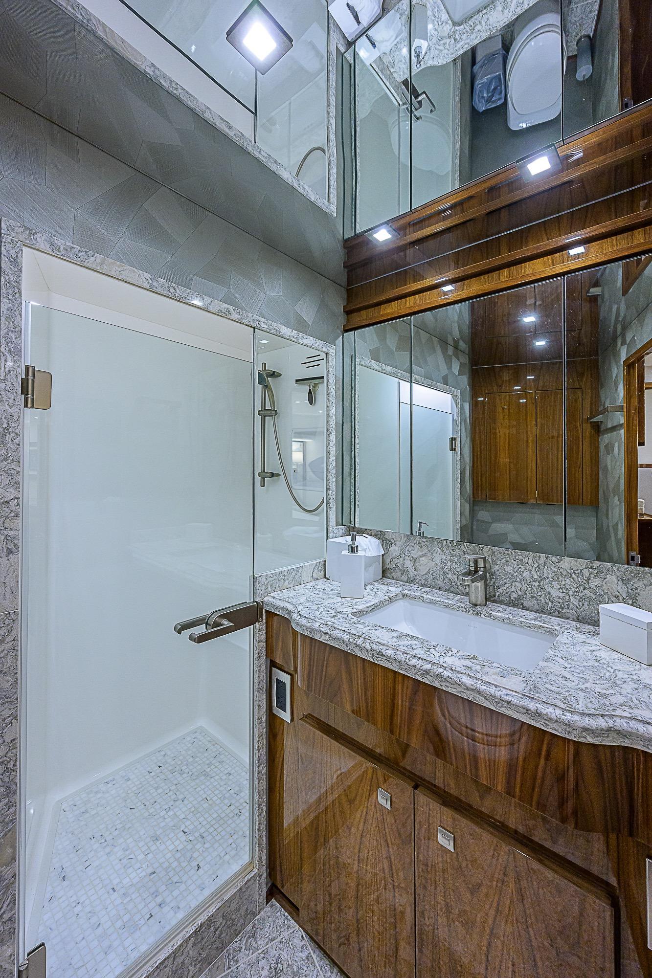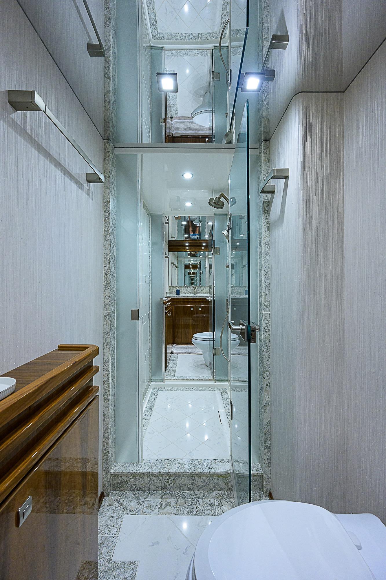 - His and her head and vanity areas with separate toilets sinks and access from stateroom