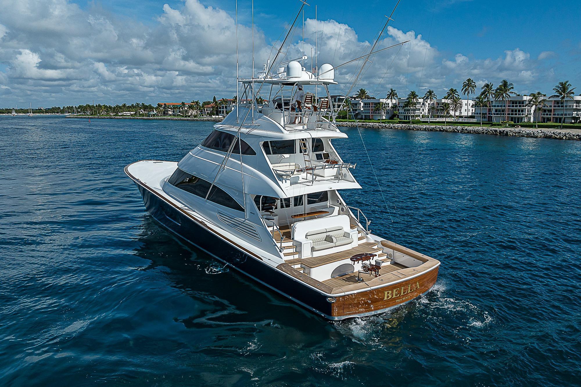Boat will be back at Safe Harbors Rybovich October 27 for showings just in time for the Fort Lauderdale Boat show. Feel free to to call Rick Graham Oyster Harbors Marine to arrange a tour.This 2018 92 Viking Sky Bridge "Bella" has been lightly used for cruising and fishing by the current owner since purchasing her in 2019. "Bella" combines the comfort and elegance of a motor yacht with the fishability and performance of a state of the art sport-fisher. This motor yacht has been meticulously maintained receiving bi-annual servicing at Viking Yachts of West Palm Beach. No expense has been spared.Highlights include:238 square foot 2 level mezzanine cockpitTwin MTU V16 M96L 2635MHP engines (2,600 Hours)Maximum speed 36 knots Cruise speed 30 KnotsSea Keeper SK 35Fuel Capacity 4,018 GallonsWater Maker with 485 Gallon fresh water tankTwo 55 KW Cummins Onan GeneratorsFuruno 360 degree Omni Sonar5 Staterooms each with it's own private head and showerCrew Quarters are located aft with full access from cockpitMain Salon (2) L-Shaped sofas, Internal staircase to bridgeGourmet GalleyDay HeadClimate Controlled Enclosed Bridge with forward helm and AME Electronic Package Sky Bridge with full electronics package