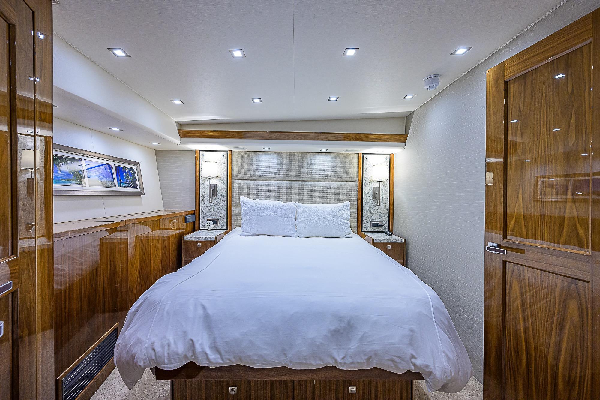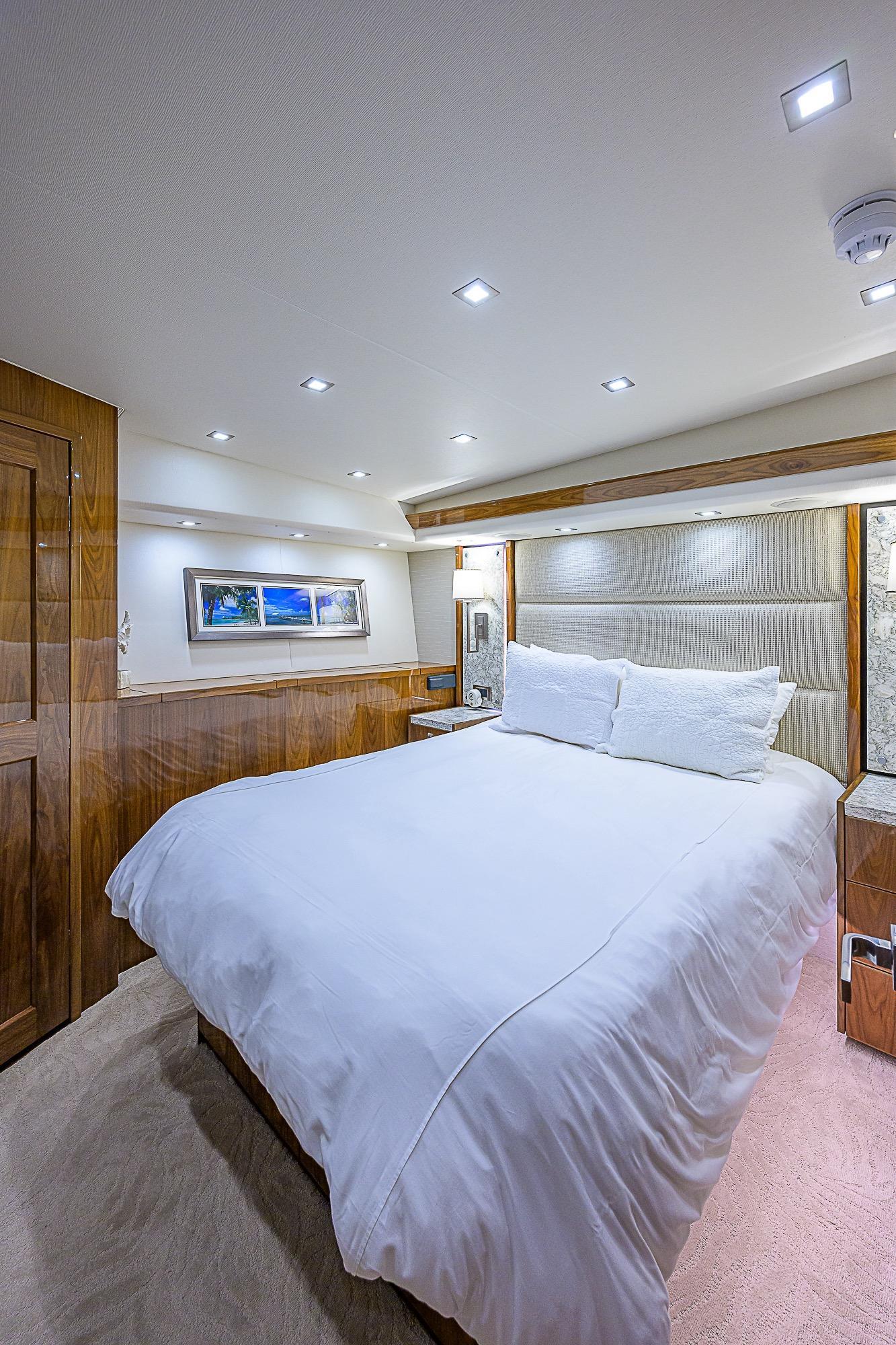 - A king-size bed , walk-around fore and aft with upholstered headboard