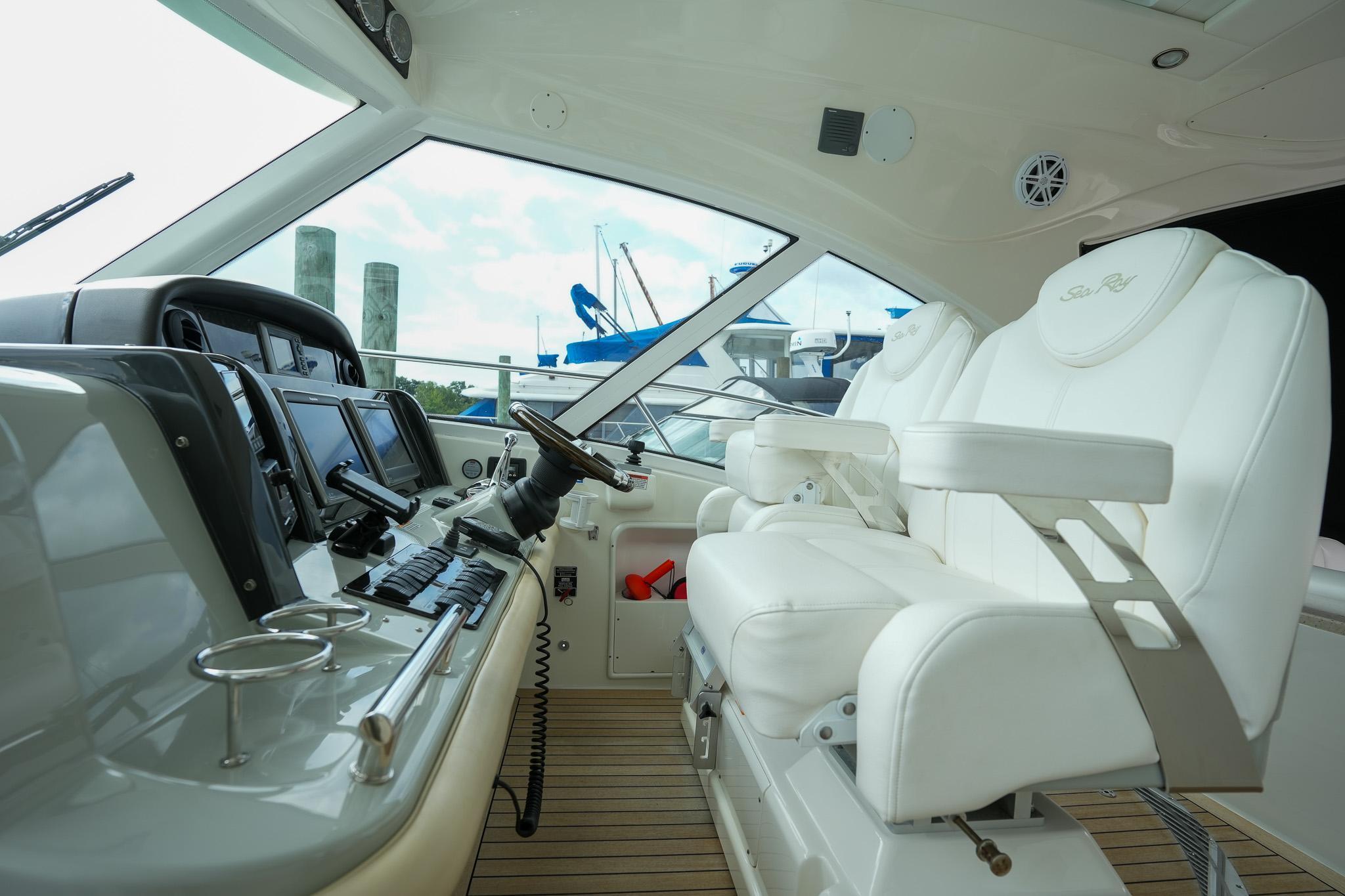 “Volante” is a very well optioned 2010 Sea Ray 500 Sundancer owned and operated by an experienced and meticulous owner. THIS BOAT IS CLEANThis express cruiser is has a 2 stateroom 2 head layout with a very spacious galley and salon down below. Perfect for a family getaway or a couple’s retreat all of the interior finishes have been well maintained. It doesn’t matter if you are taking a multi-day trip or just a spontaneous sunset cruise with the very intuitive Zeus pod technology and bow thruster everyone will look like a seasoned Capitan operating the vessel. No expense has been spared in the continuous upgrades and maintenance that have been completed throughout this owner’s time with the boat. Some of the notable features include:Diesel Zeus QSC 550 (543HP each) w/ Joystick DockingUpgraded 11.5Kw Onan Generator Bow ThrusterHydraulic Swim PlatformALL TV’s are replaced from original with Smart TV’sBose Speaker System for interiorJL Audio System on deck with 4 Zones Helm, Cockpit, Bow, AftCustom Canvas (multiple sets) including a ½ Camper as seen in the picturesDual Raymarine 12” GPS MFD’sOpen Array RadarFLIR night visionWireless Cell Phone Charger at HelmTeak Flooring at HelmCarpets in CockpitEntertainment area with Grill, Sink, Garbage can, and Storage port side cockpit2 coats barrier 2 coats fresh bottom paint march 2022Spare set of propsBow pads are in great shape (not in pictured)