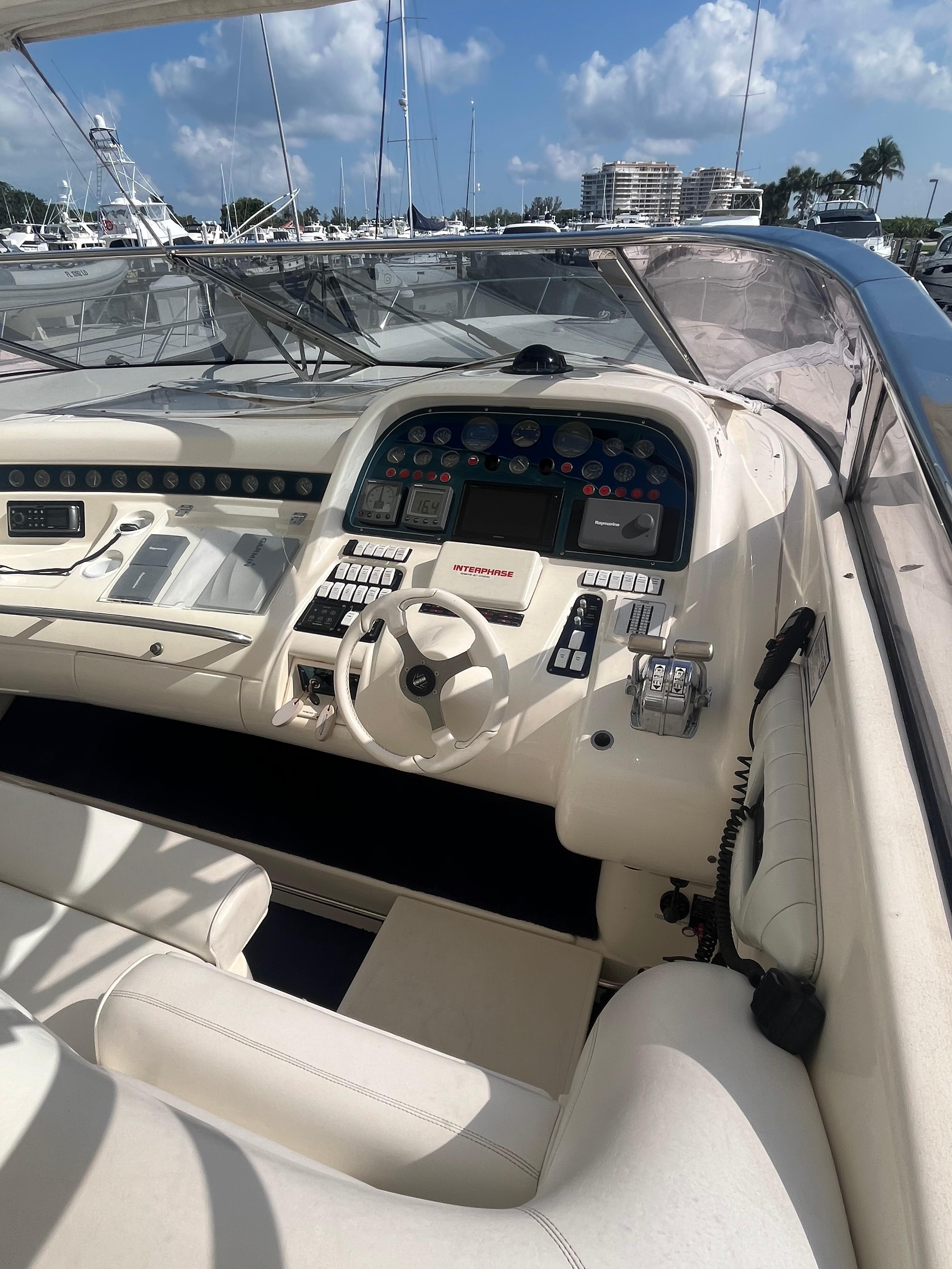 This Beautifully Yacht was only in FRESHWATER till 2022. It really shows when the owner loves his YACHT!This also has a SLIP in a great location at LONG BOAT KEY MOORING that the NEW OWNER can take over. Highly sought after boat slip with natural beauty and lots of amenities.This the best Sunseeker 60 Renegade on earth. Very well maintained super clean!MUST SEE! This 60 foot yacht has a draft of only 3.3 foot. She comes with Bow & Stern thruster for easy docking. CALL NOW!DESCRIPTION1993 Sunseeker Renegade 60Three staterooms with owner stateroom forward, with ensuite head and shower, hanging locker, opening overhead hatch and ports. The two guest staterooms are aft. The starboard guest has over under bunks and port guest has double bed. Guests share day head with stall shower. Salon and galley are mid-ships with opening hatch and ports. Helm deck level features steering station, opening bimini top, U-shaped seating with table & sink. Aft is sundeck and tender garage with davit/passerelle. Forward is bow with sunbathing area and access to anchor locker. Full navigation electronic package. Ultra sonic system to prevent barnacles. Forward & aft thrusters with remote. 60" HD TV main salon. 30" HD TV master cabin. Large refrigeration full equipped galley with microwave. All heads vacuum flush. 4 A/C units including engine room. 30 mile radar Garman GPS with large heads up display.NEW 2023 Full Bimini Top / Full Moorning Cover / New Lounge Pad / Bottom Paint Black / Sandblasted All Jet System & 3 Coats of Epoxy / All New Zincs / Full Hull Buff & Wax / Comes with Complete Set of Isinglass for Winter Trips.