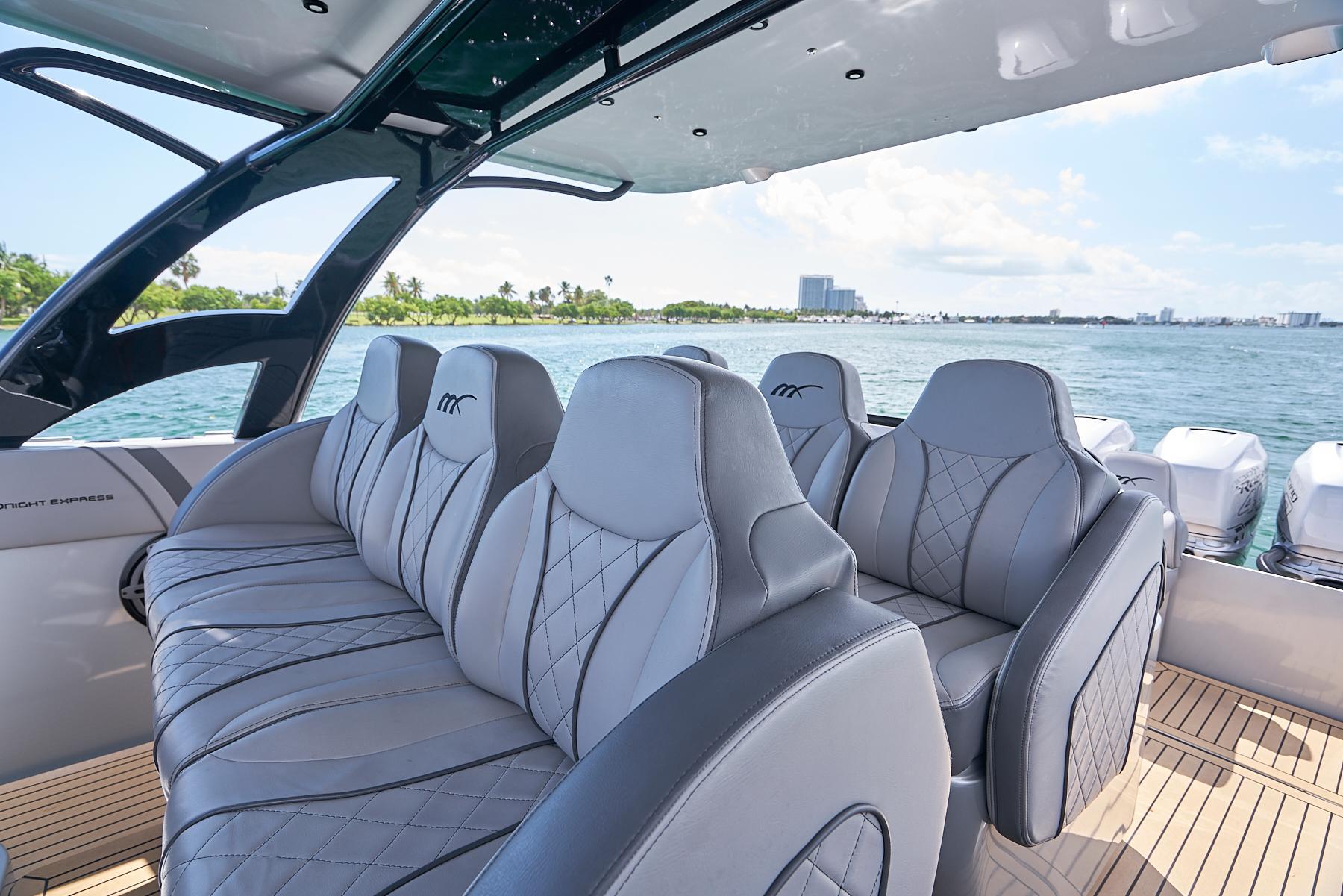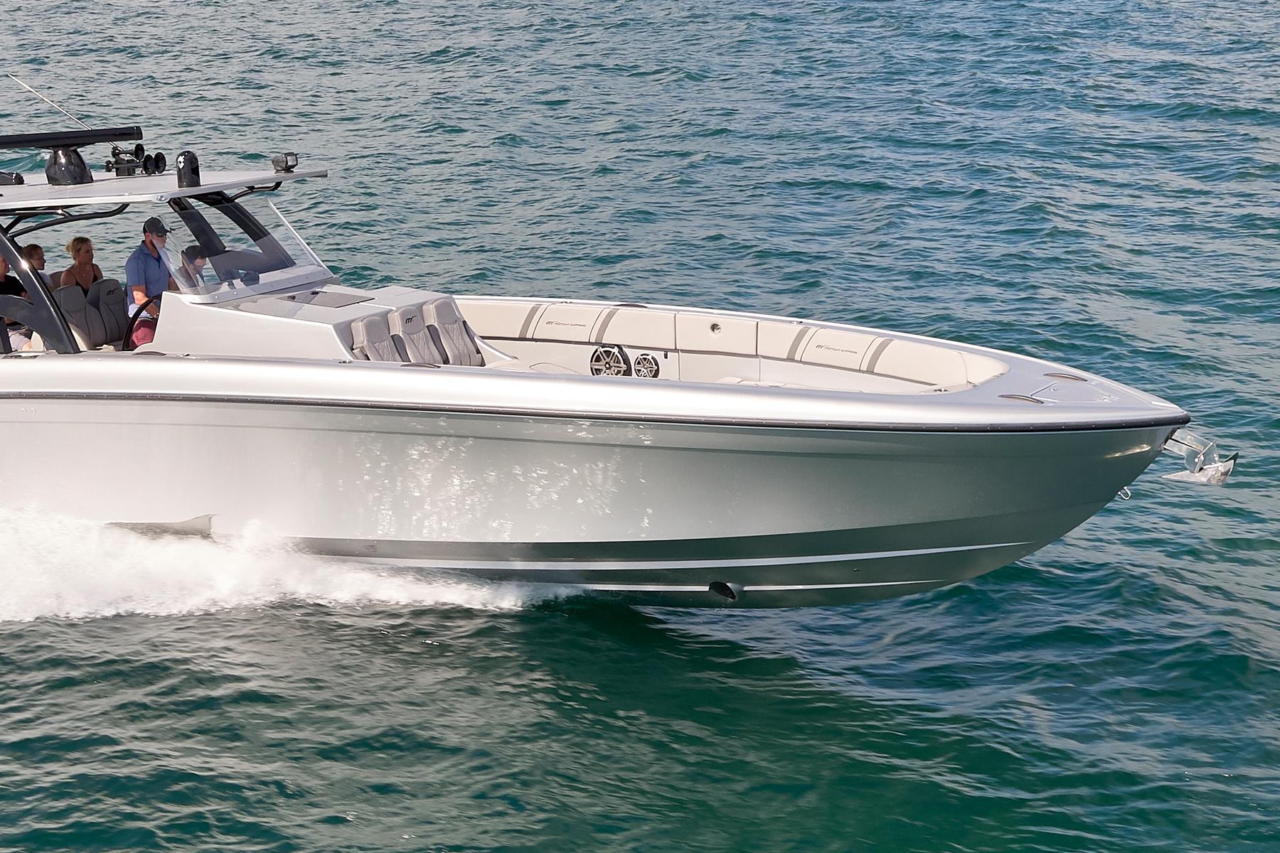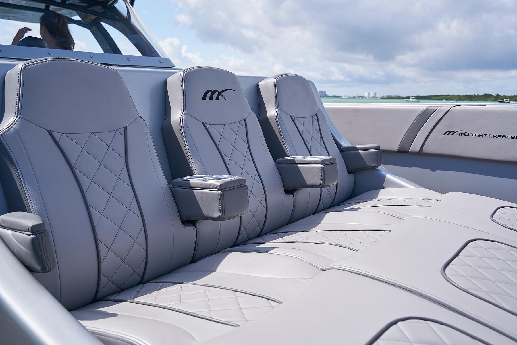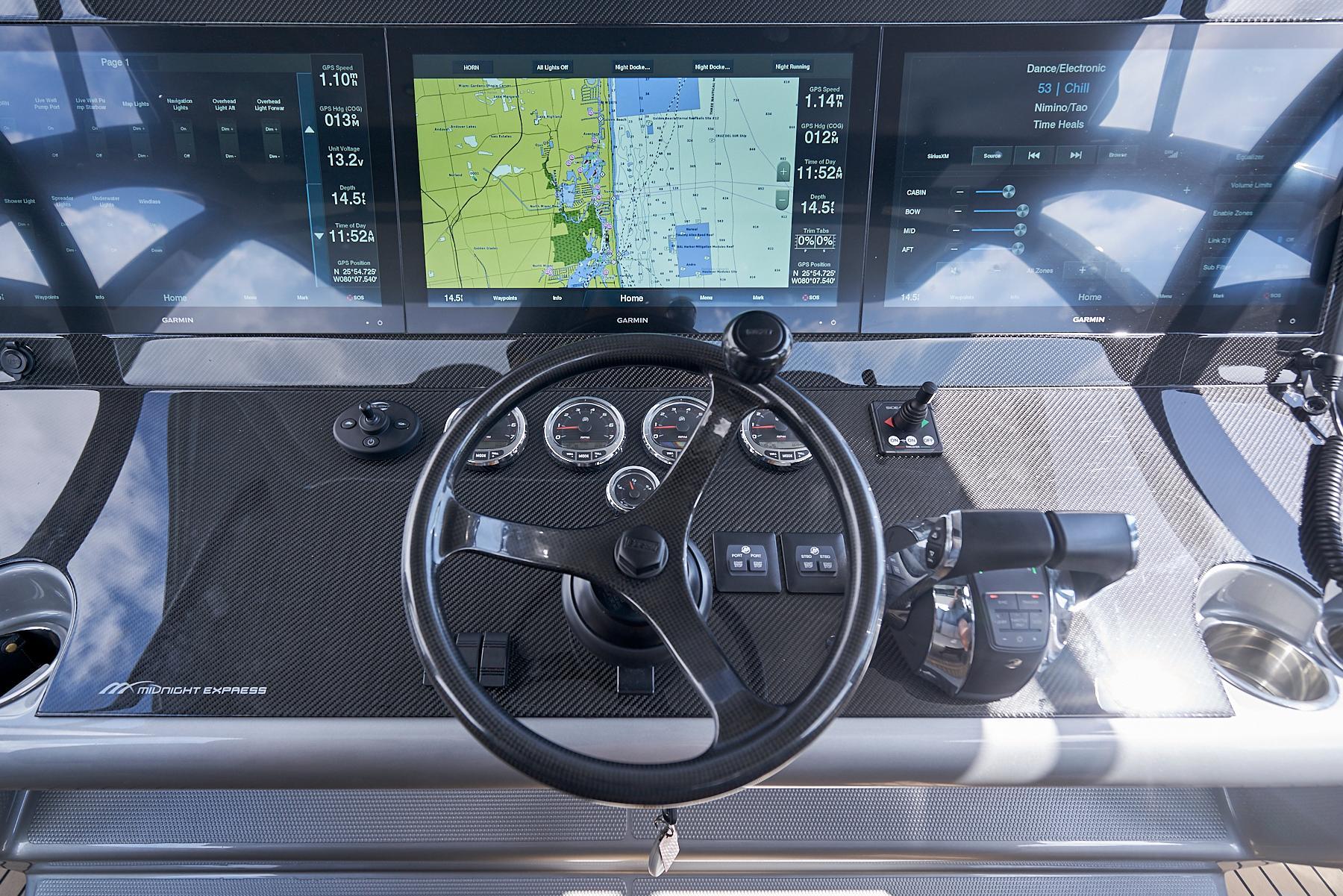 The Legendary Midnight Express hull, with its True Balance Twin Step design, Integrated Spray Reduction System (ISR), and Fully Infused and Cored Monocoque construction, outperforms all others. Carefully chosen utilization of incredibly light carbon fiber parts such as the beautifully molded hardtop and optional dive door, are engineered to lower the center of gravity. These are some of the reasons the Midnight Express hull has been the choice of military and law enforcement agencies worldwide – applications where performance is mission critical. The need to create an exhilarating and fun experience along with a feeling of comfort and confidence for your family and guests make performance mission critical to you. So don’t compromise – get a Midnight Express 43 Open now.