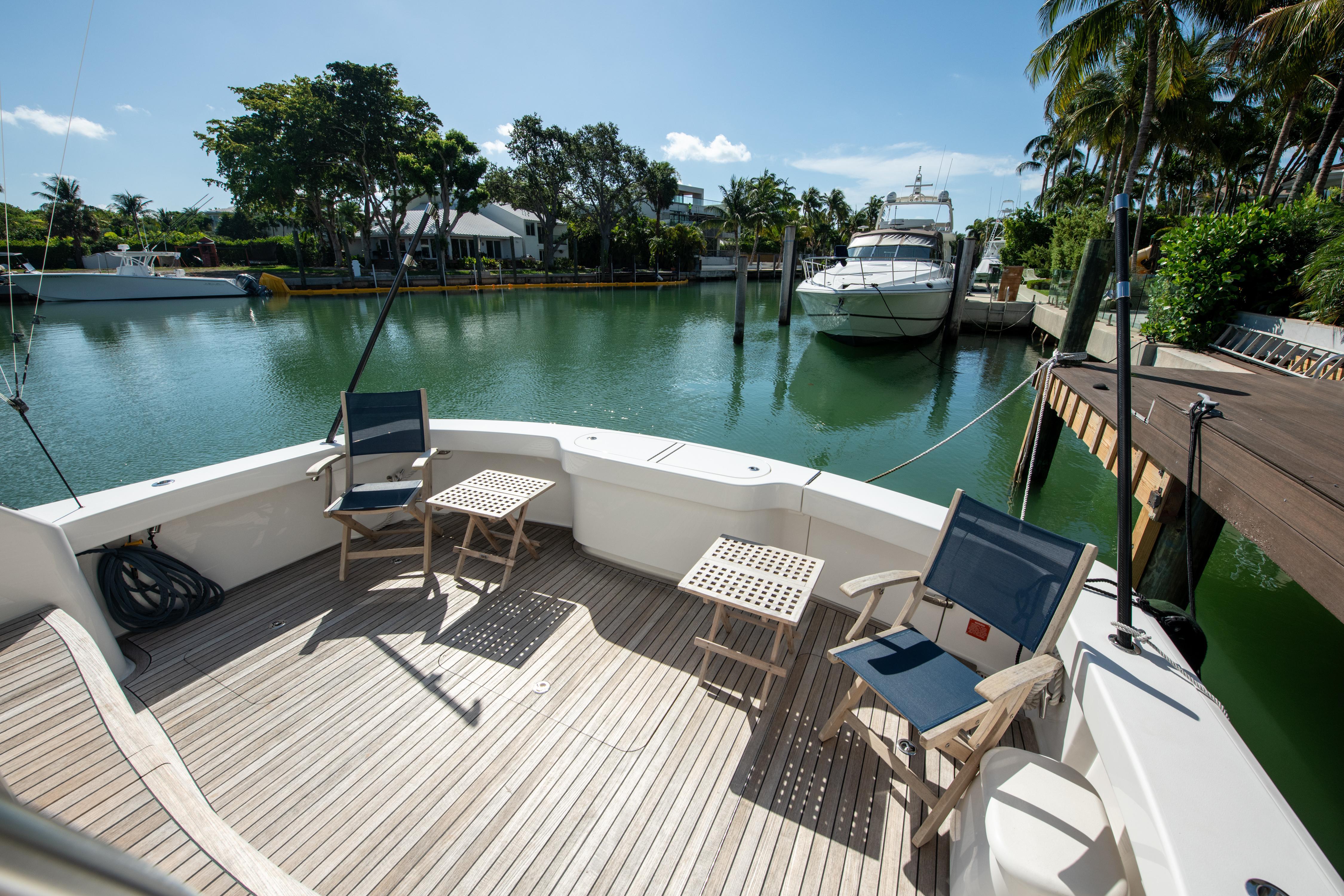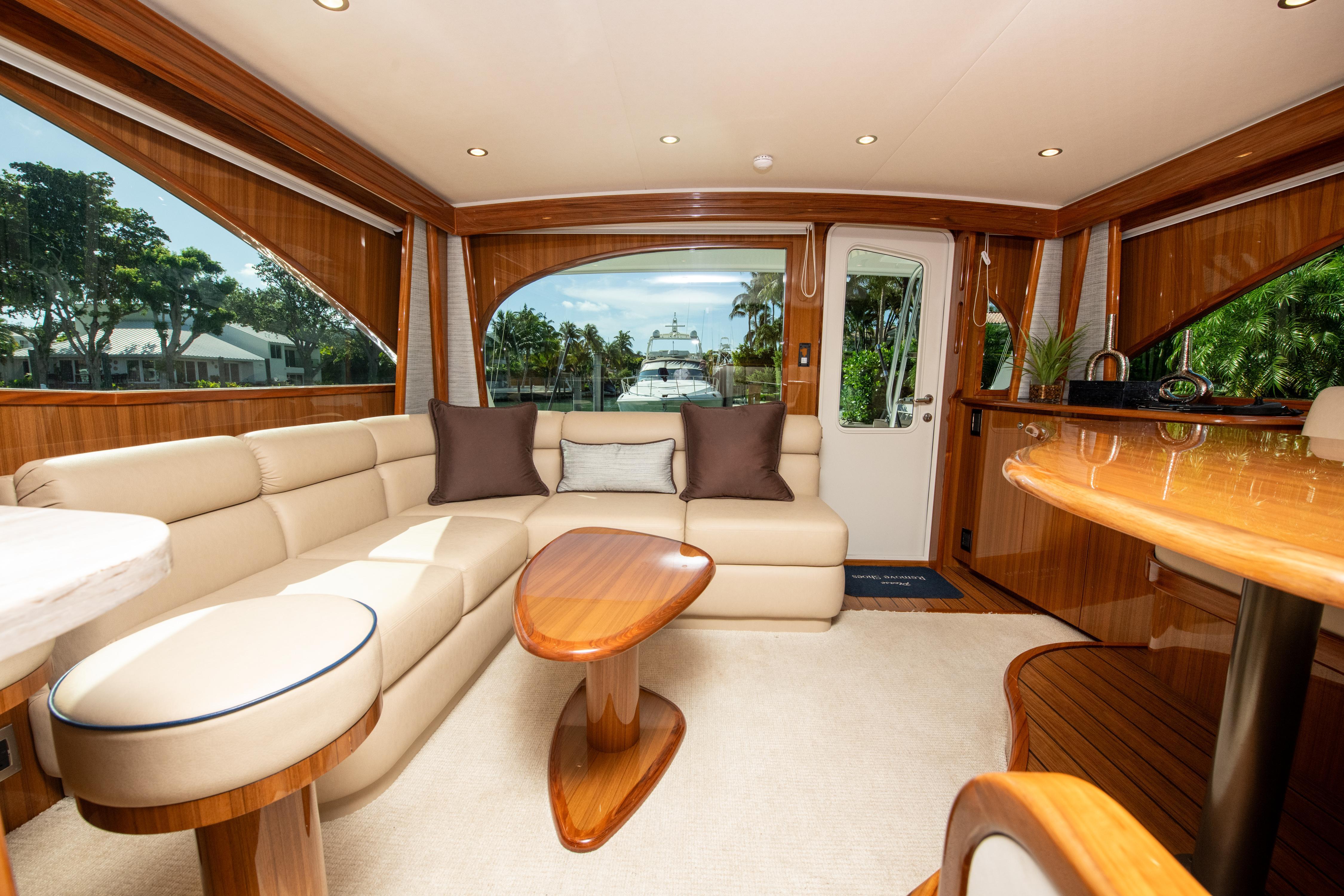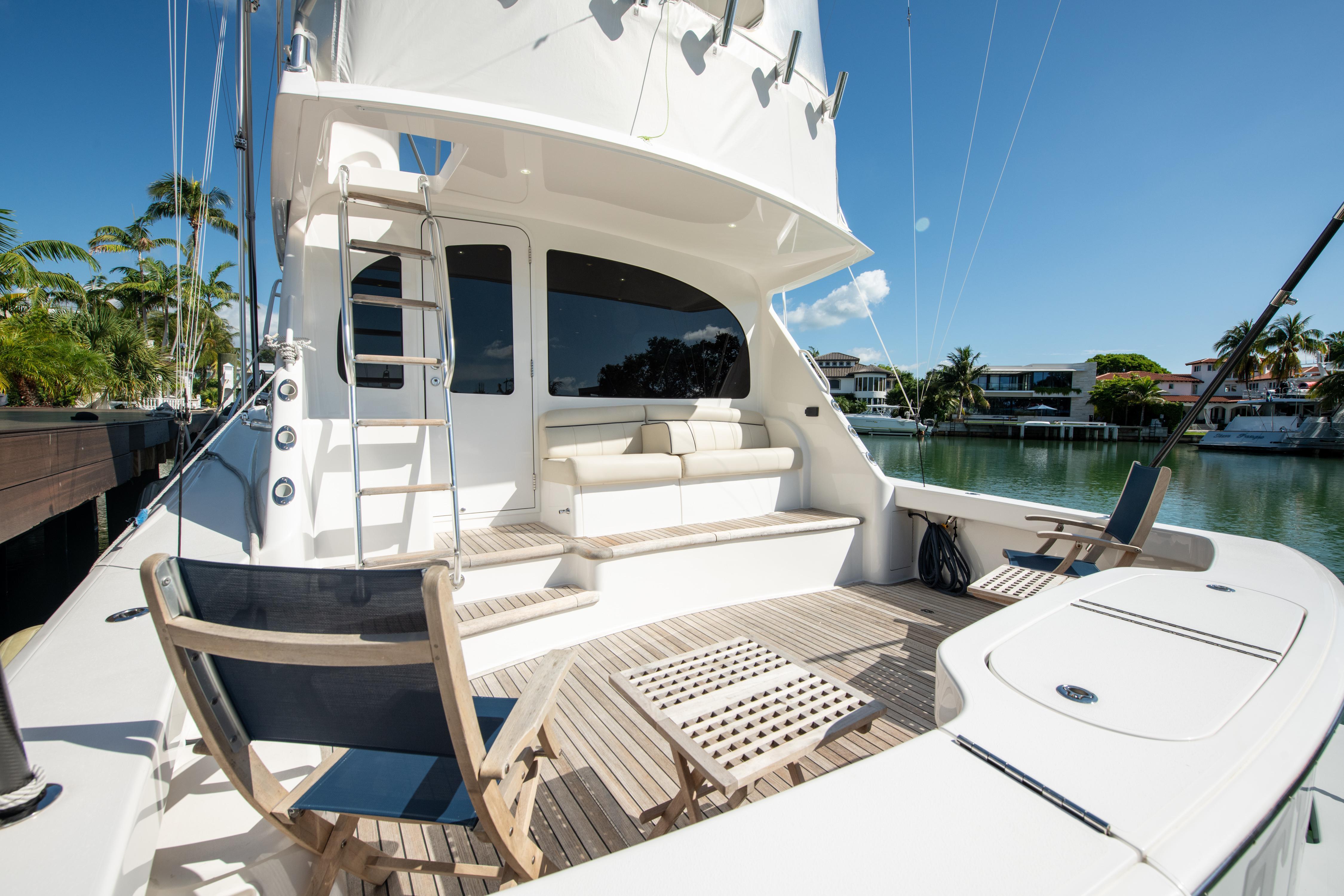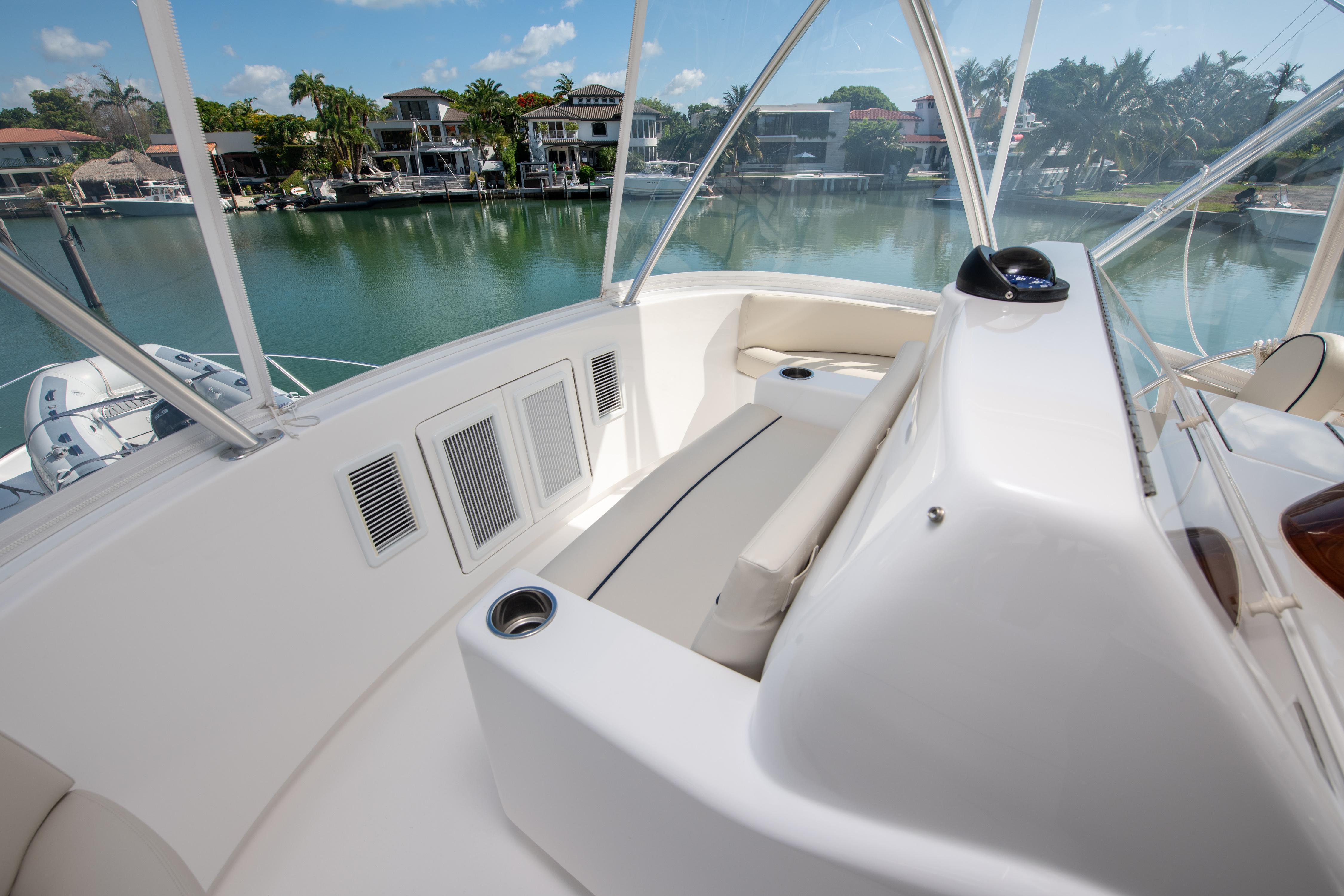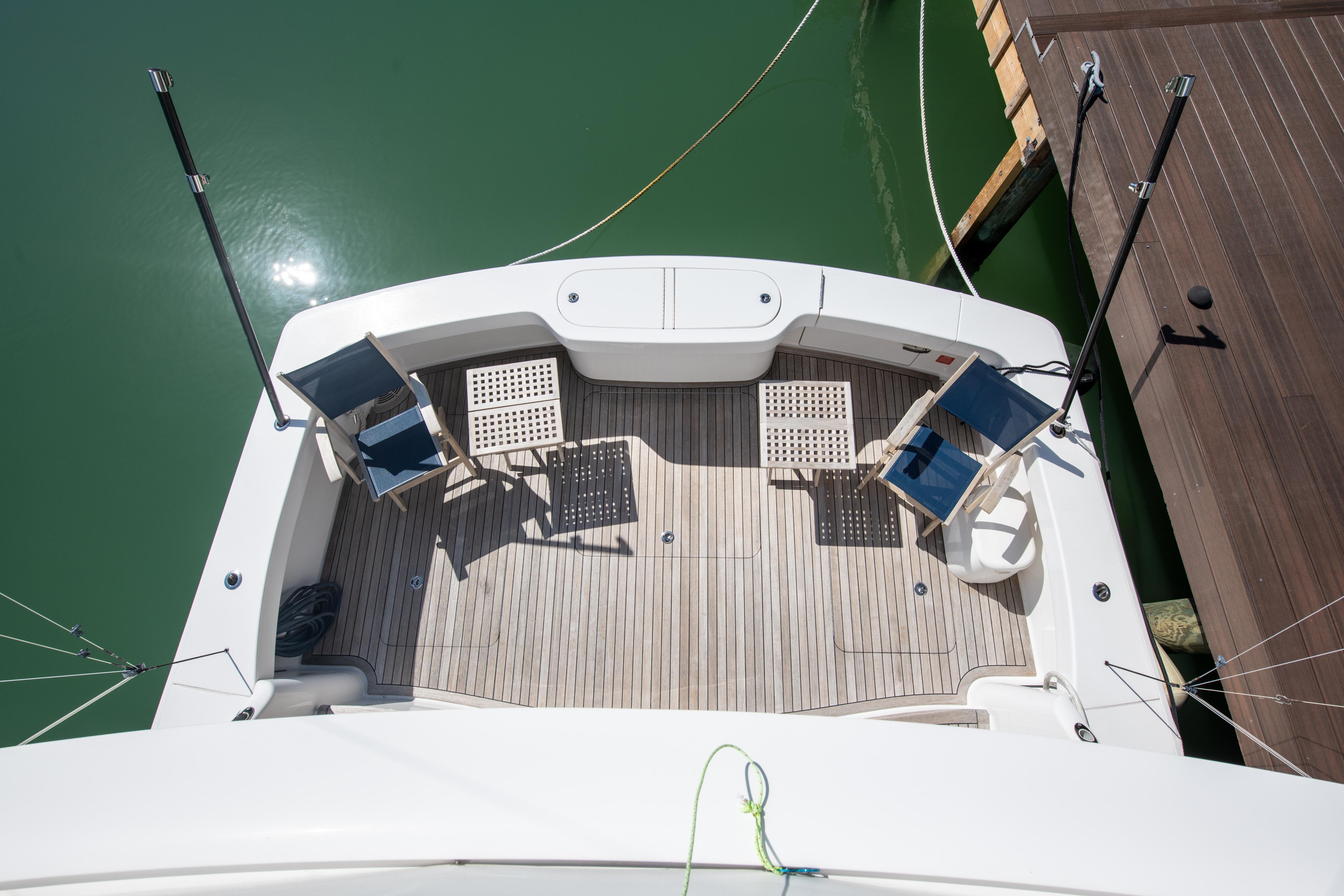 The 44 C is engineered and designed for the installation of a Seakeeper gyro stabilizer, which brings great stability to the vessel and elevates the overall comfort level. Guests can take in the fishing action from the starboard-side observation mezzanine's aft-facing lounge seating.