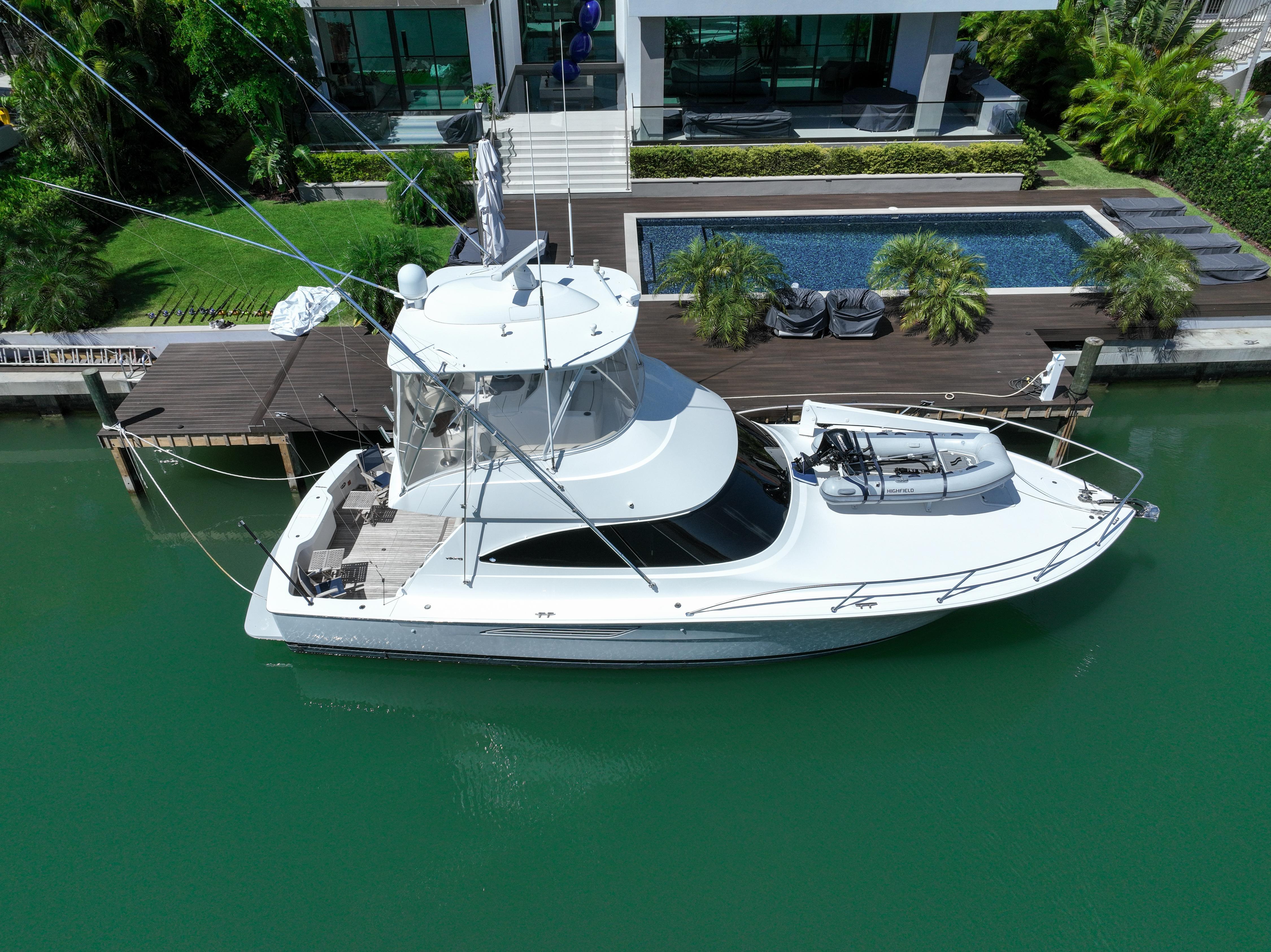 The Viking brand is synonymous with quality and innovative design, and it has been a family-owned and operated business for over 50 years. Despite changes in ownership for other brands, Viking has maintained its commitment to family values. This 44 ft sport fishing boat boasts the largest volume available, offering a spacious cockpit and a meticulously designed interior with high-quality materials. The current owner, an experienced yachtsman, oversaw custom finishes from the factory, drawing from years of experience building and owning yachts of various sizes. This boat is well-equipped for both fishing and cruising, featuring a refrigerated cockpit step box, large insole fish boxes, and a transom live well. The engine room is fitted with a Delta T ventilation system, fire suppression system, and top-tier running gear. The flybridge provides a comfortable, air-conditioned environment for the owner and guests, offering excellent visibility and a spacious feel. With the remote control dock mate, docking the boat is a breeze from anywhere on board. This boat has seen minimal use and has been professionally maintained to the highest standards. It comes fully loaded with every conceivable upgrade and option, making it turnkey ready for adventures with you and your family.