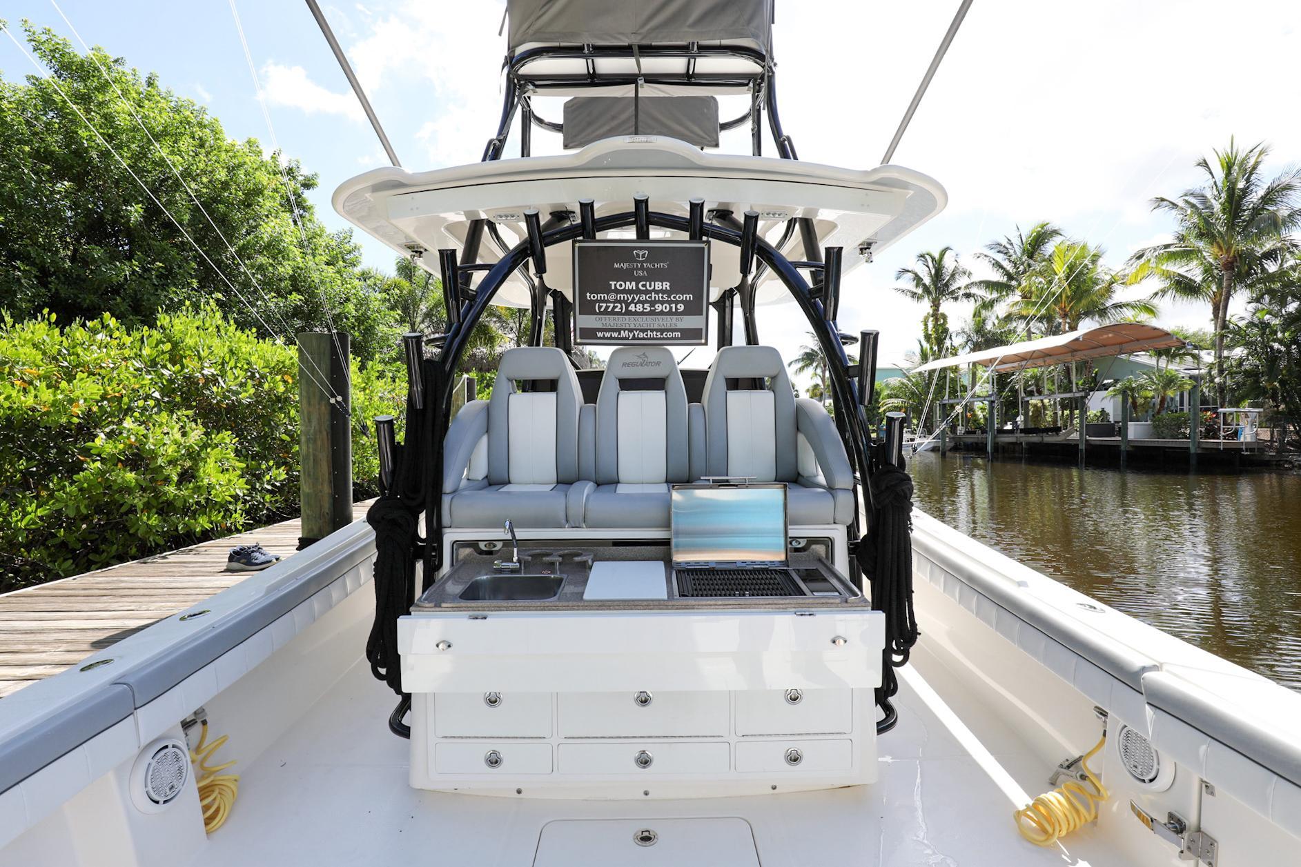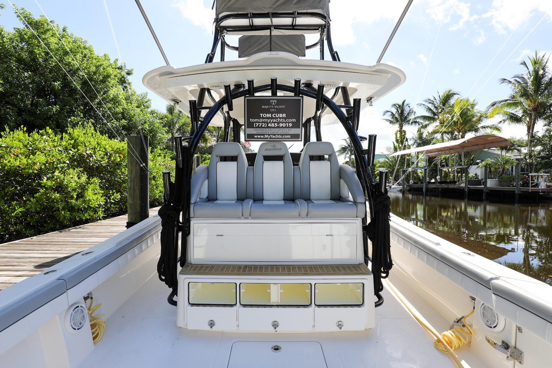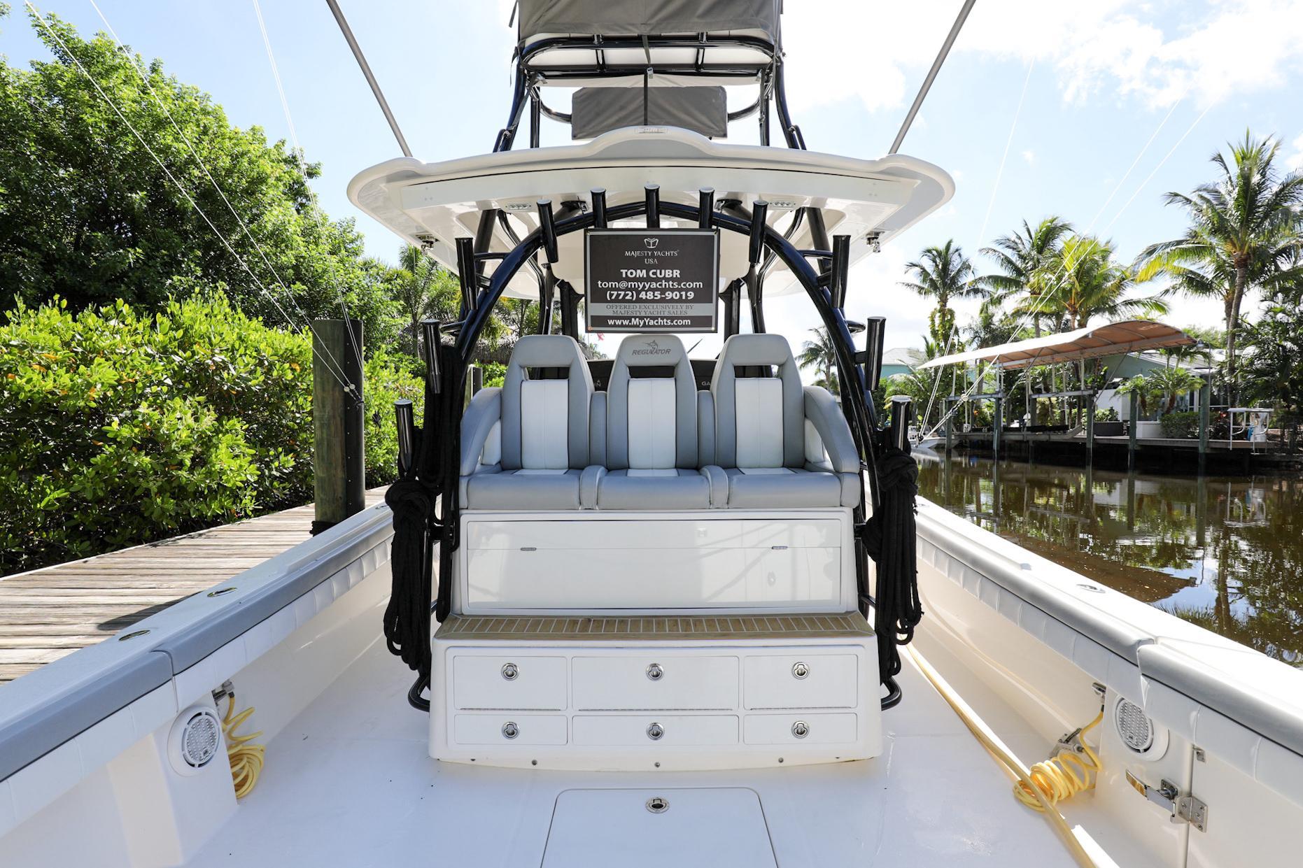 FeaturesExperience the epitome of offshore luxury with the Regulator 41' 2020. Meticulously crafted and expertly designed, this vessel sets the standard for uncompromising performance and comfort on the open seas. Powered by quad Yamaha 425XTOs boasting 1550 hours, this powerhouse delivers unparalleled reliability and efficiency. Adorned in a sleek grey hull complemented by black powdercoat and matching motors, the Regulator 41' exudes a commanding presence wherever it roams. Equipped to tackle any adventure, this vessel comes complete with a host of premium features. Ascend to the 2nd station for enhanced visibility and control, or retreat to the comfort of the cabin, where a generator and AC ensure year-round comfort. The inclusion of a Seakeeper stabilizer ensures a smooth ride, even in choppy waters. Navigating the high seas is a breeze thanks to the full Garmin package installed at both lower and upper helm stations. With comprehensive navigation tools at your fingertips, you can chart your course with confidence, while the windlass ensures effortless anchoring at your destination. Designed with both angling and relaxation in mind, the Regulator 41' boasts a spacious cockpit outfitted with an aft mezzanine seat and prep & tackle center. Enjoy ample seating without sacrificing fishing amenities, while the overhead SureShade® provides respite from the sun's rays. Below deck, the cabin beckons with its inviting interior. Discover a galley kitchen, double berth, and spacious head with shower, offering all the comforts of home even when miles from shore. Whether entertaining guests or enjoying a quiet escape, the Regulator 41' ensures a luxurious experience for all aboard. Embark on your next maritime adventure with confidence aboard the Regulator 41', where uncompromising quality meets unparalleled performance.