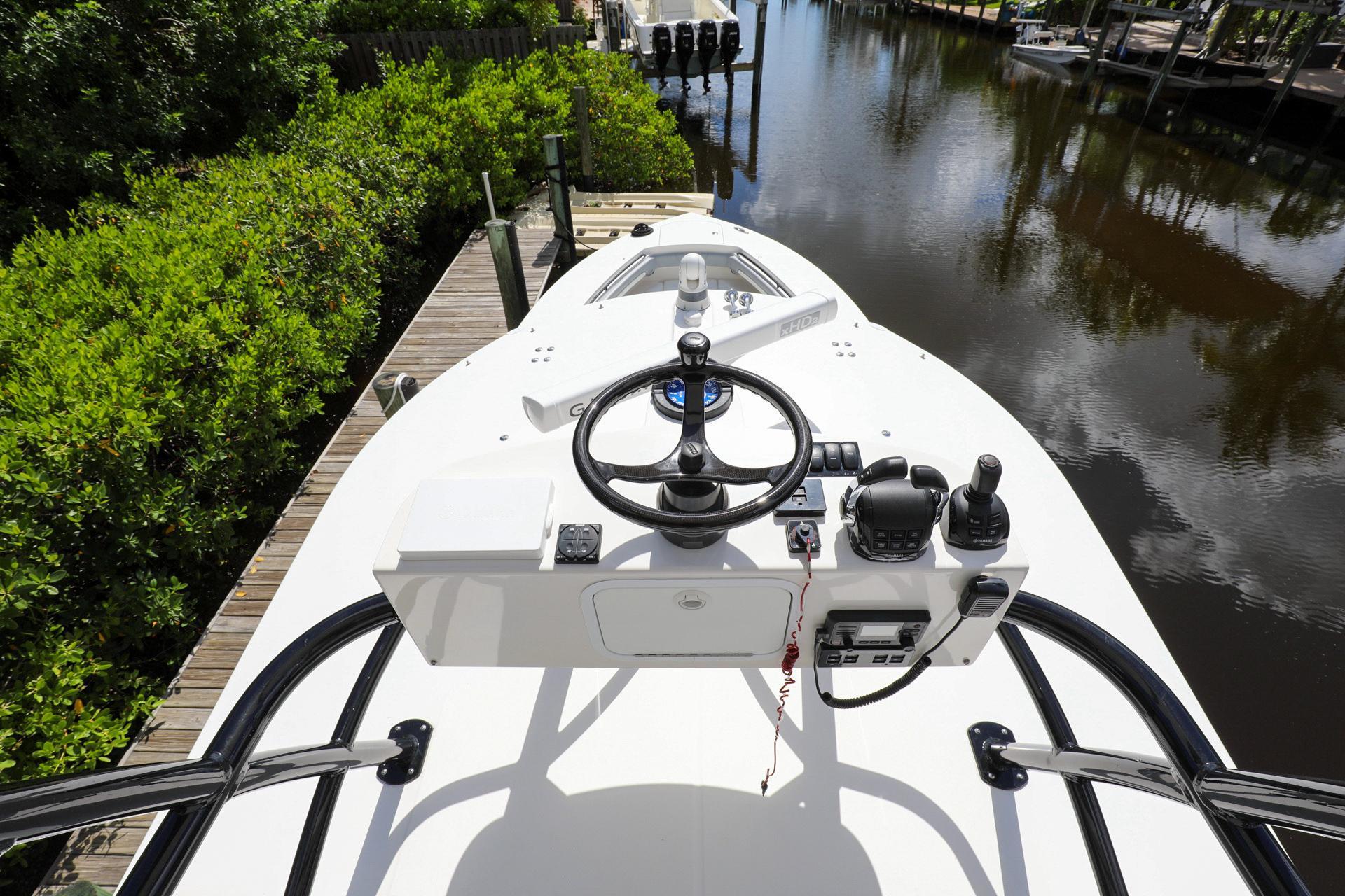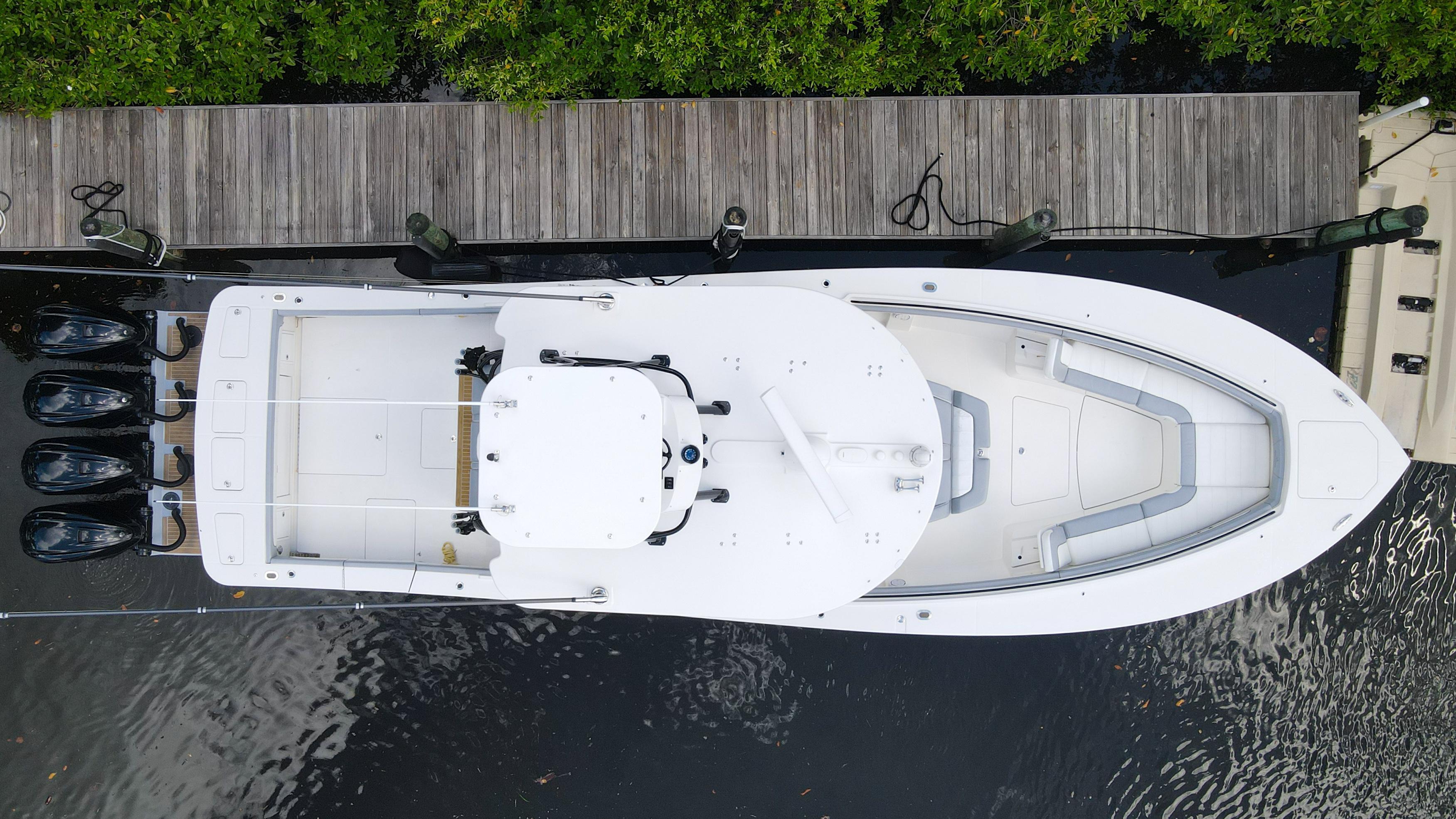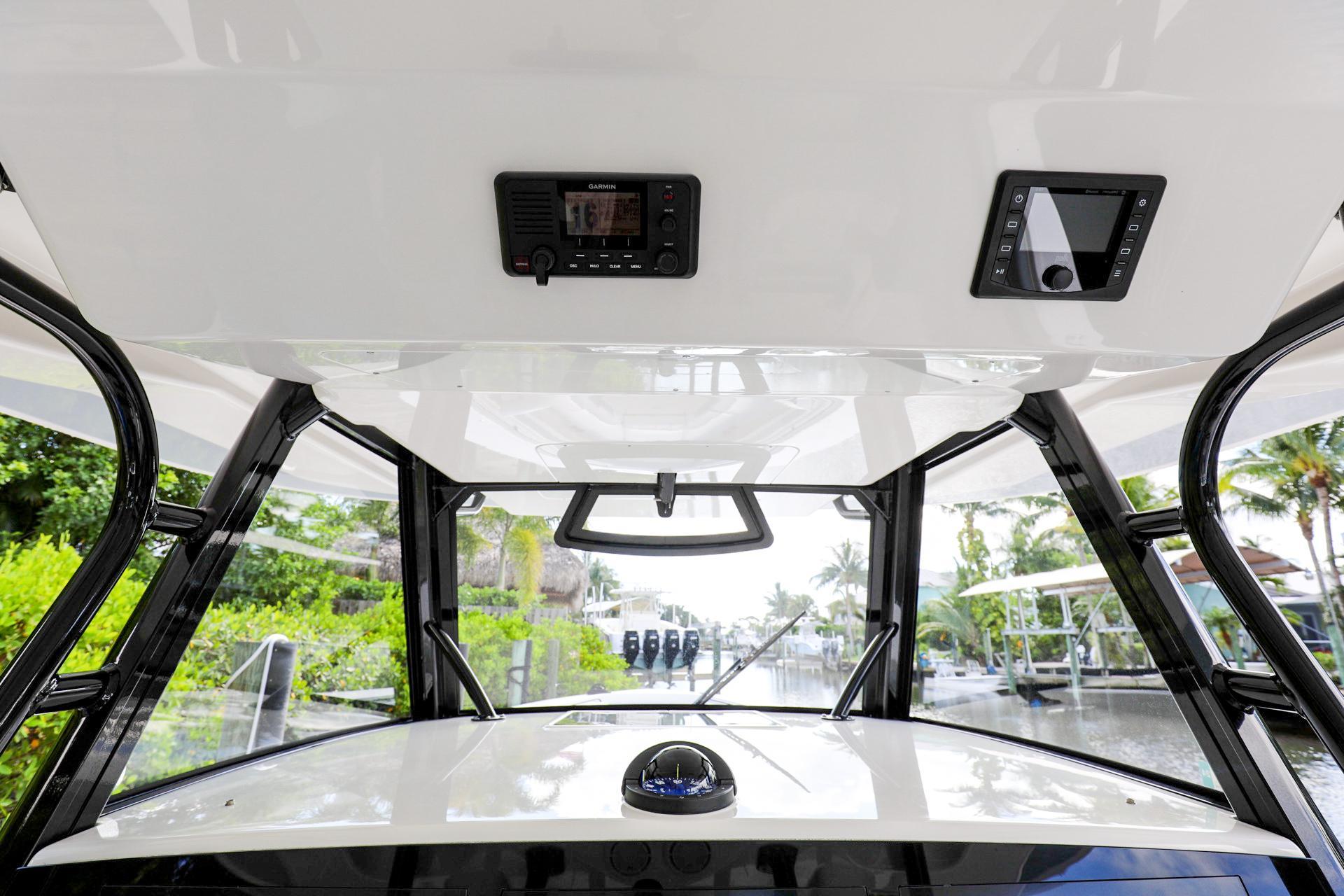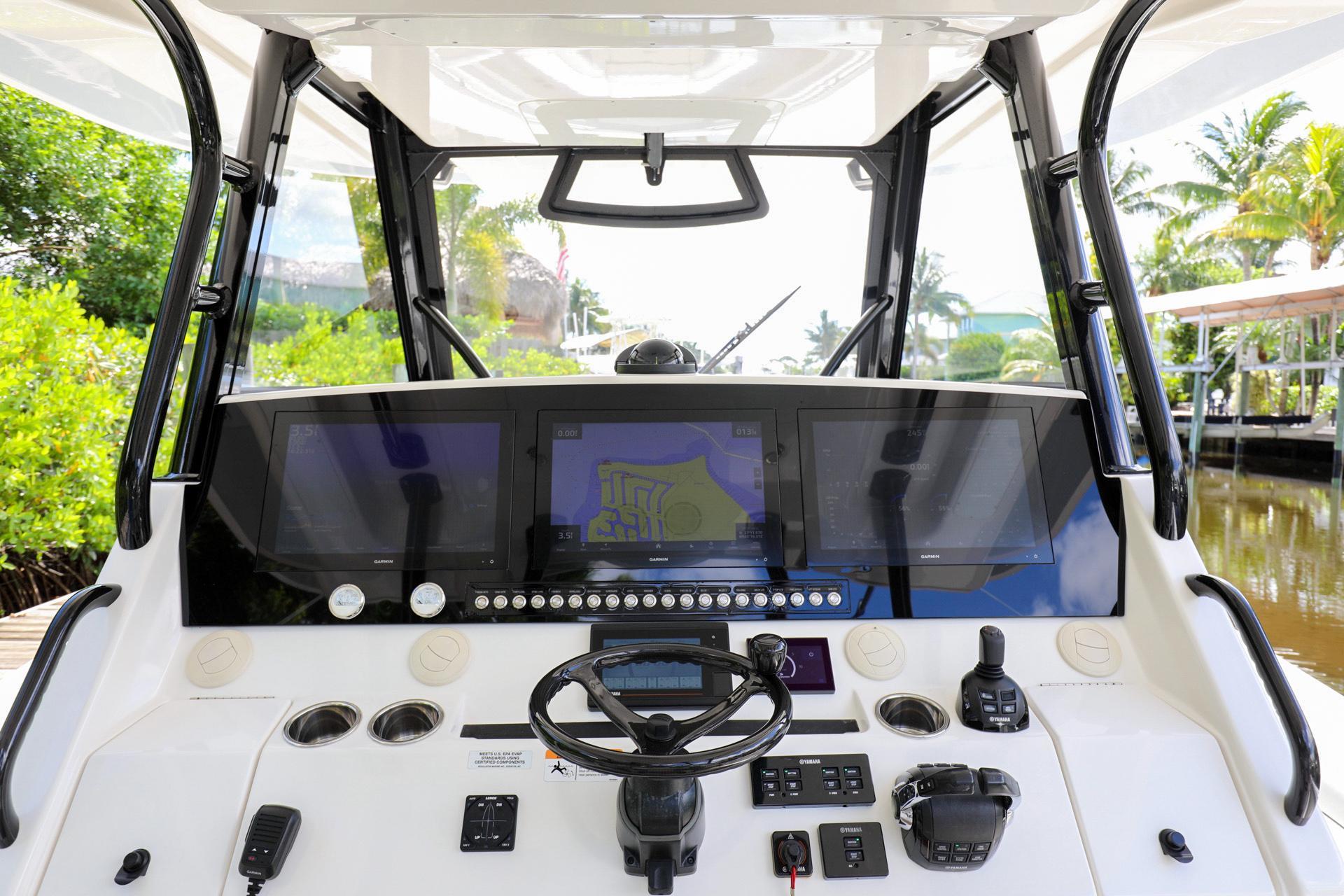ConsoleFiberglass T-Top with Surfboard Edges, Electronics Box, Navigation/Dock Lighting, Spreader Lights, and Multi-Colored LED Lights, plus Rocket Launchers built into Aft Support Frame and Integrated Wraparound Windshield with Vent and Windshield Wiper/Washer White Powder Coat Package Factory-Installed Garmin® Offshore 41 Package: Triple 17’’ GPSMAP® 8617 Multi-Touch Widescreen Chartplotter/Sonar Displays, VHF 215 AIS Radio with 8’ Digital VHF Antenna, GMR™ 1224 xHD2 12kW Open-Array Radar, Airmar® B275LHW with Wide Beam 1kW CHIRP Transducer, and Reactor Steer-by-Wire Autopilot, Plus Black Flushmount Electronics Face and Mic Relocation Kit Ritchie® Blue Face SuperSport Compass Yamaha CL7™ Touchscreen Display (Console & Tower) Marine Stereo with AM/FM/WB, SiriusXM® Ready with Bluetooth and Polk Ultramarine Sound System, Dynamically Calibrated Subwoofer/Speakers/Amp with External Digital Antenna including XKchrome App Controlled LED Cockpit and Speaker Lighting EZ-View Flushmount Electronic Mounting Face with Access in Head Compartment Breakered Electrical System Battery System with Switches and (8) Marine Batteries with Easy Access at Helm (2) 40 Amp Battery Chargers with 50' Power Cord Illuminated Glove Boxes with Fiberglass Lids Recessed Comfort Footrest Stainless Steel Cup Holders (3) Stainless Steel Console Handrails Edson™ Polished Silver Wheel with Power Knob Helm Air Conditioner Vents Flexiteek Marine Decking at Helm Helm Space for up to (3) 17” Displays USB Charging Ports White Powder Coat Package Recessed Switch Panel with Stainless LED Push Button Switches
