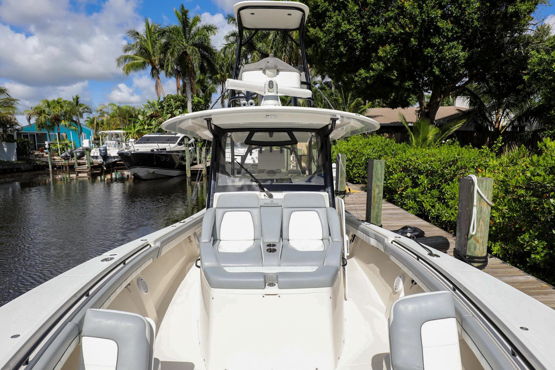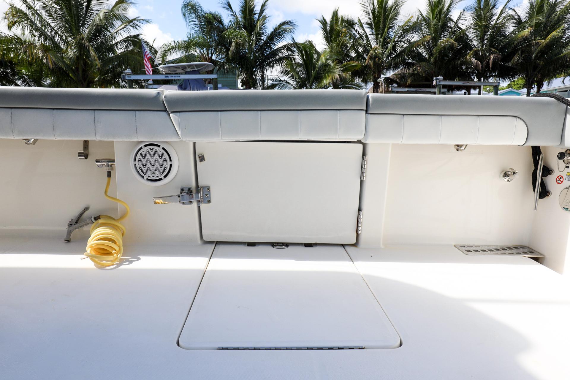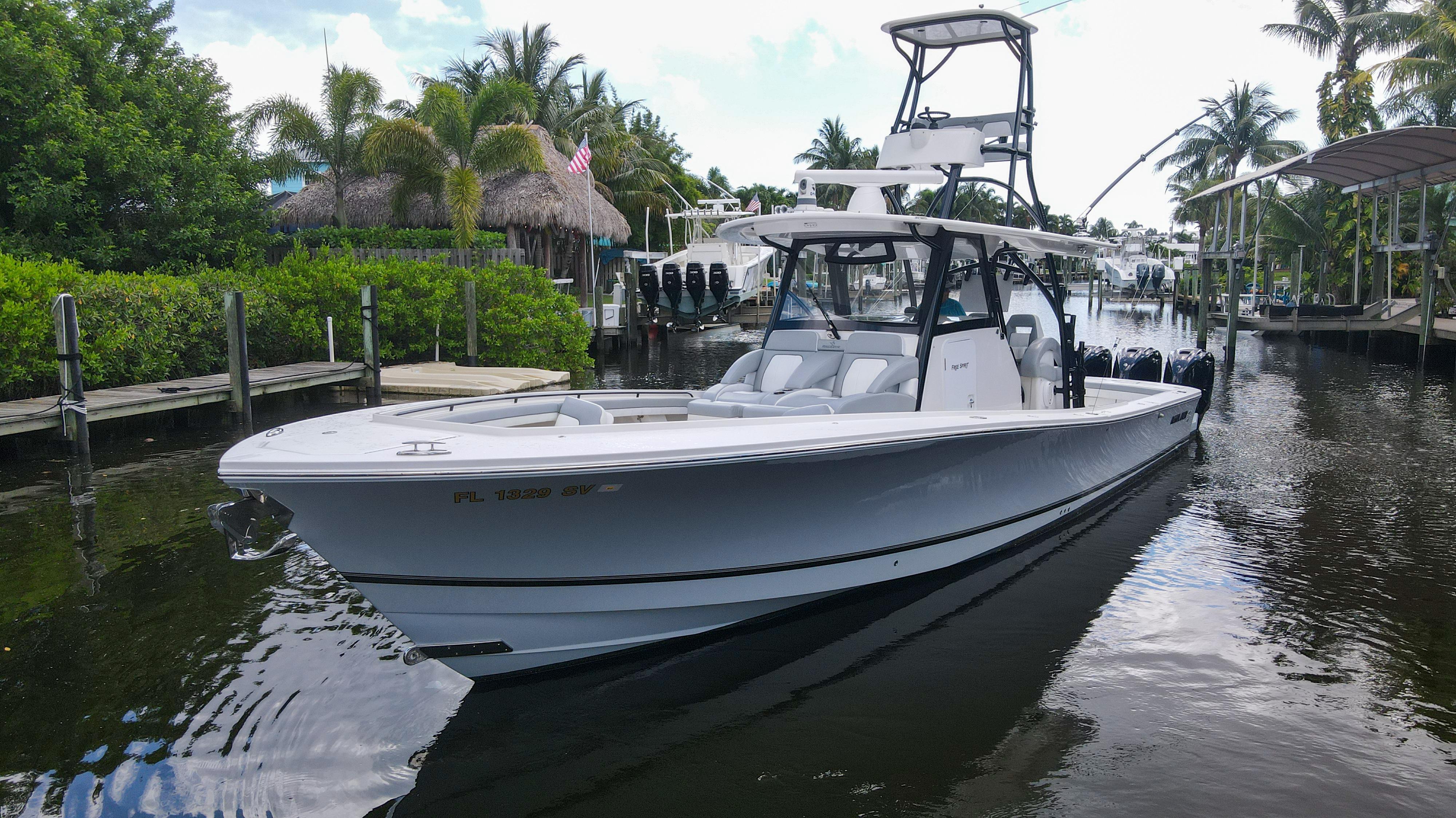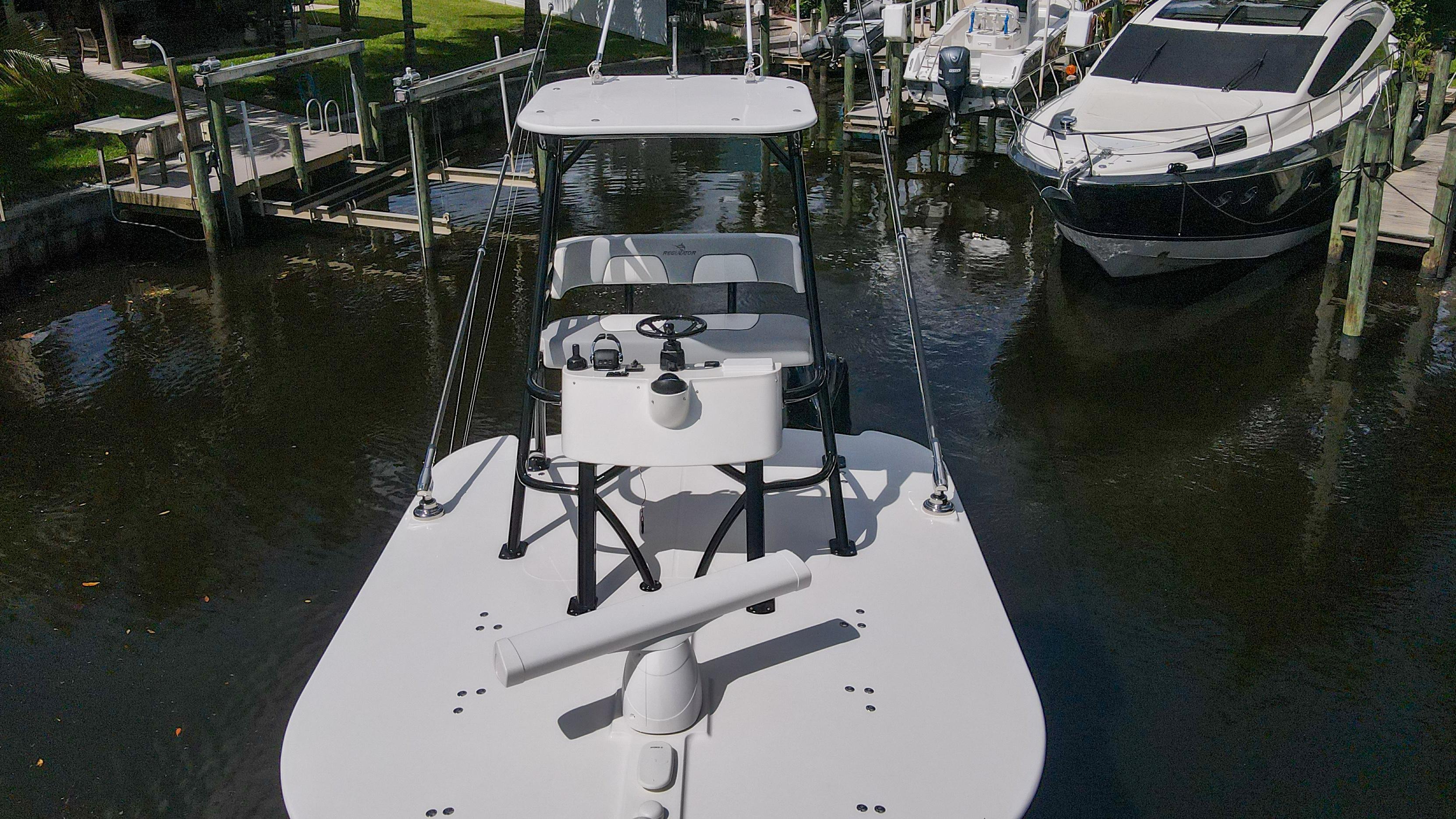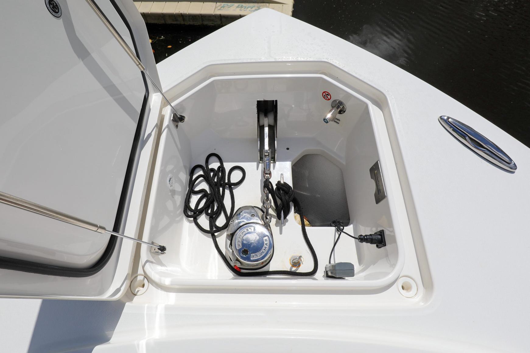 ConsoleFiberglass T-Top with Surfboard Edges, Electronics Box, Navigation/Dock Lighting, Spreader Lights, and Multi-Colored LED Lights, plus Rocket Launchers built into Aft Support Frame and Integrated Wraparound Windshield with Vent and Windshield Wiper/Washer White Powder Coat Package Factory-Installed Garmin® Offshore 41 Package: Triple 17’’ GPSMAP® 8617 Multi-Touch Widescreen Chartplotter/Sonar Displays, VHF 215 AIS Radio with 8’ Digital VHF Antenna, GMR™ 1224 xHD2 12kW Open-Array Radar, Airmar® B275LHW with Wide Beam 1kW CHIRP Transducer, and Reactor Steer-by-Wire Autopilot, Plus Black Flushmount Electronics Face and Mic Relocation Kit Ritchie® Blue Face SuperSport Compass Yamaha CL7™ Touchscreen Display (Console & Tower) Marine Stereo with AM/FM/WB, SiriusXM® Ready with Bluetooth and Polk Ultramarine Sound System, Dynamically Calibrated Subwoofer/Speakers/Amp with External Digital Antenna including XKchrome App Controlled LED Cockpit and Speaker Lighting EZ-View Flushmount Electronic Mounting Face with Access in Head Compartment Breakered Electrical System Battery System with Switches and (8) Marine Batteries with Easy Access at Helm (2) 40 Amp Battery Chargers with 50' Power Cord Illuminated Glove Boxes with Fiberglass Lids Recessed Comfort Footrest Stainless Steel Cup Holders (3) Stainless Steel Console Handrails Edson™ Polished Silver Wheel with Power Knob Helm Air Conditioner Vents Flexiteek Marine Decking at Helm Helm Space for up to (3) 17” Displays USB Charging Ports White Powder Coat Package Recessed Switch Panel with Stainless LED Push Button Switches